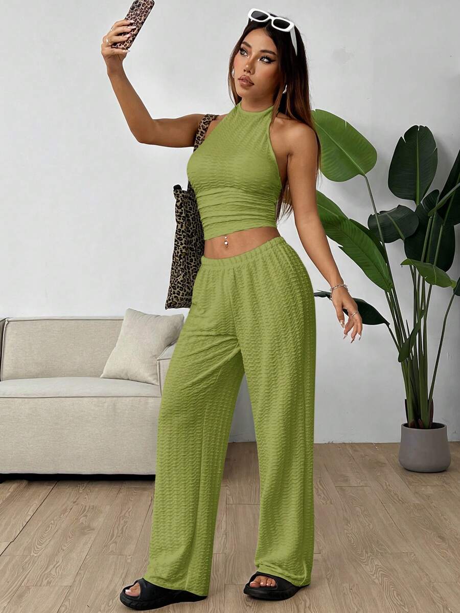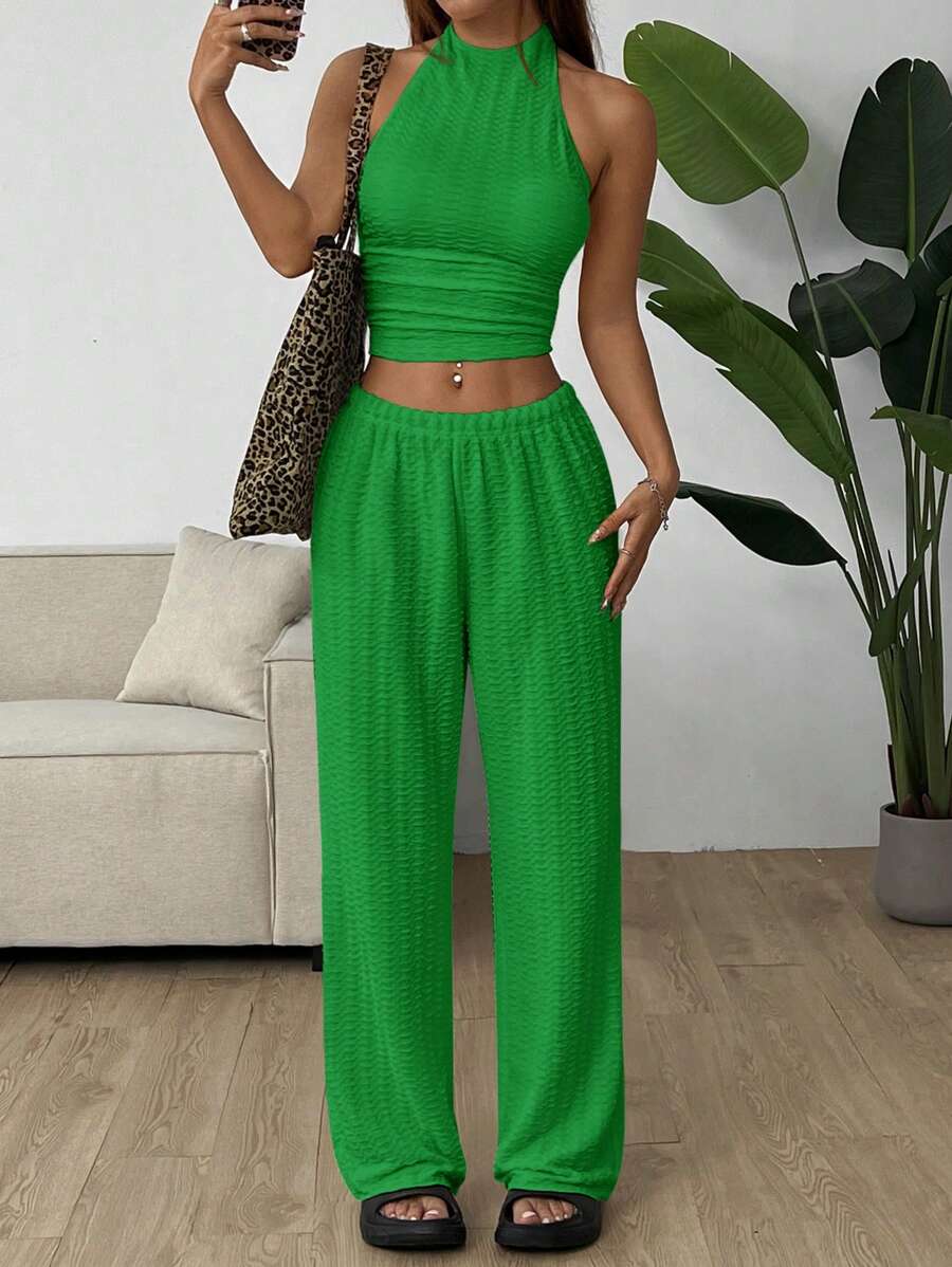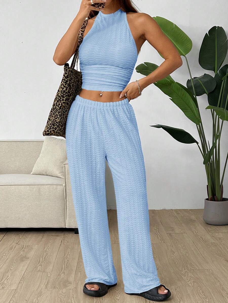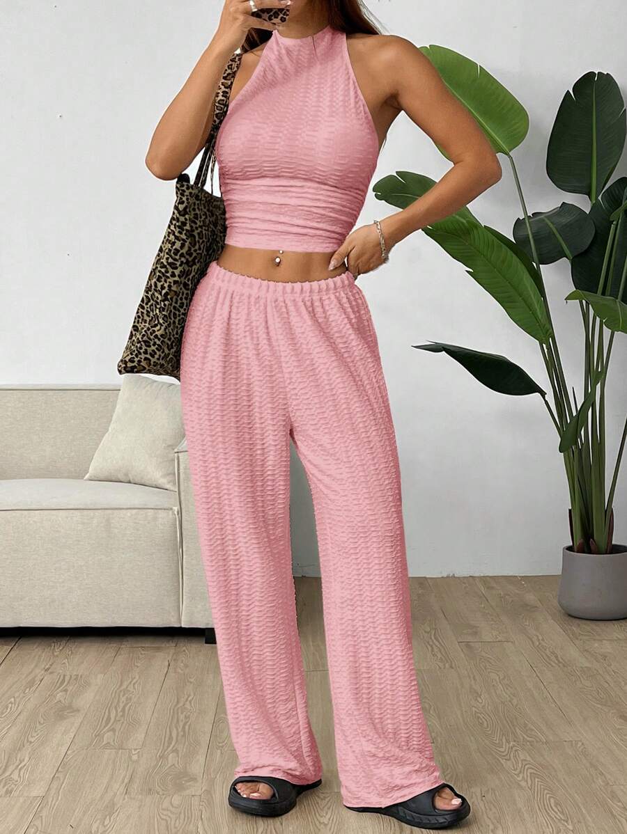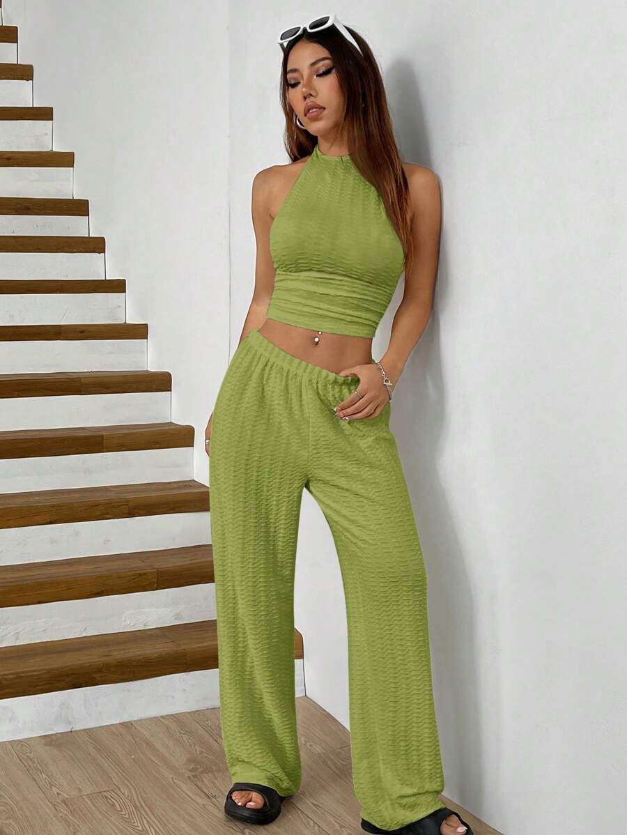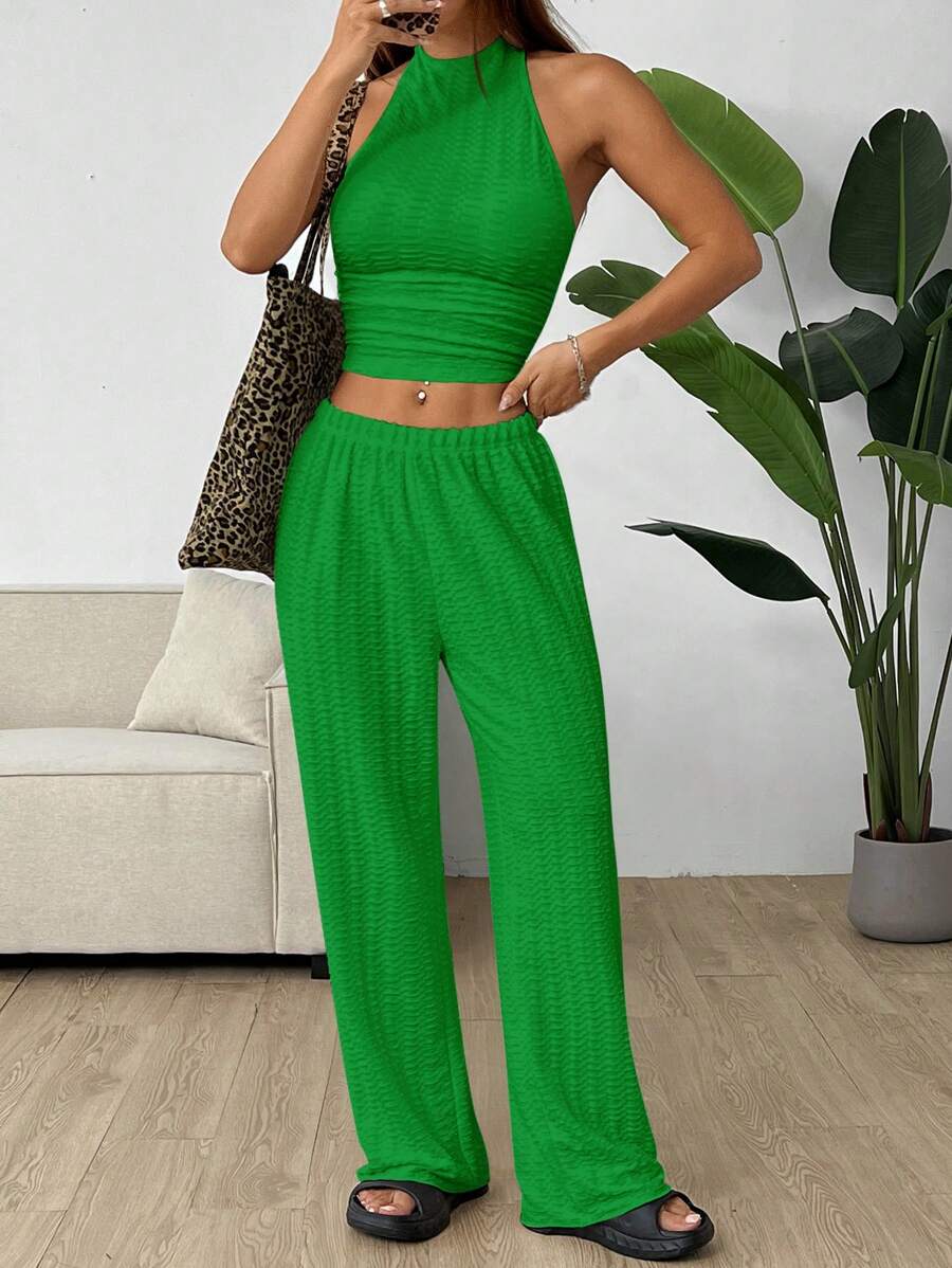 MIU Women Summer Casual Solid Color Halter Neck Top