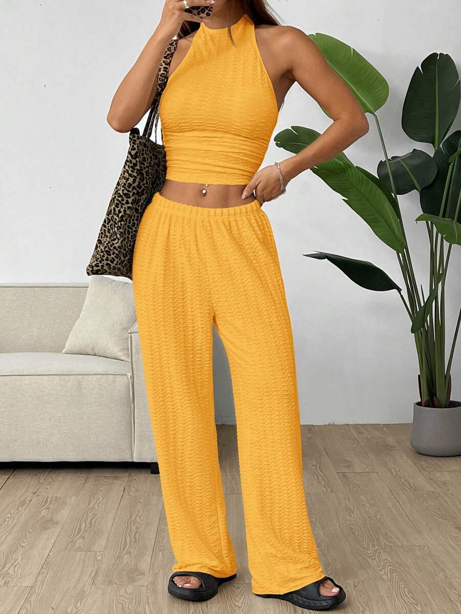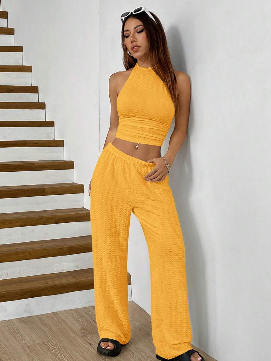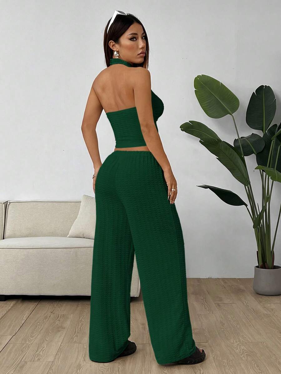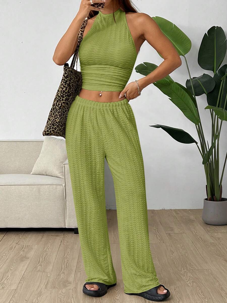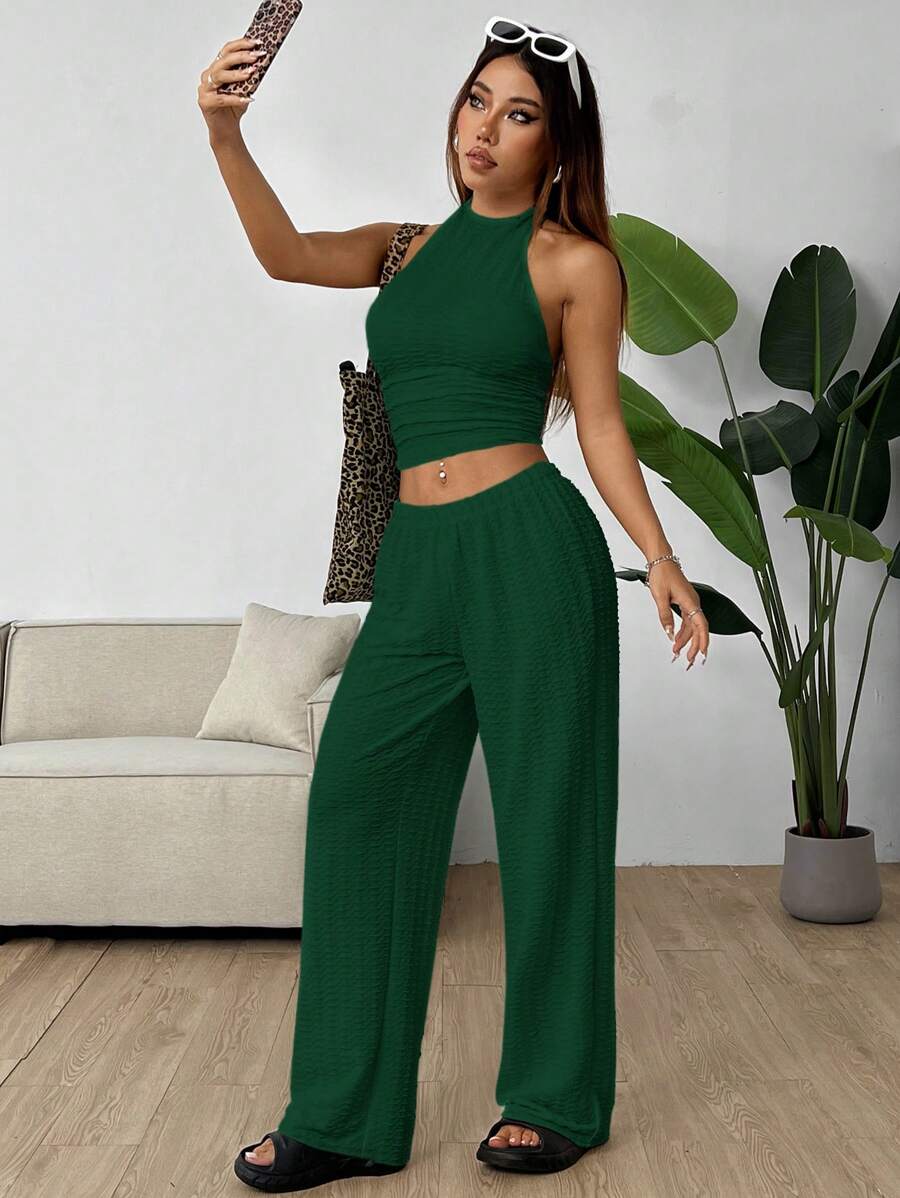 MIU Women Summer Casual Solid Color Halter Neck Top
