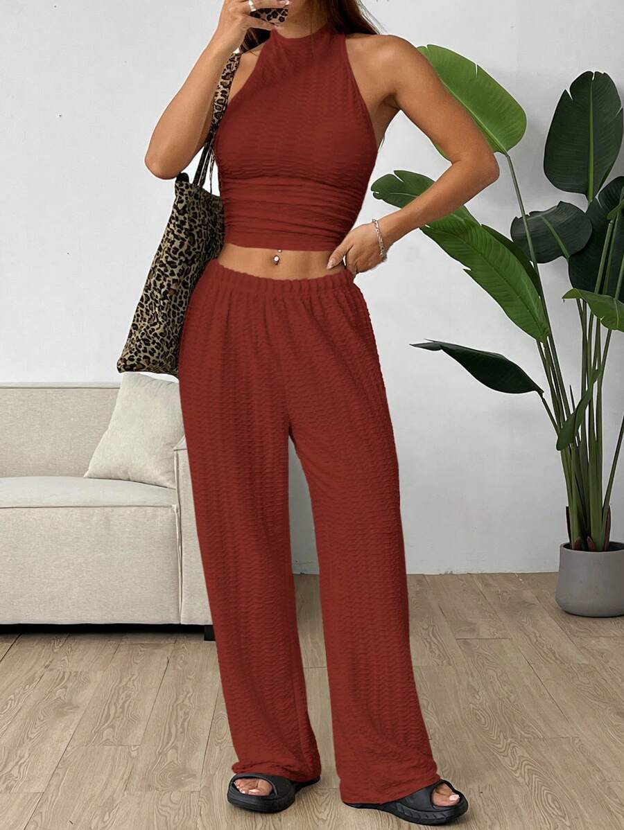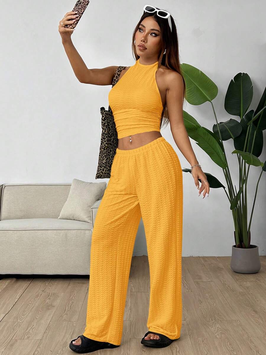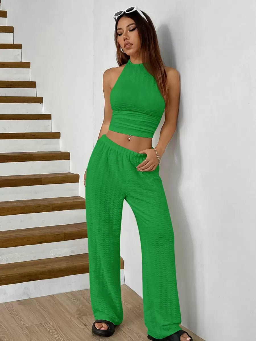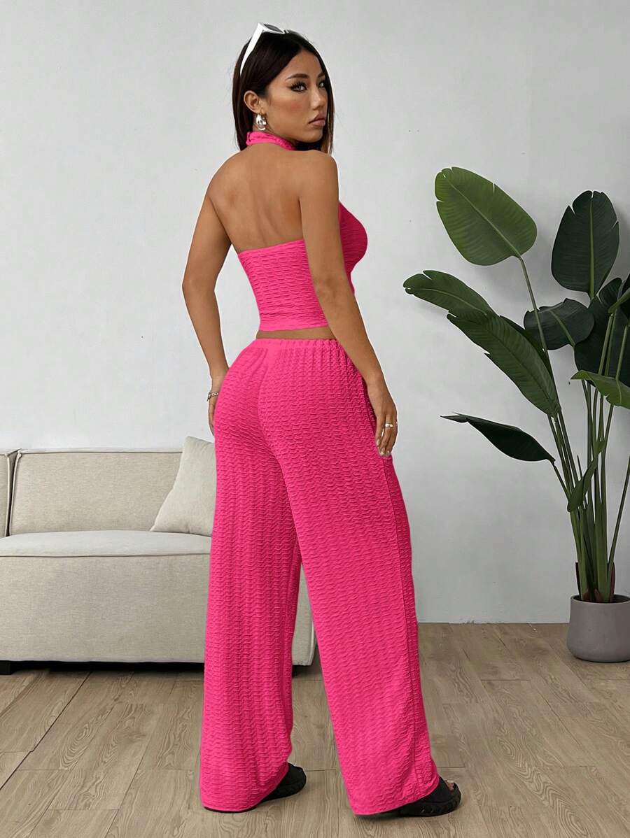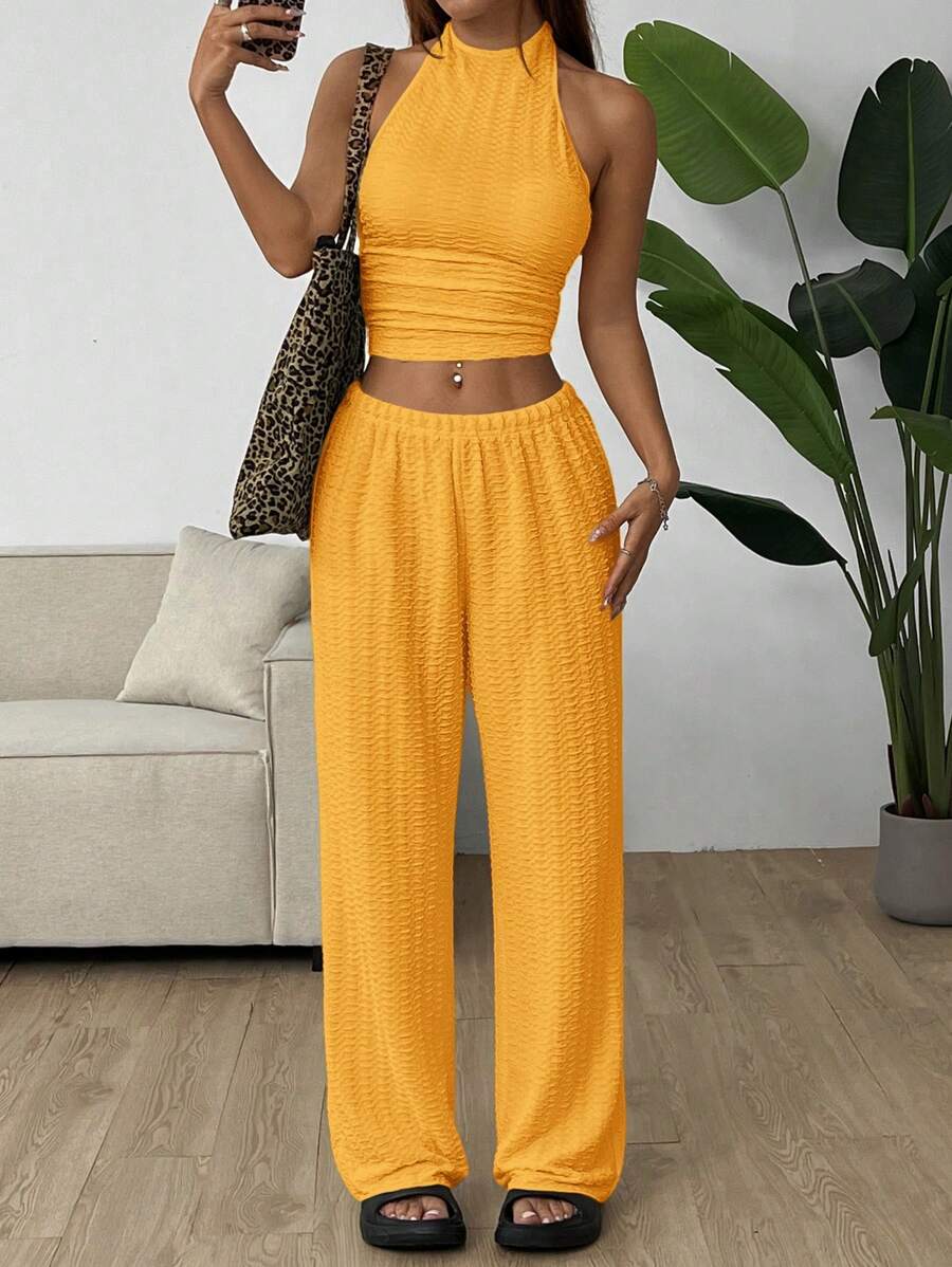 MIU Women Summer Casual Solid Color Halter Neck Top
