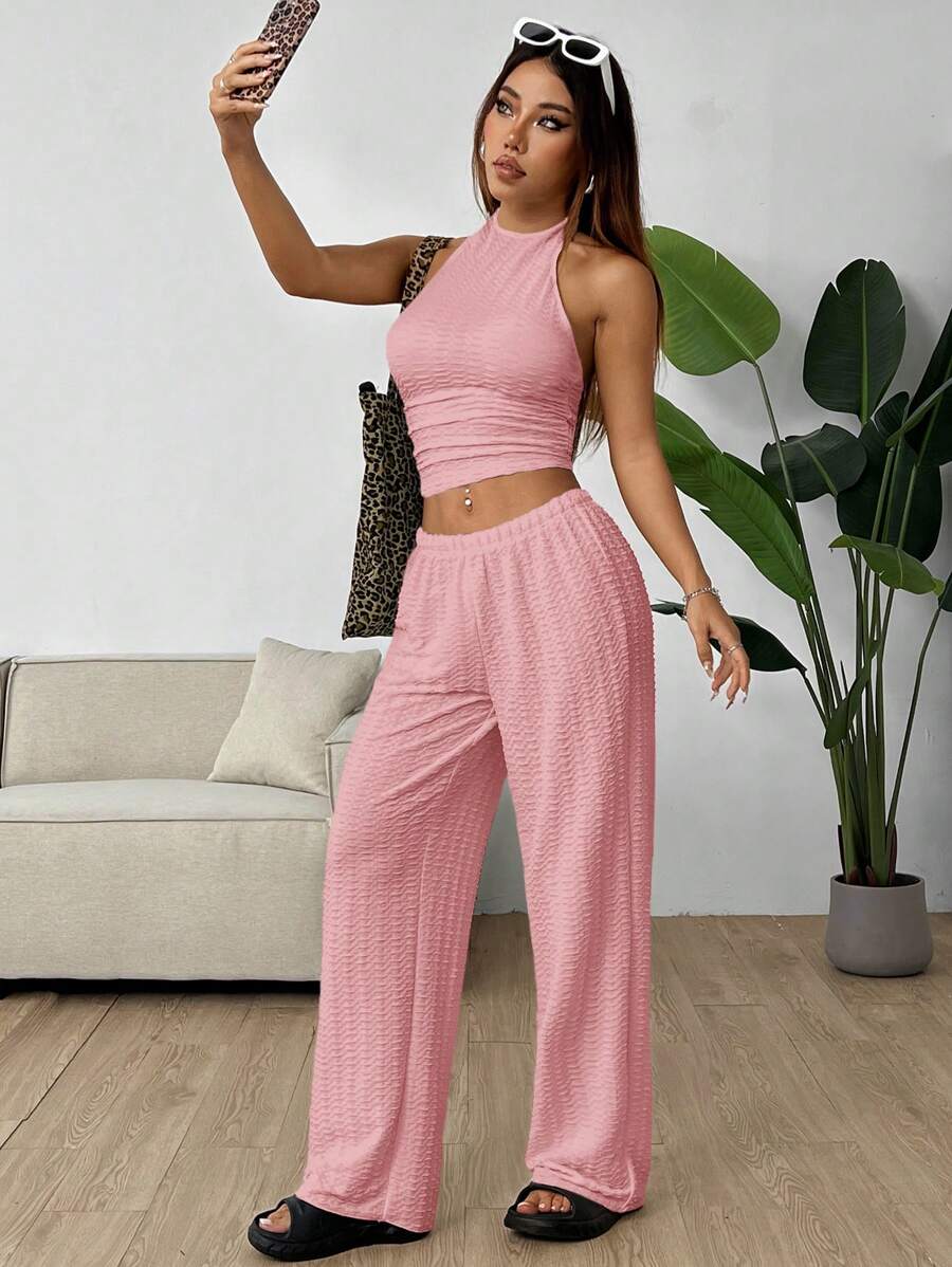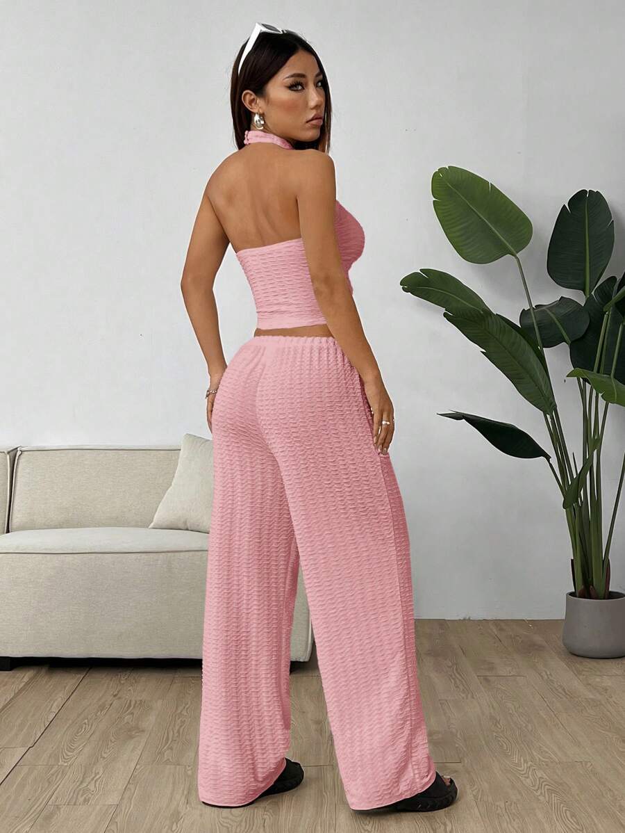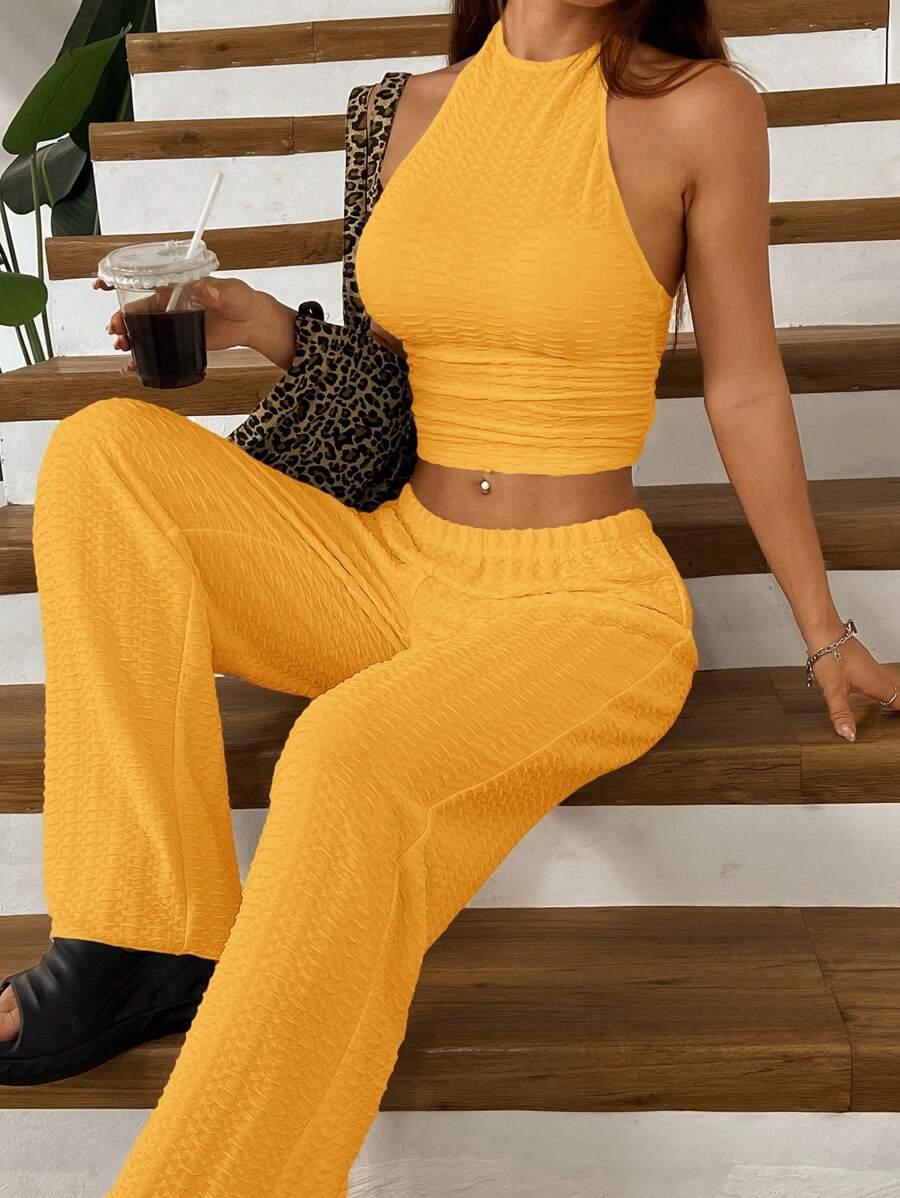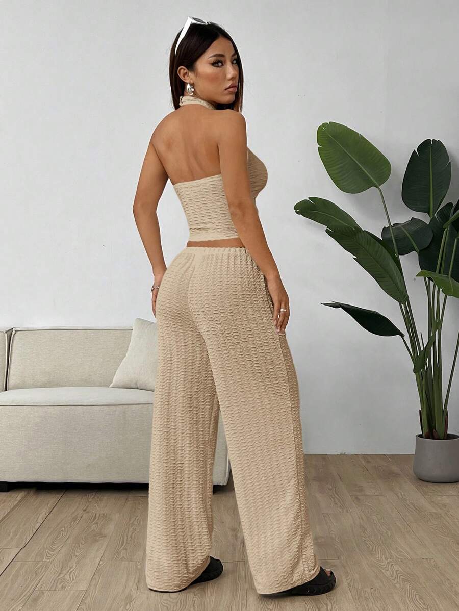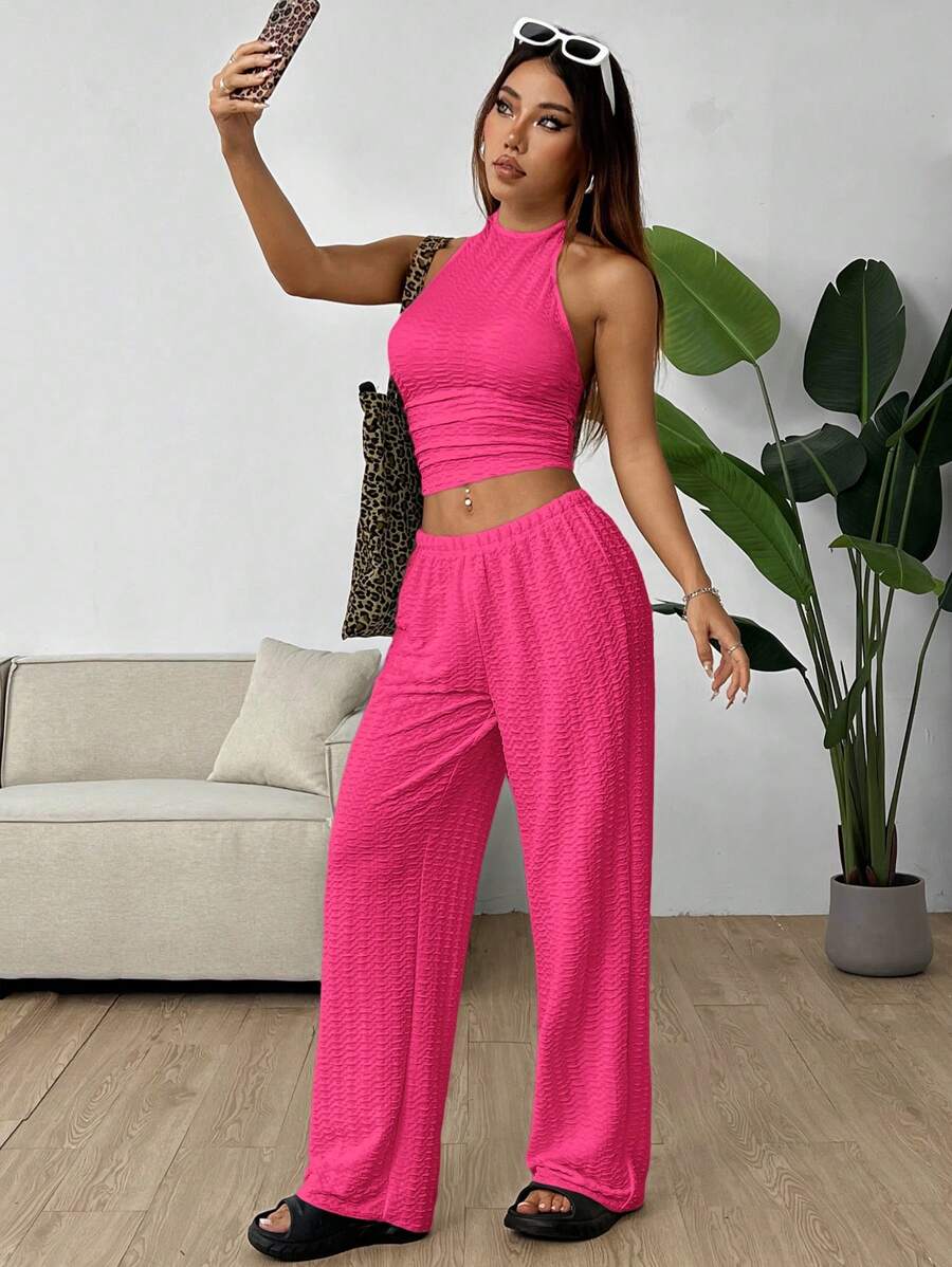 MIU Women Summer Casual Solid Color Halter Neck Top