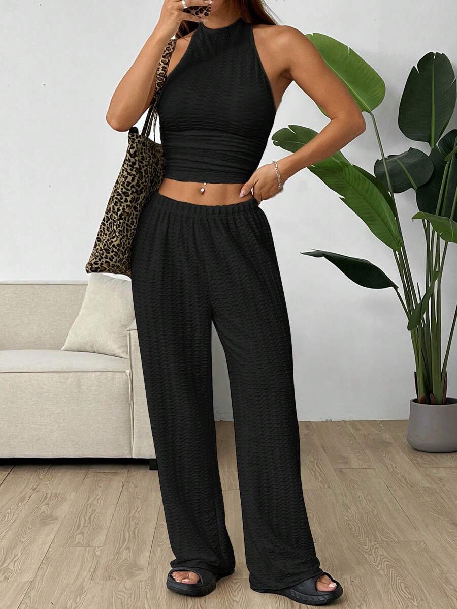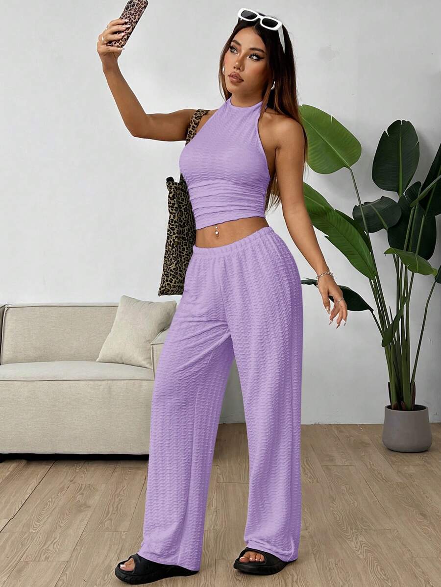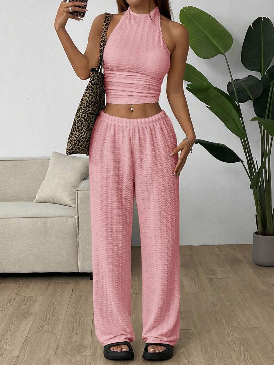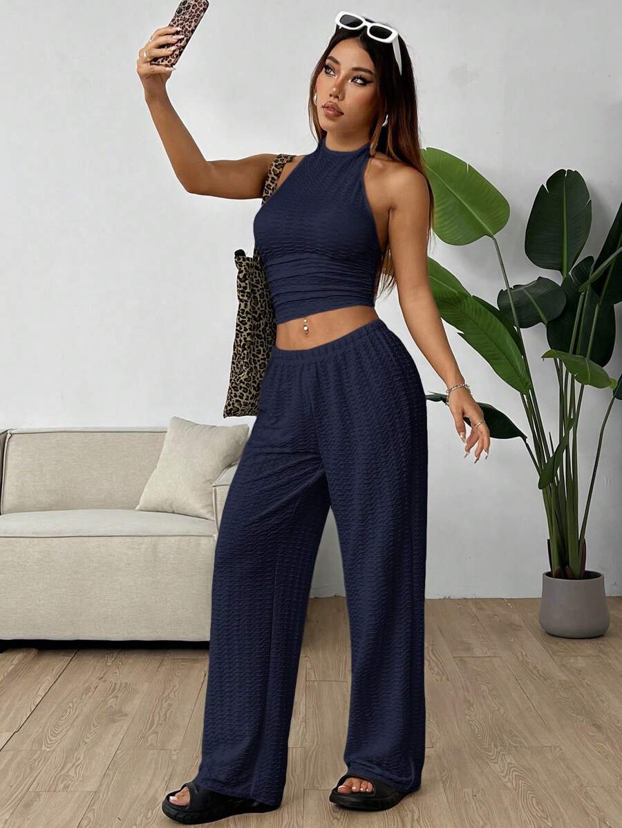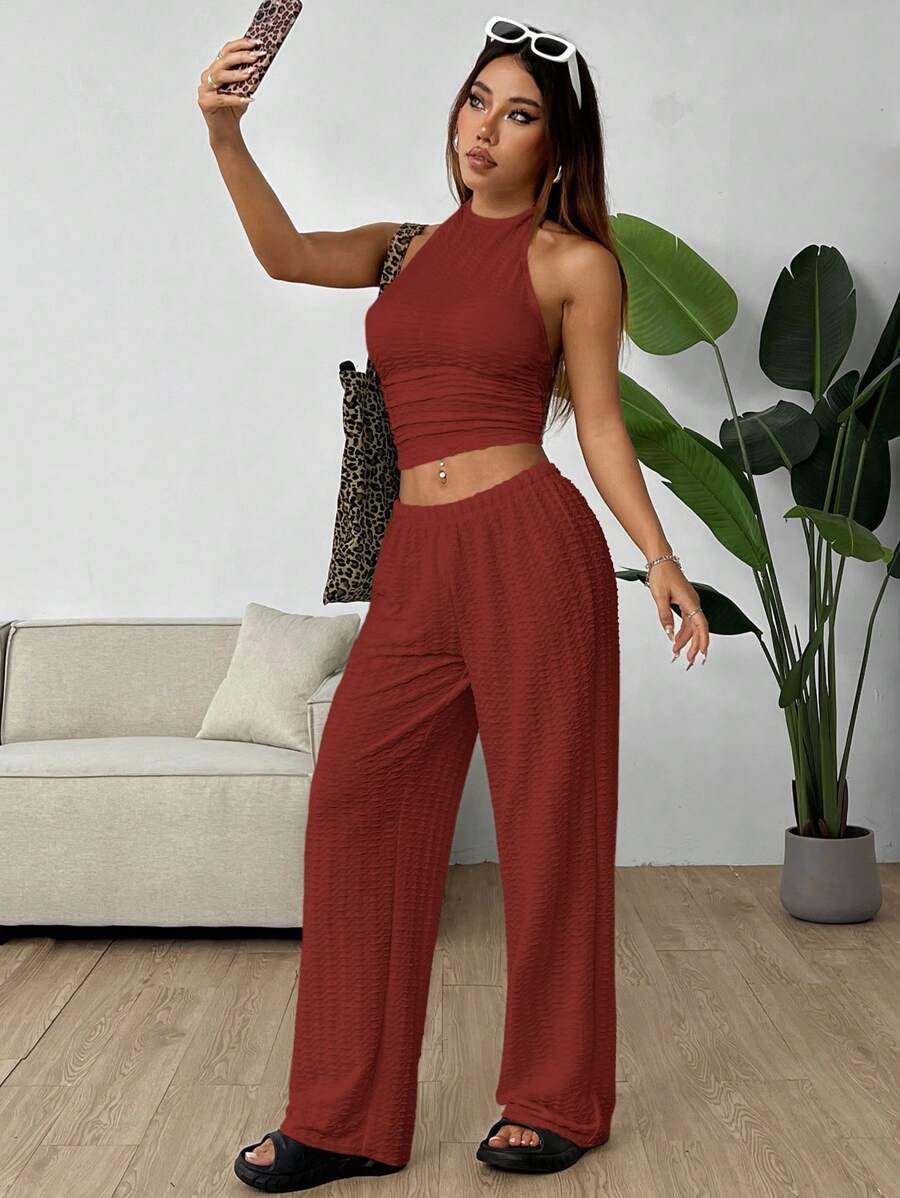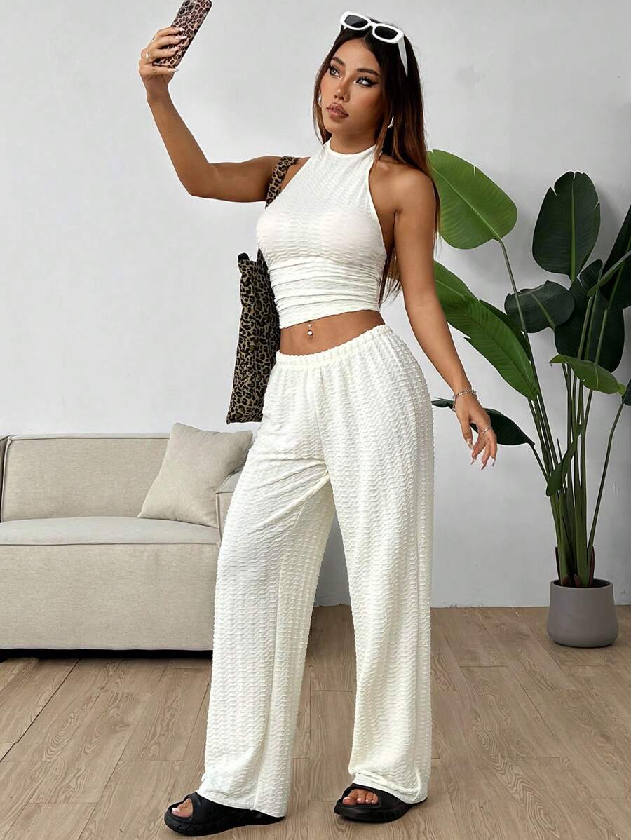 MIU Women Summer Casual Solid Color Halter Neck Top