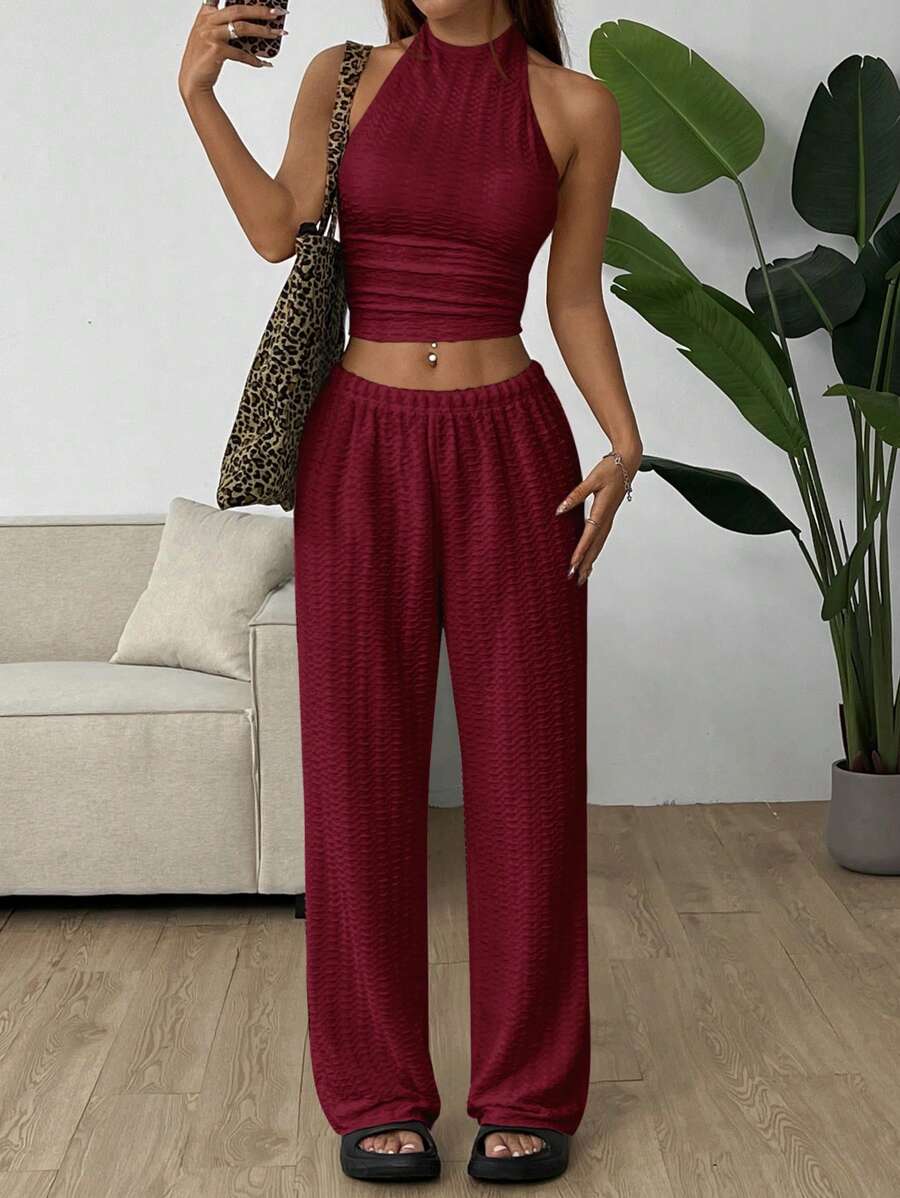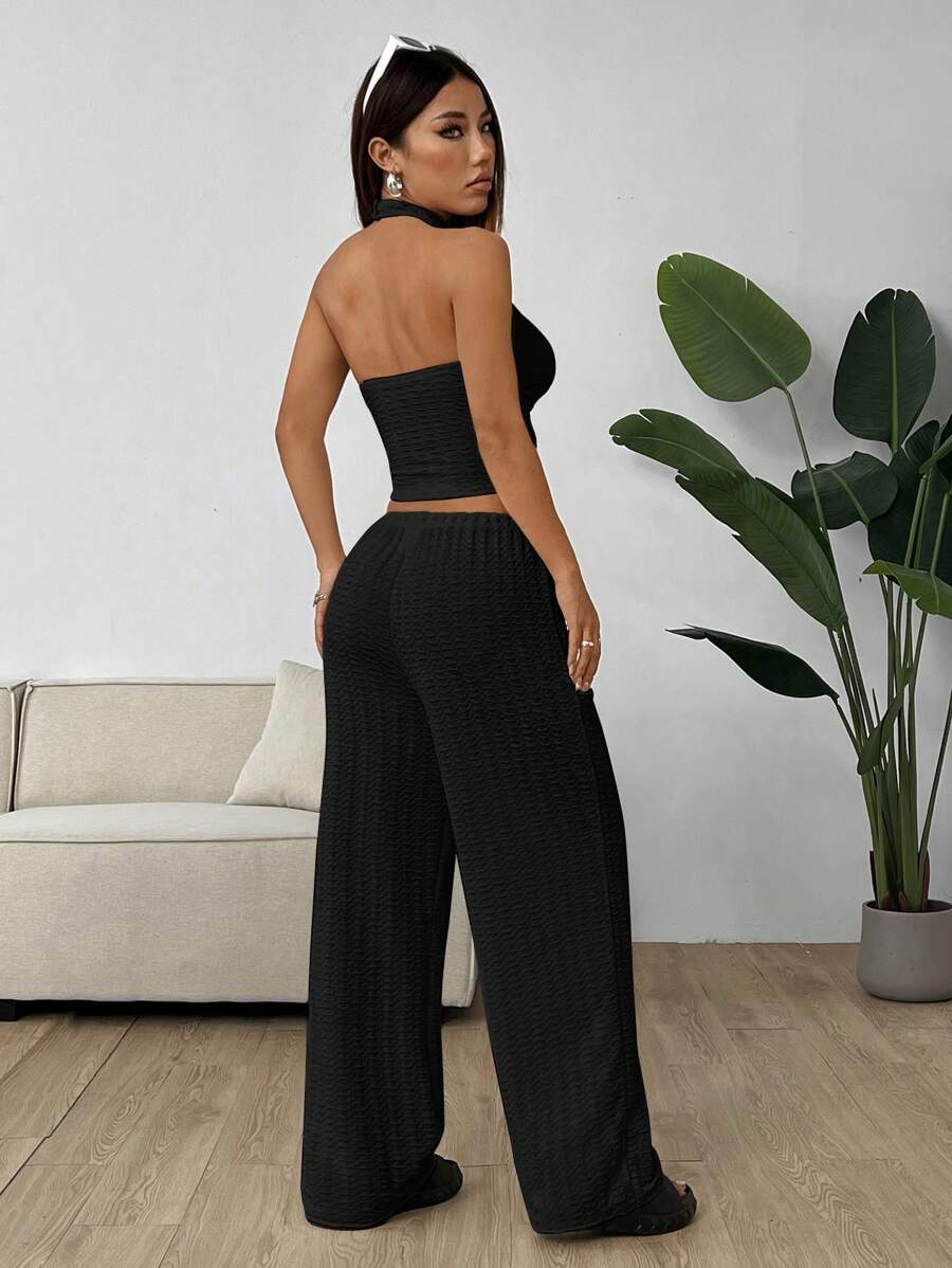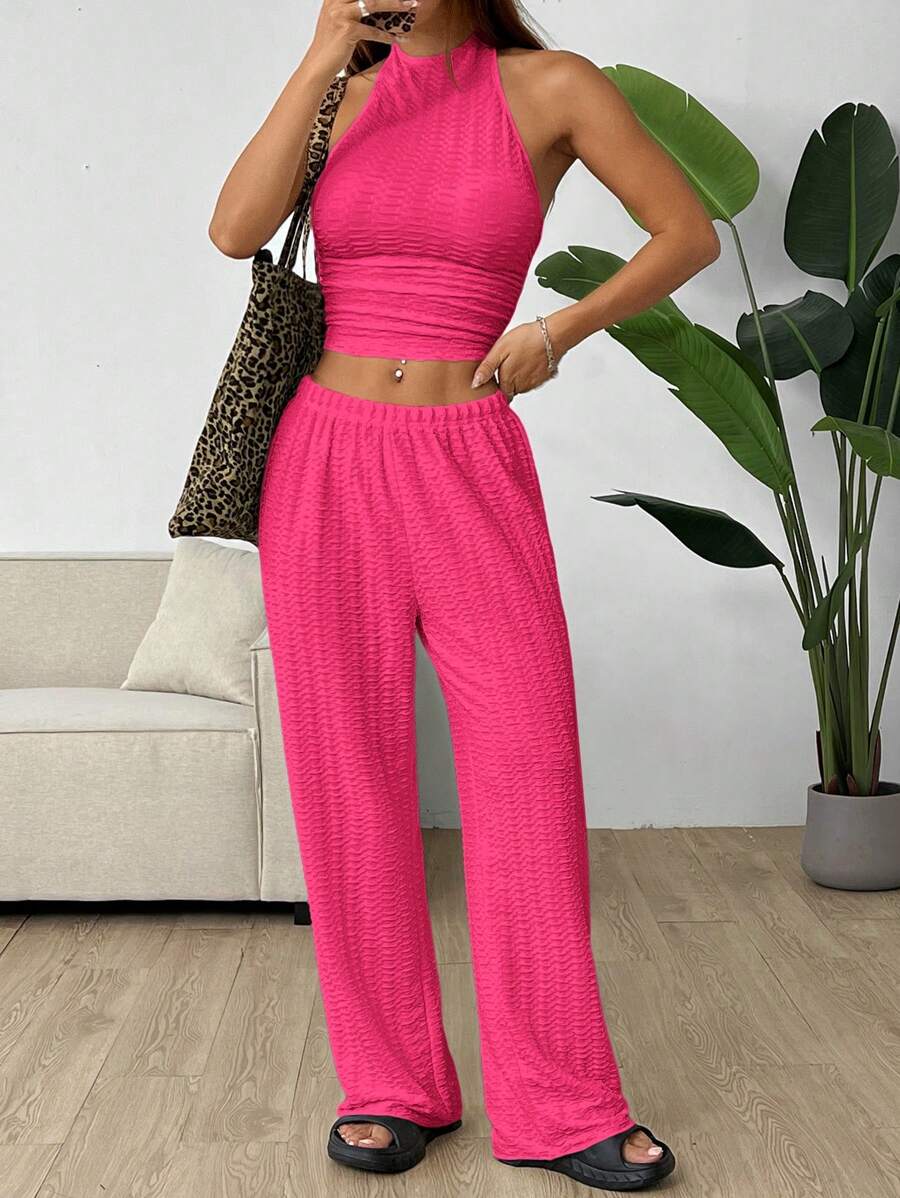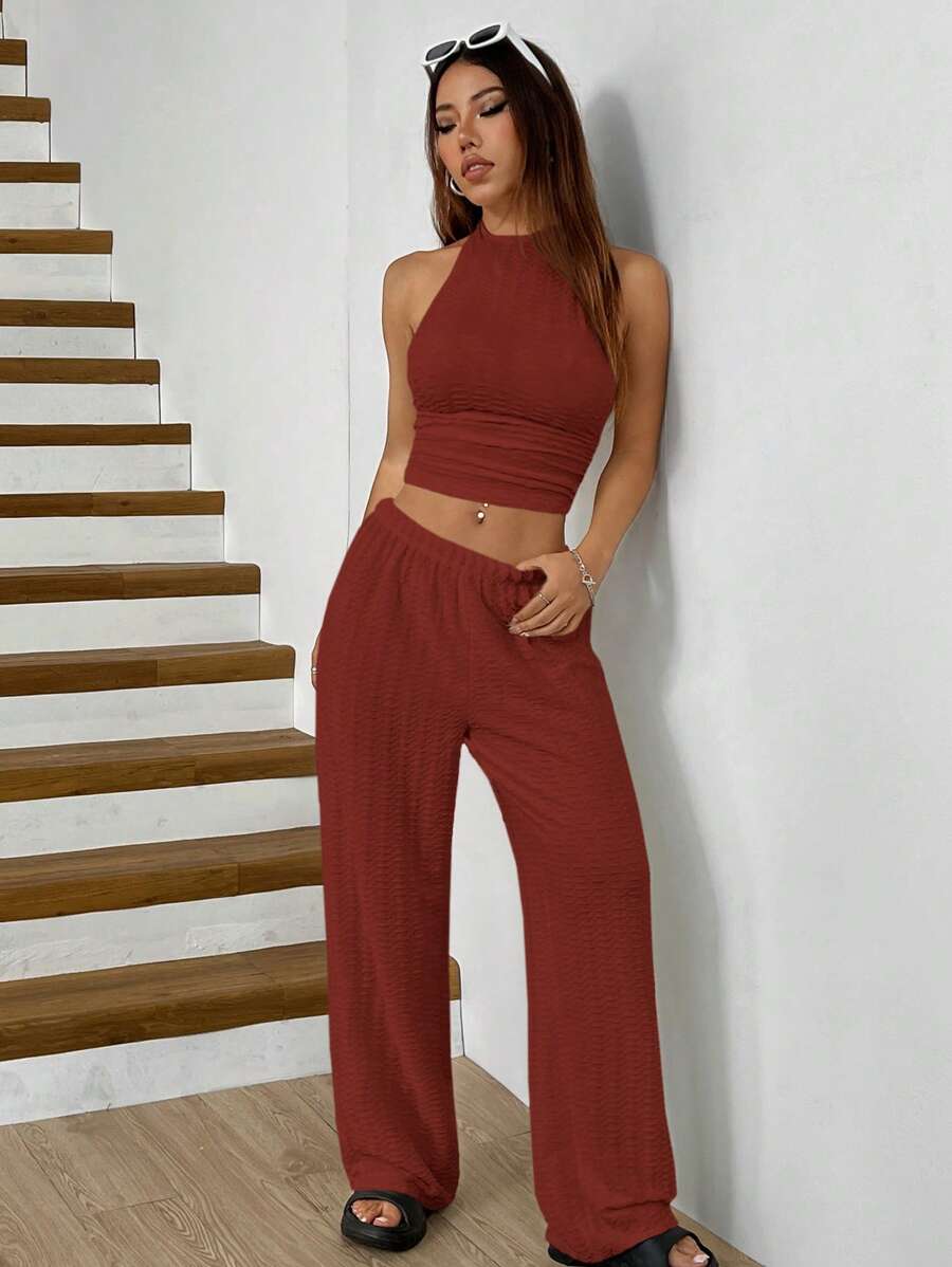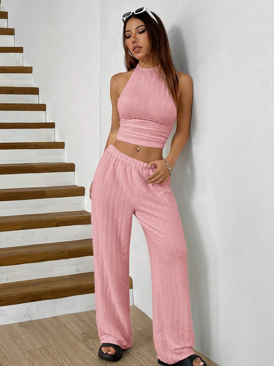 MIU Women Summer Casual Solid Color Halter Neck Top