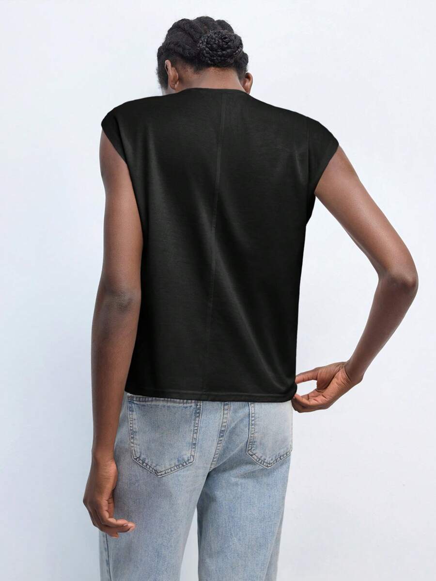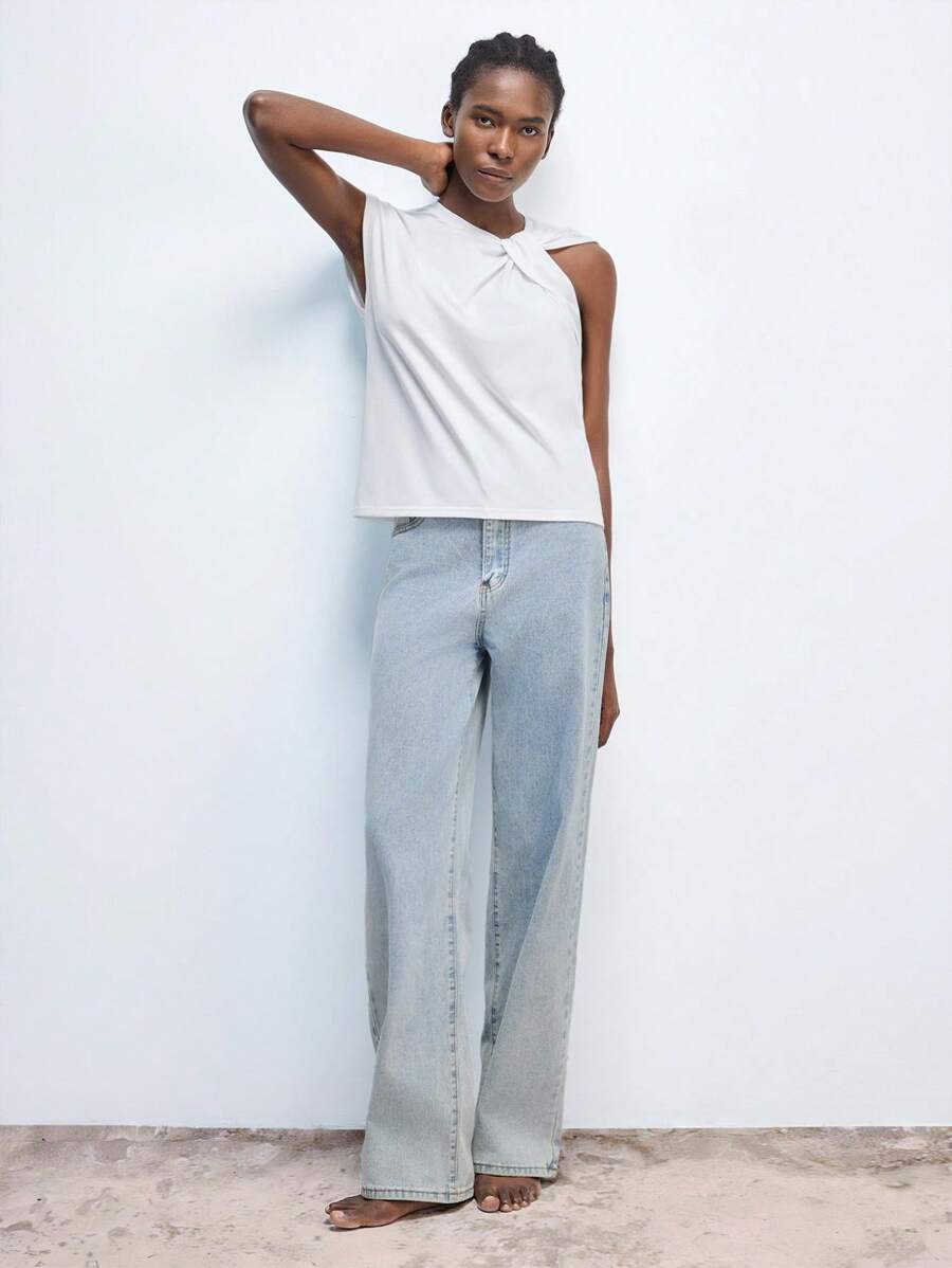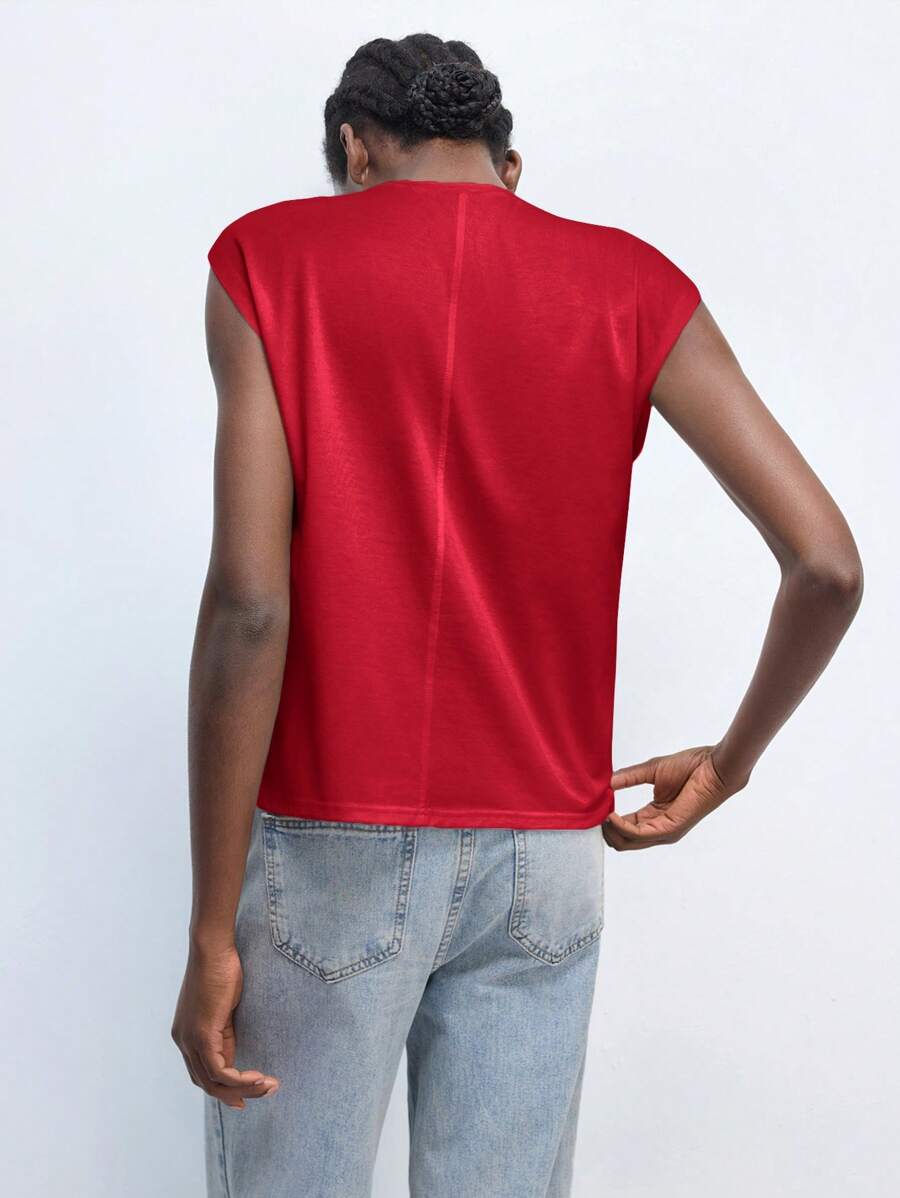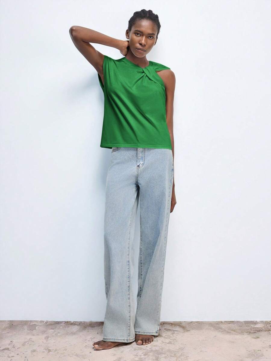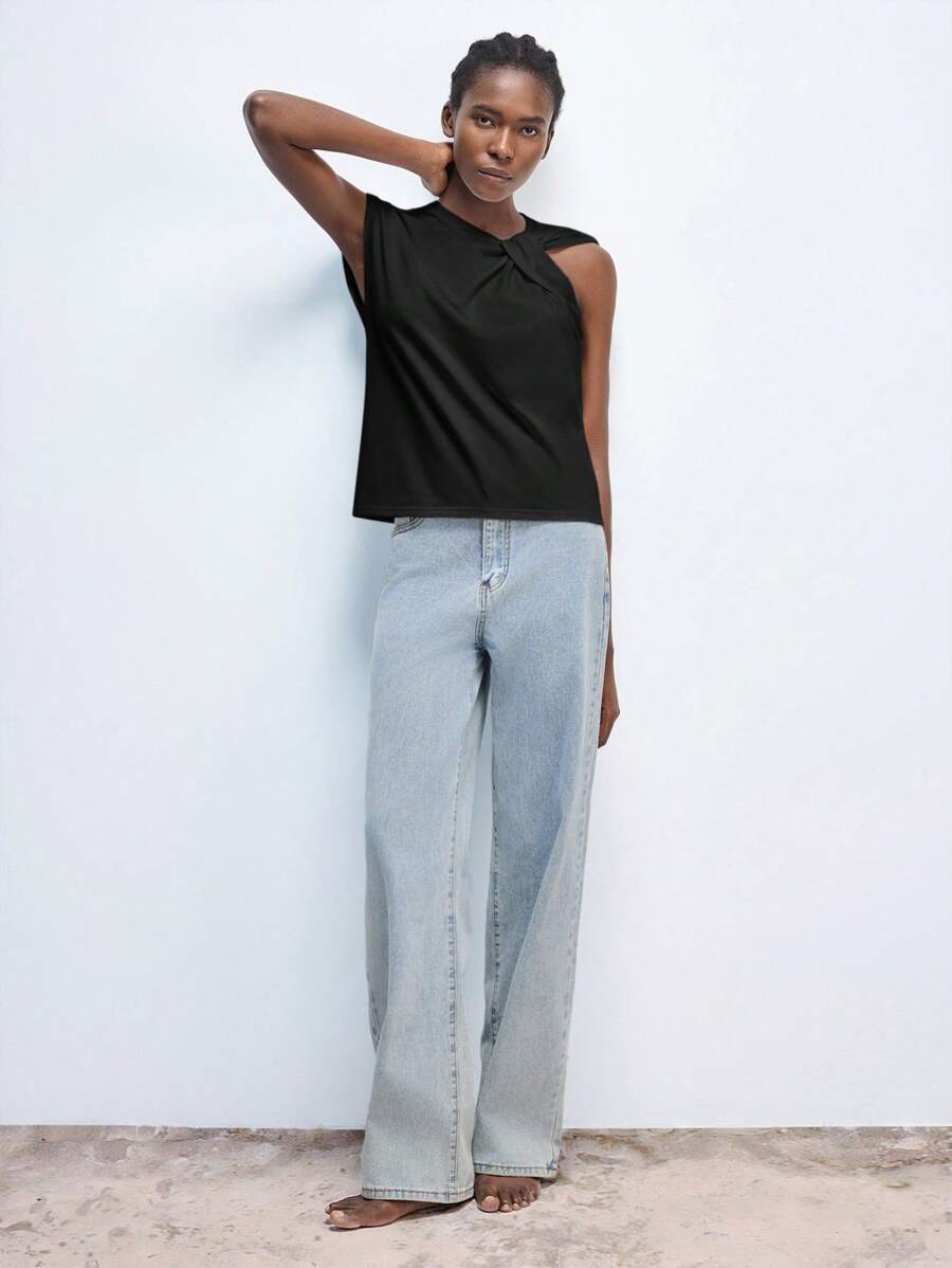 MIU Women's 2025 Summer New Arrival Asymmetric Single Shoulder Twist Knot Design Loose Vintage Chic Urban Casual Pullover T-Shirt, Suitable For Party, Music Festival, Graduation, Business Casual, Office Wear