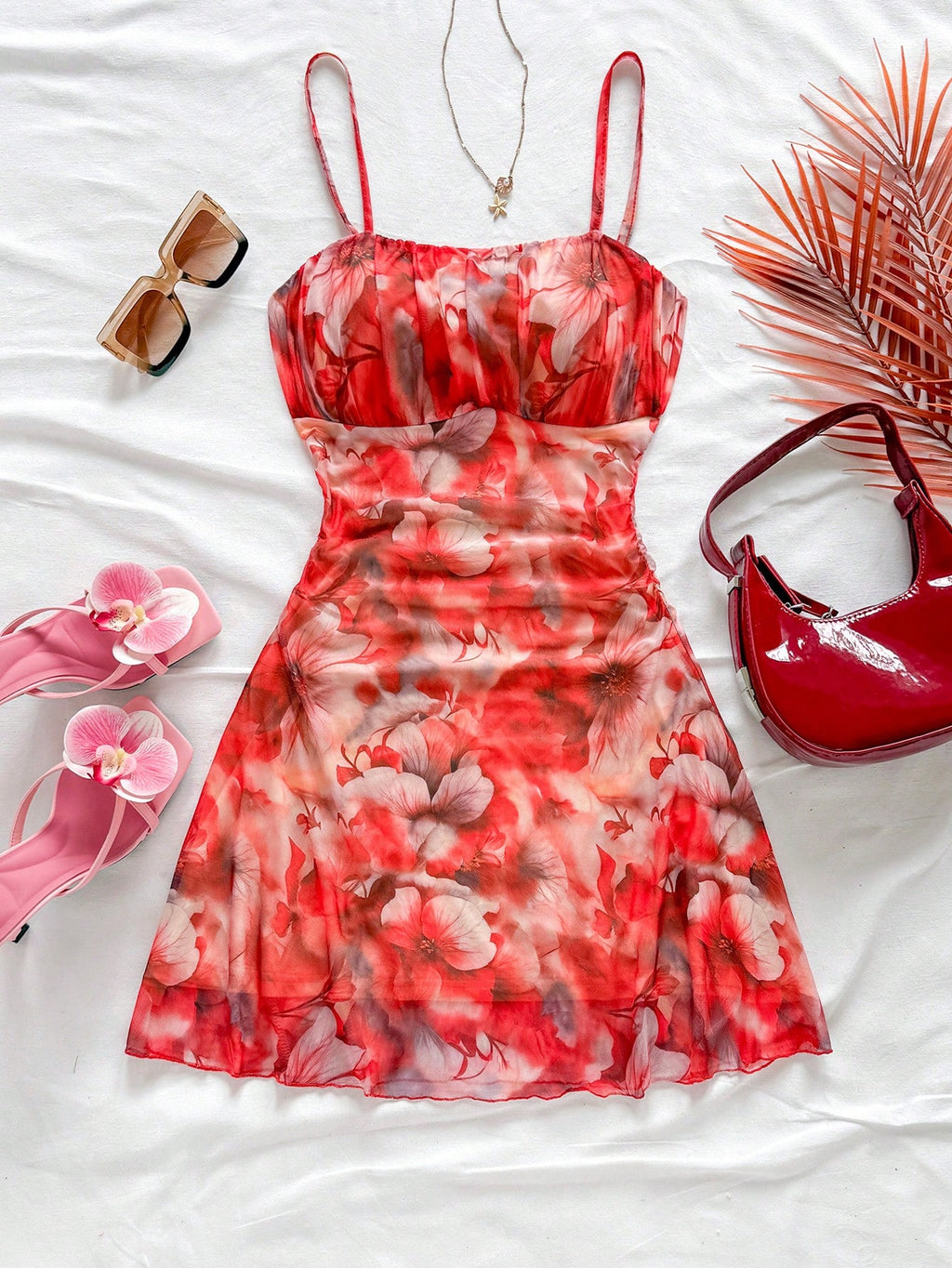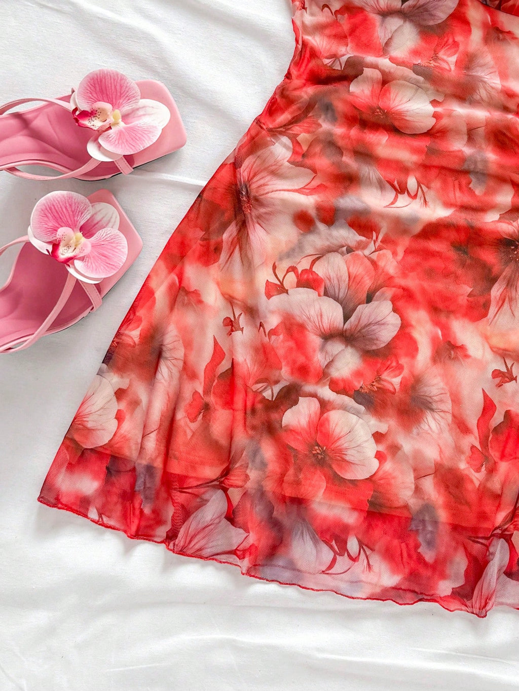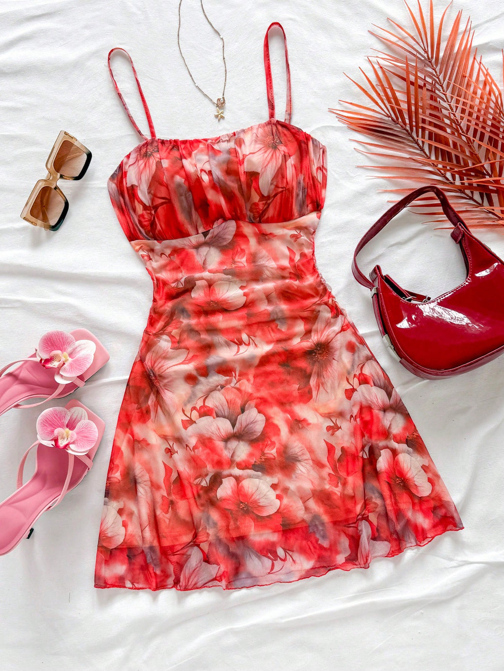 MIU AZRA Elegantna mini suknja s perlama u crvenom tweedu za žene
