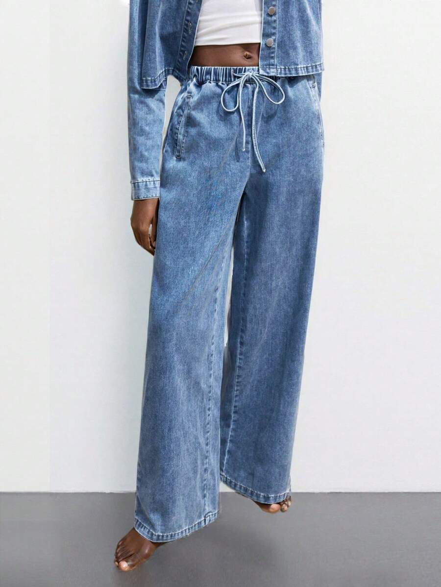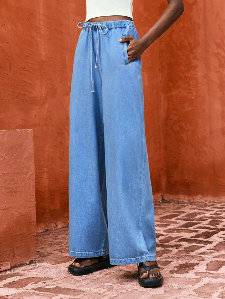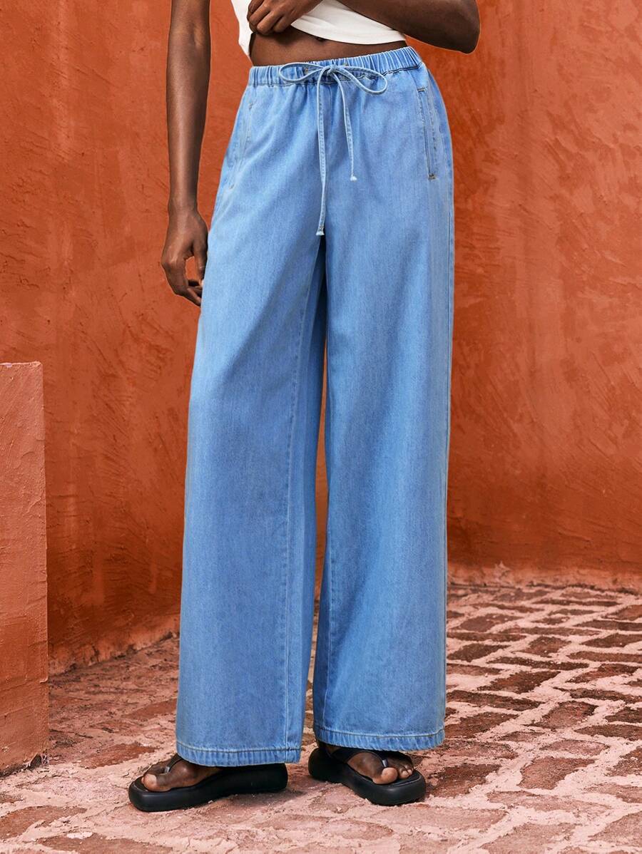 MIU Women's Blue Jeans Comfortable Elastic Waistband Lightweight And Comfortable Denim Pants Suitable For Summer Casual Jeans, Going Out