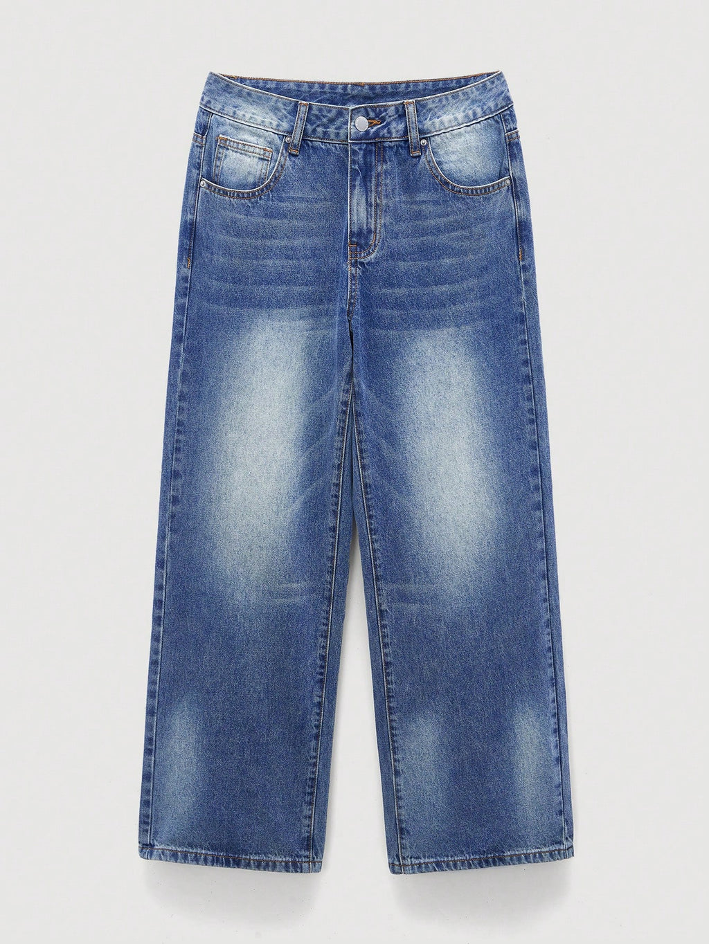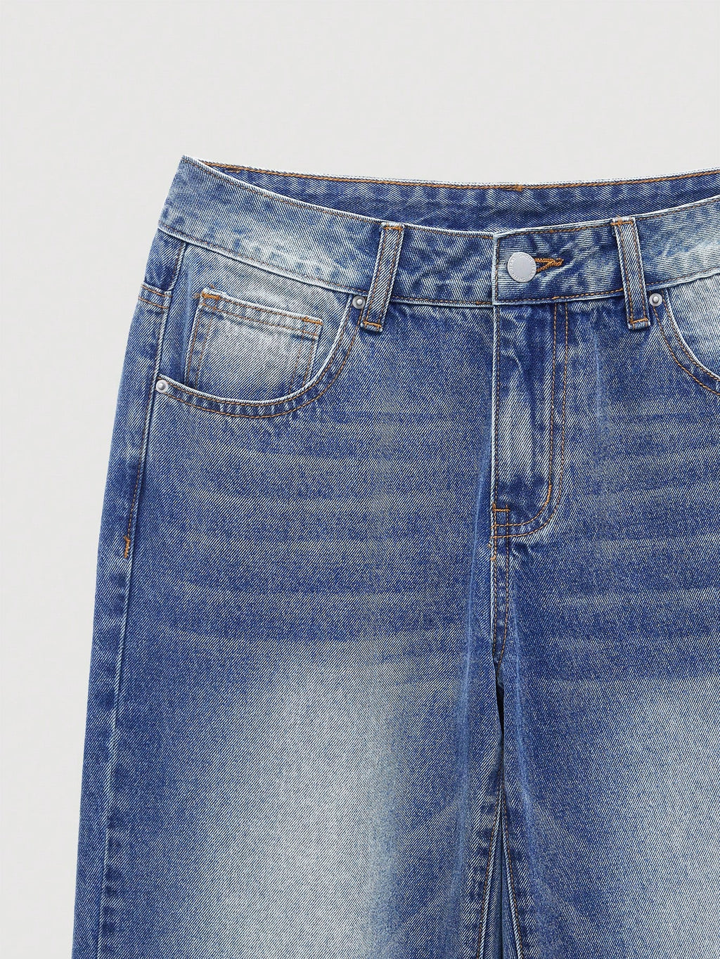 MIU Women's Blue Jeans Low-Rise Straight-Leg Trousers Summer Jeans Retro Outfit Baggy Pants