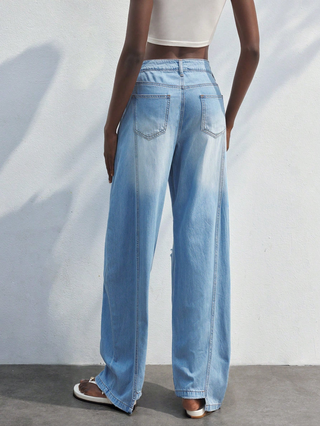 MIU Women's Blue Jeans Low Waist Banana Pants Casual Summer Wear