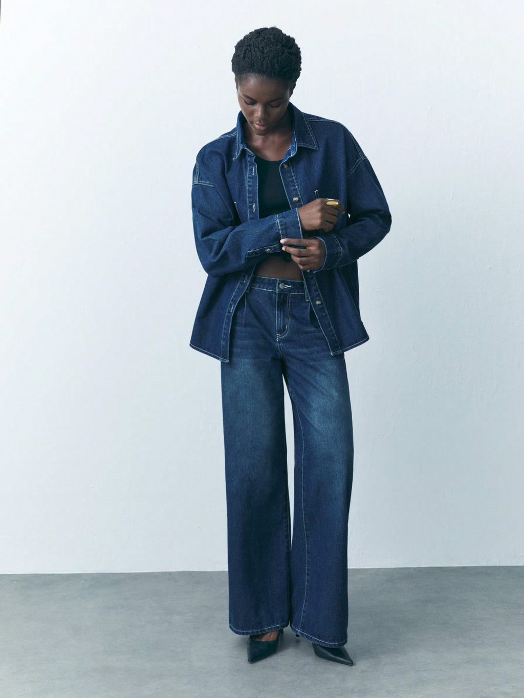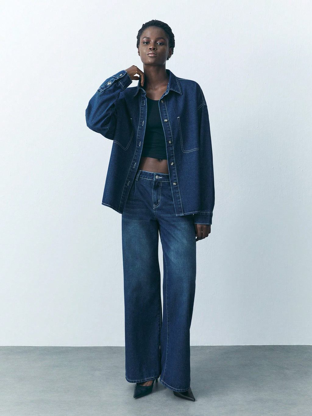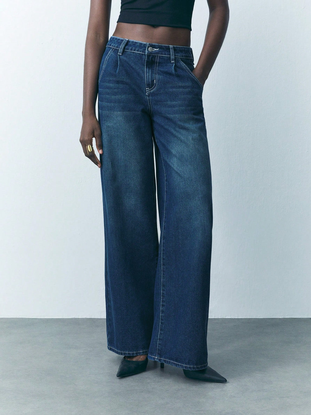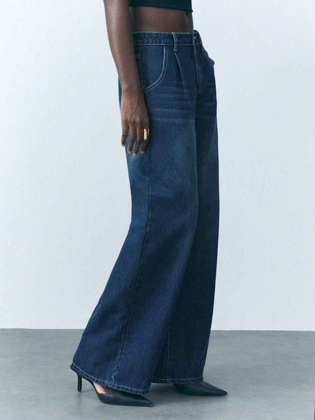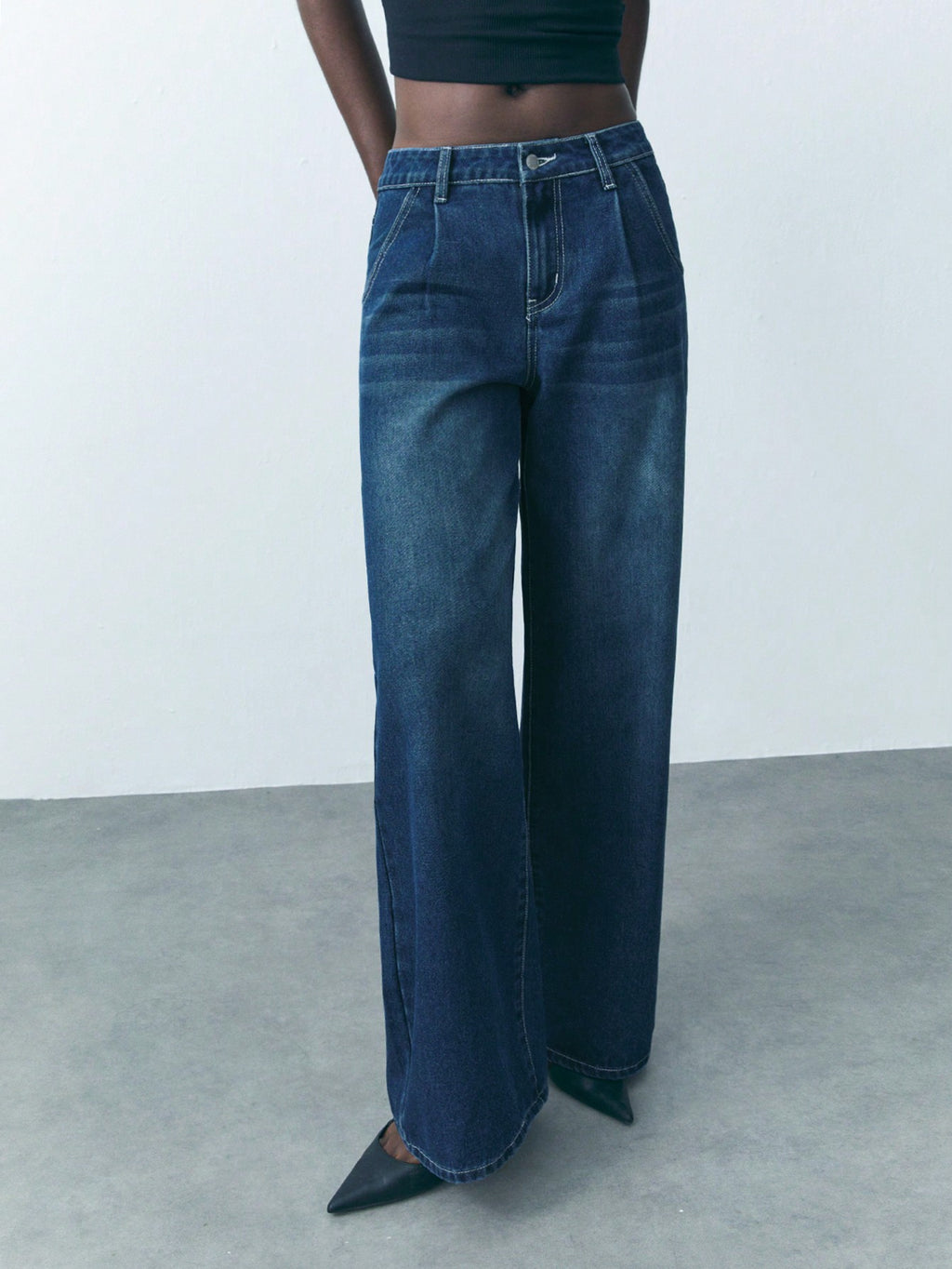 MIU Women's Button Waist Strap Casual Straight Leg Jeans Streetwear Trousers