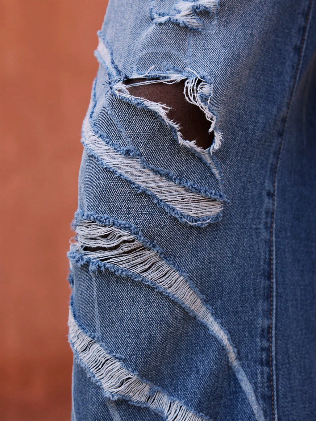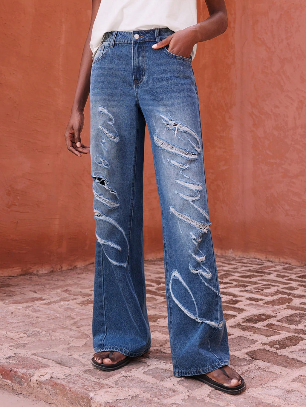 MIU Women's Casual Extra Long Denim Jeans: Medium Wash With Zipper Detail And Distressed Design
