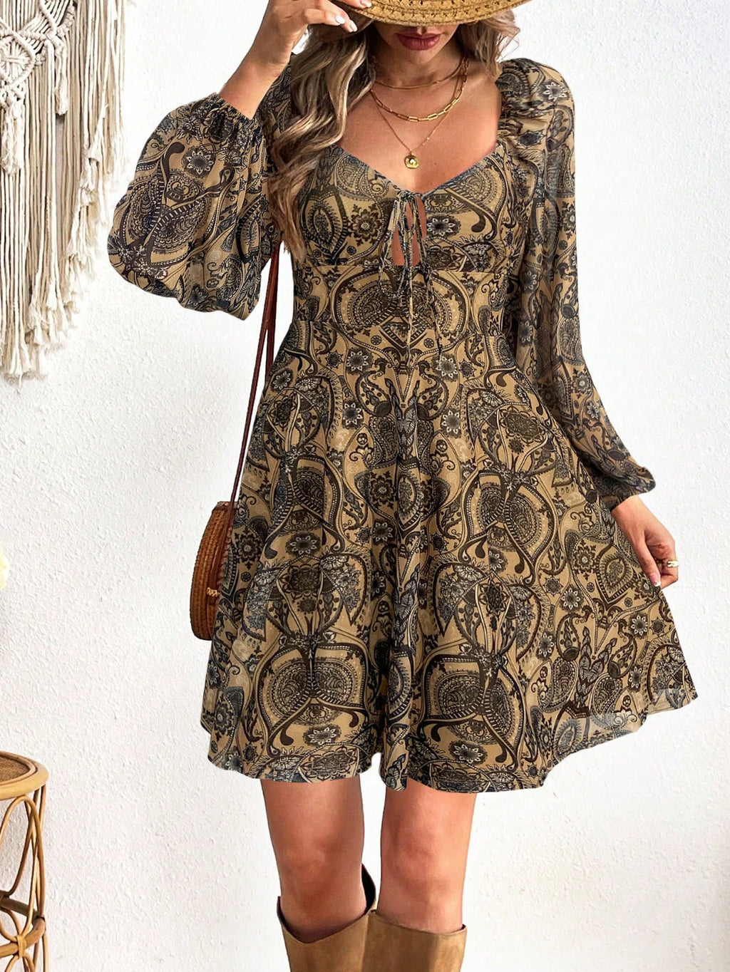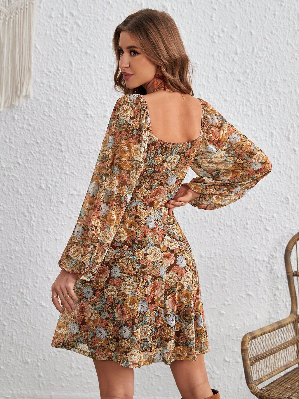 MIU Women's Casual Floral All-Over Print Cinched Waist Midi Dress, Vacation Outfits For Women