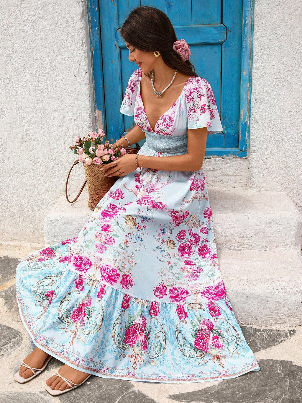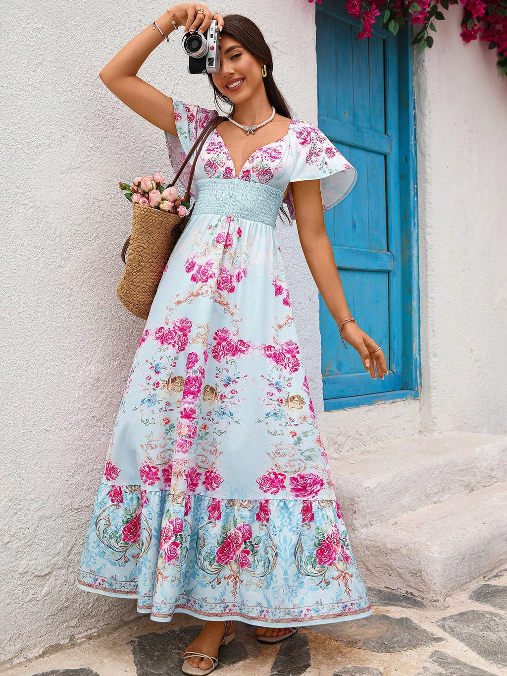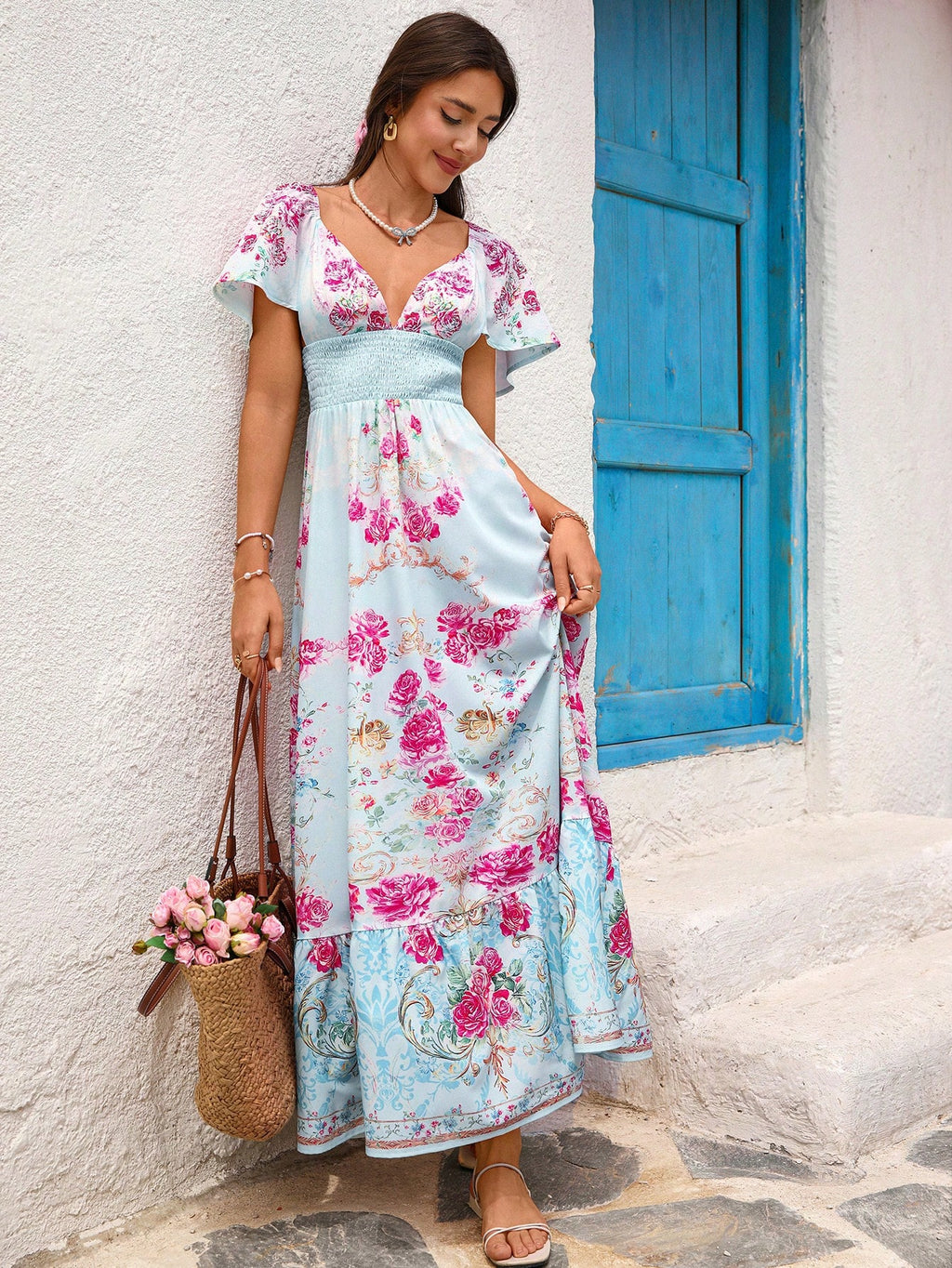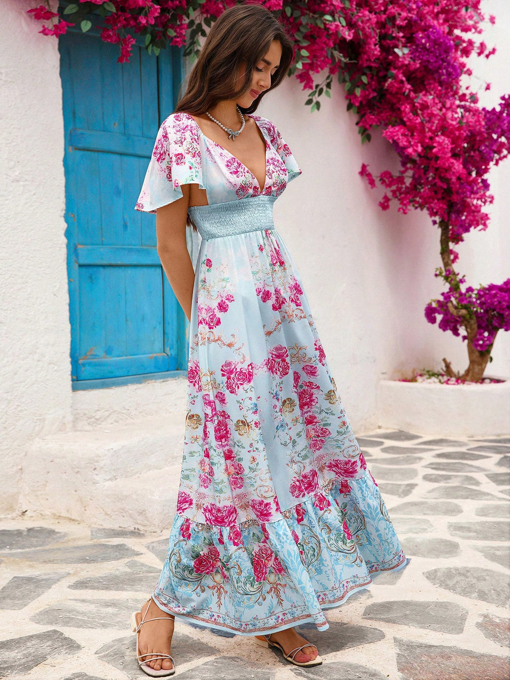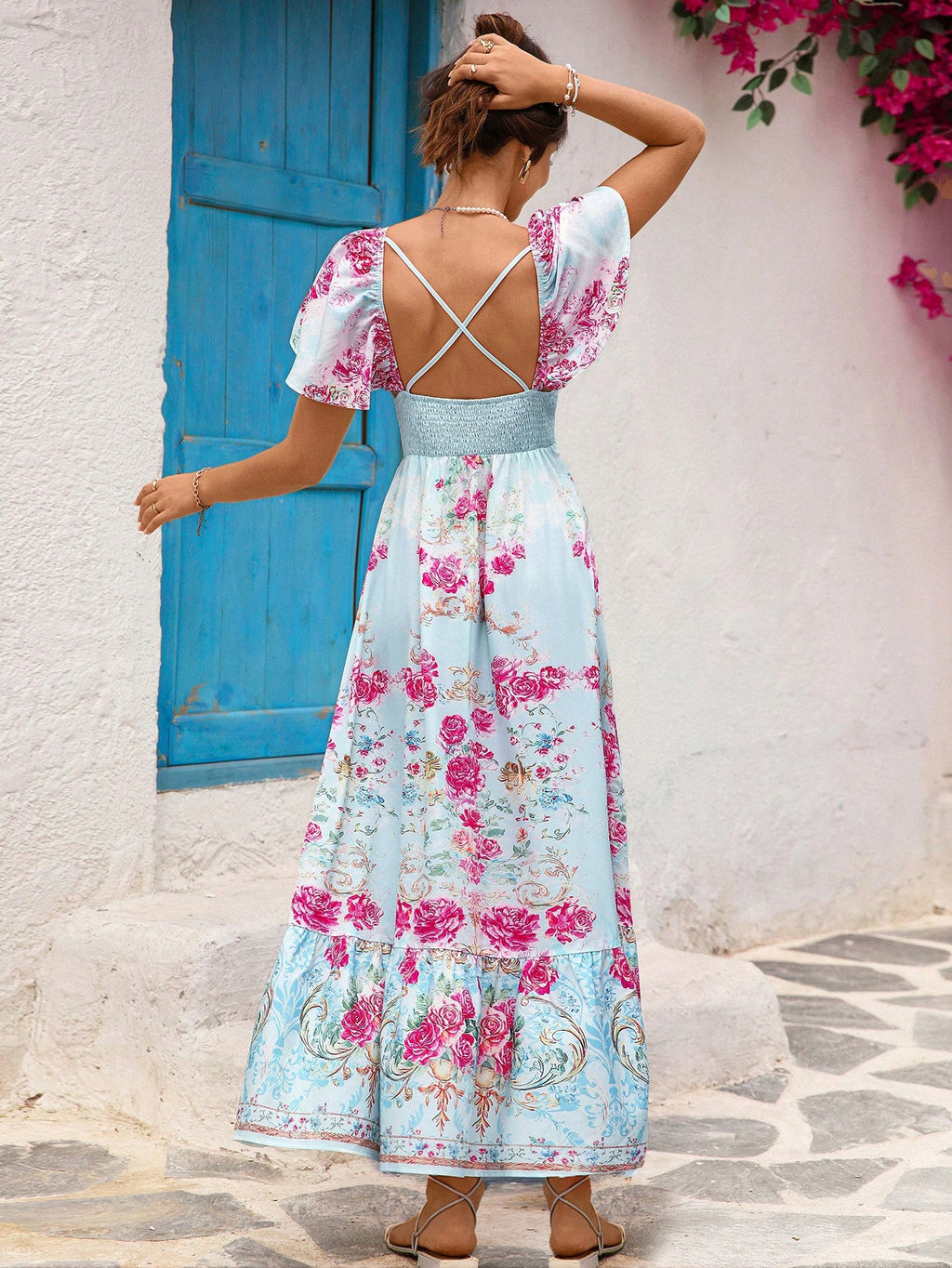 MIU Women's Casual Floral Print Backless Long Dress, Women Casual Dress, Women Summer Clothing, Vacation Style