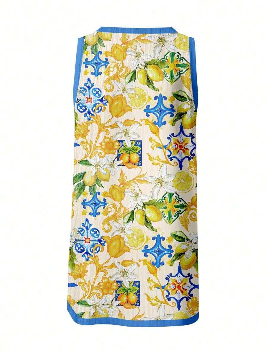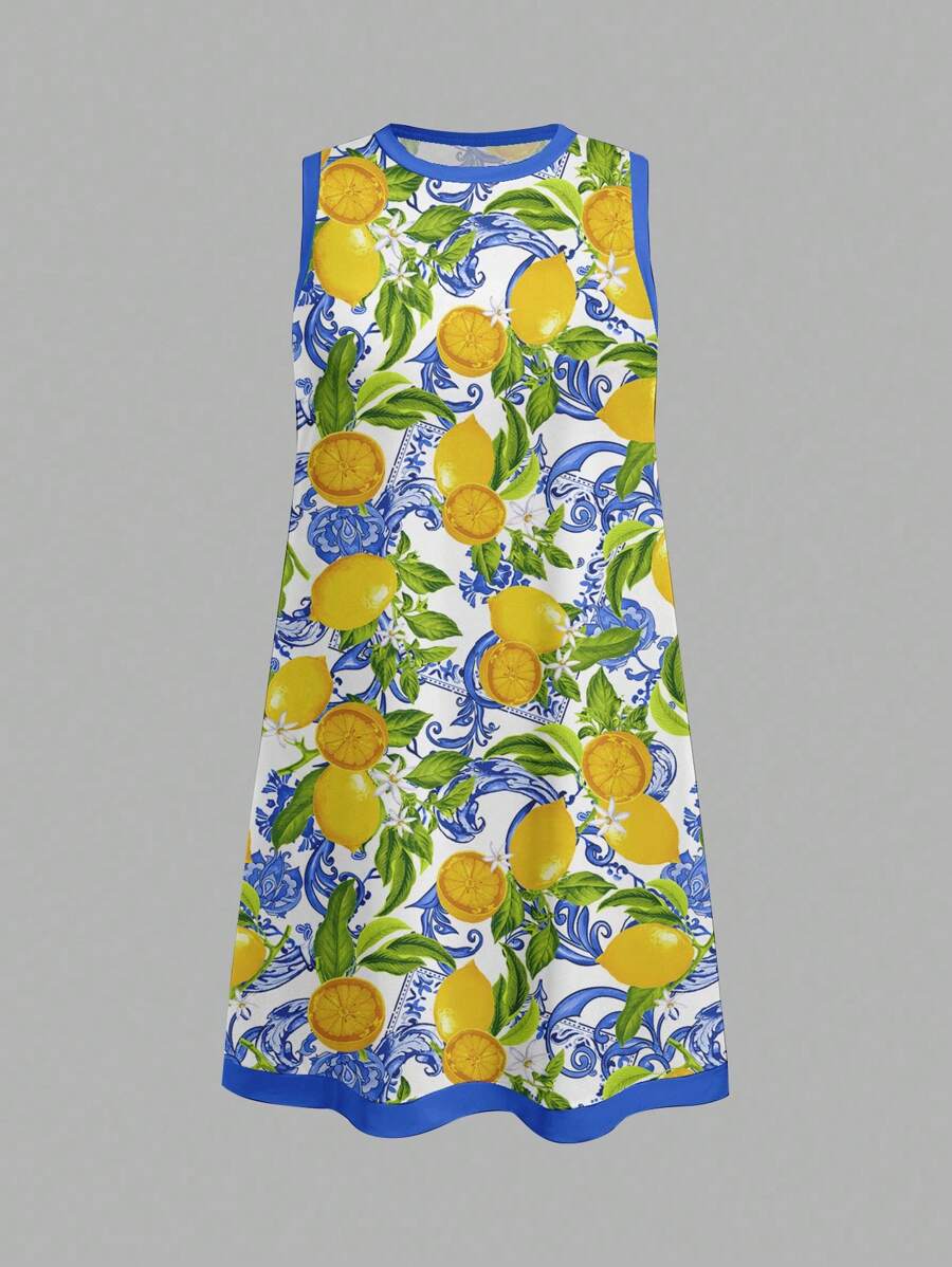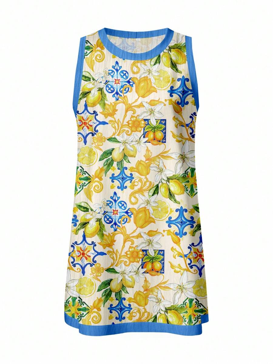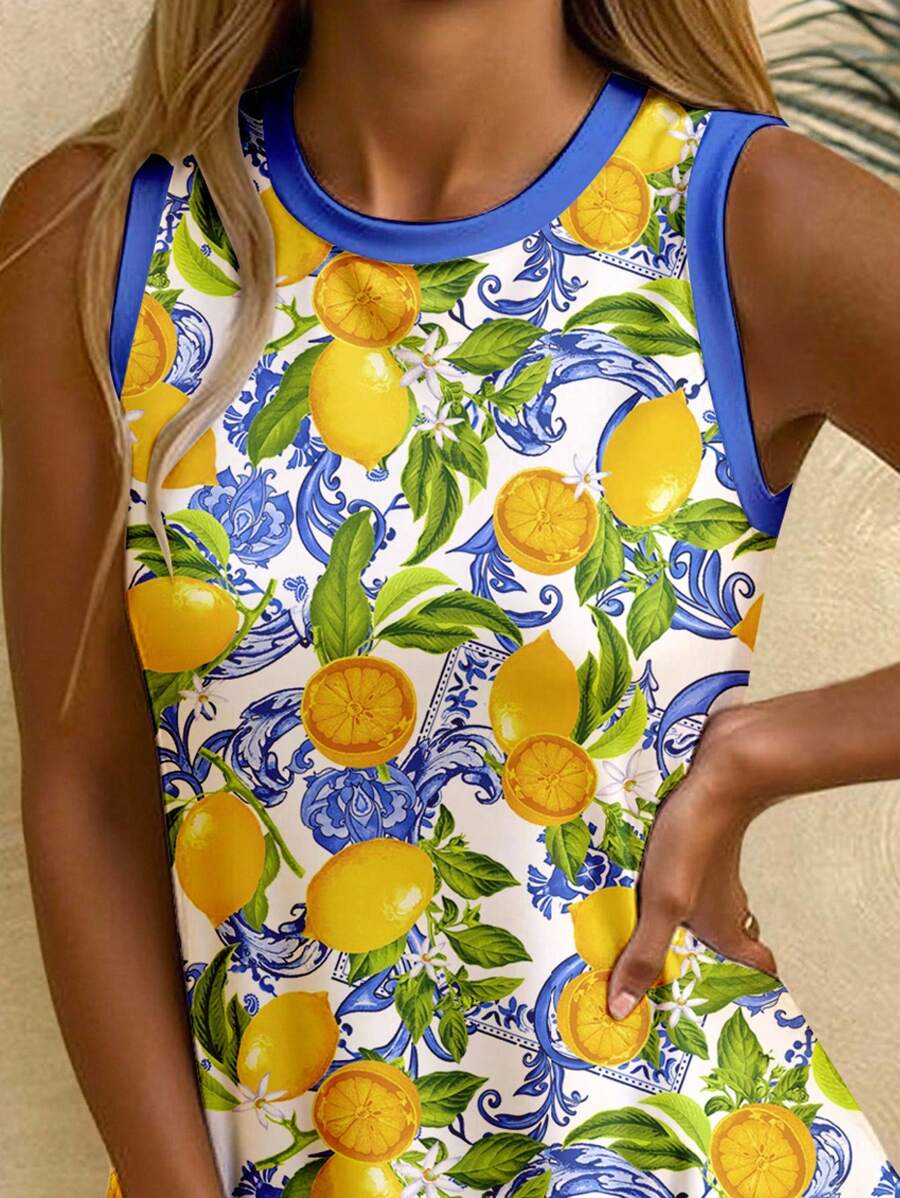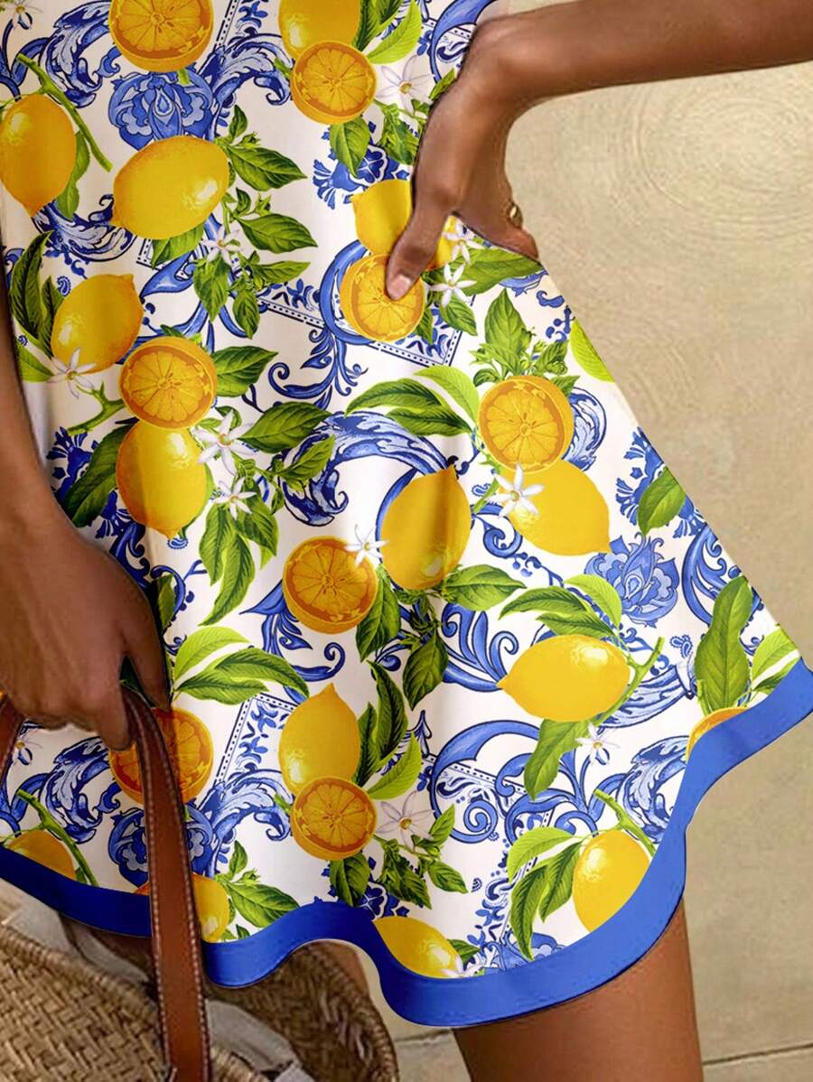 MIU Women's Casual Sleeveless Mini Dress, Italian Lemon Prints, Romantic, Miami Girl, Island Girl, Beach, Music Festivals, Countryside Seaside Resort Style, Suitable For Summer Vacation