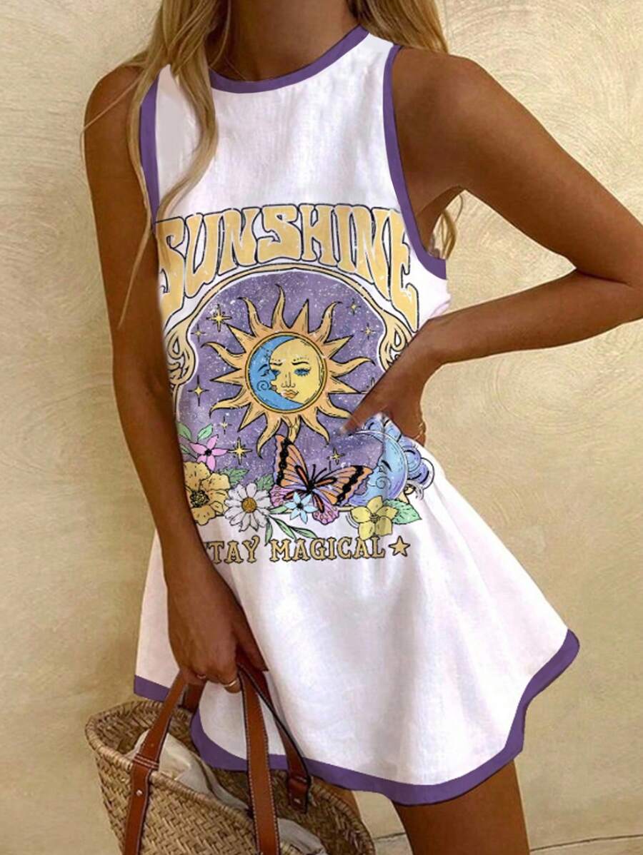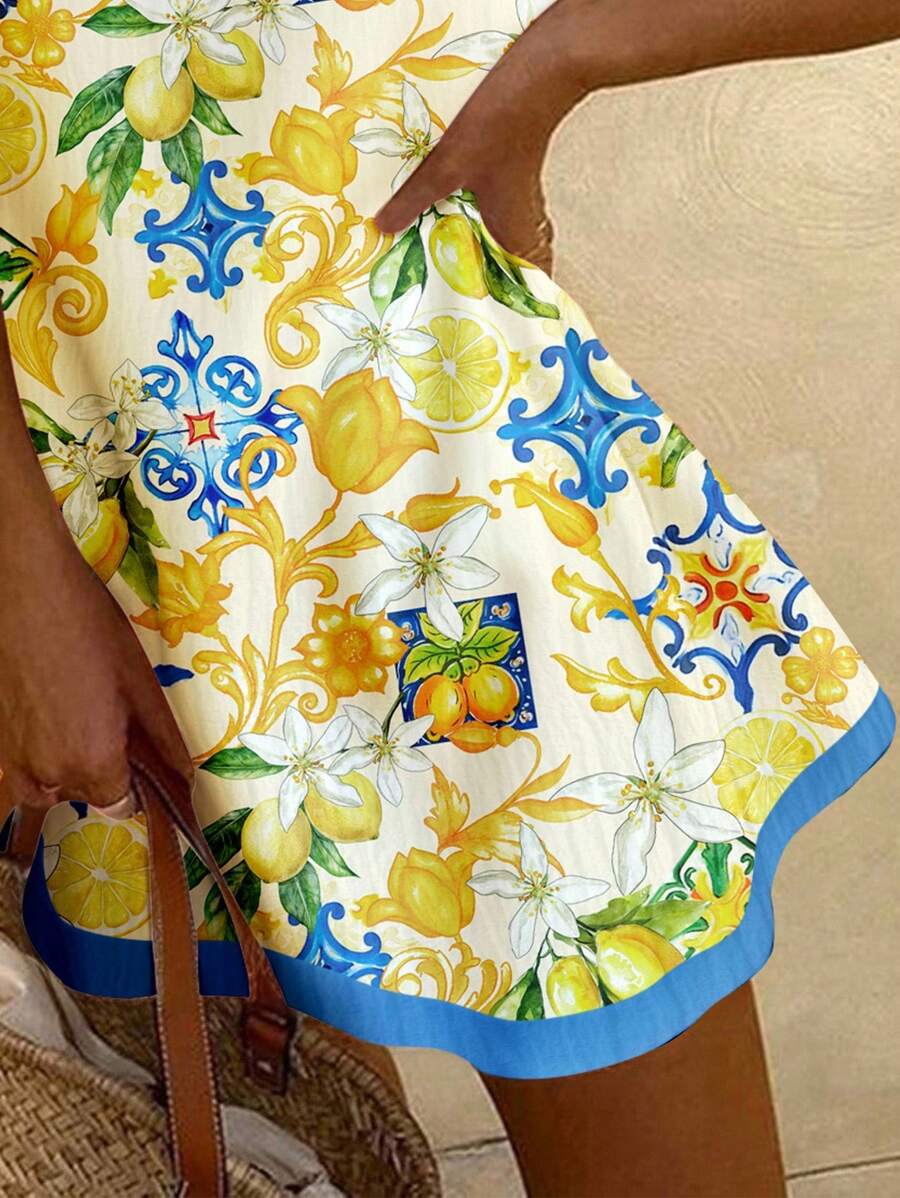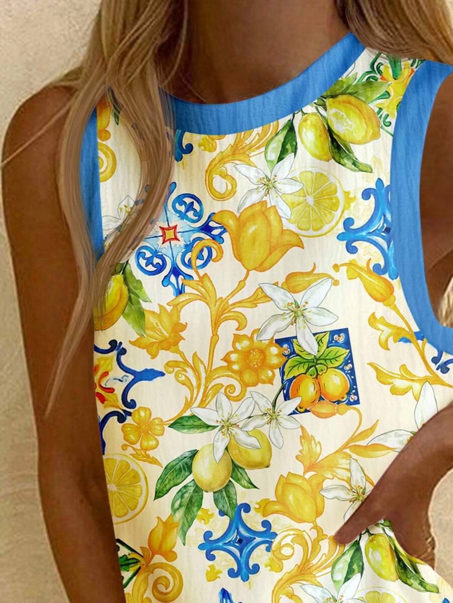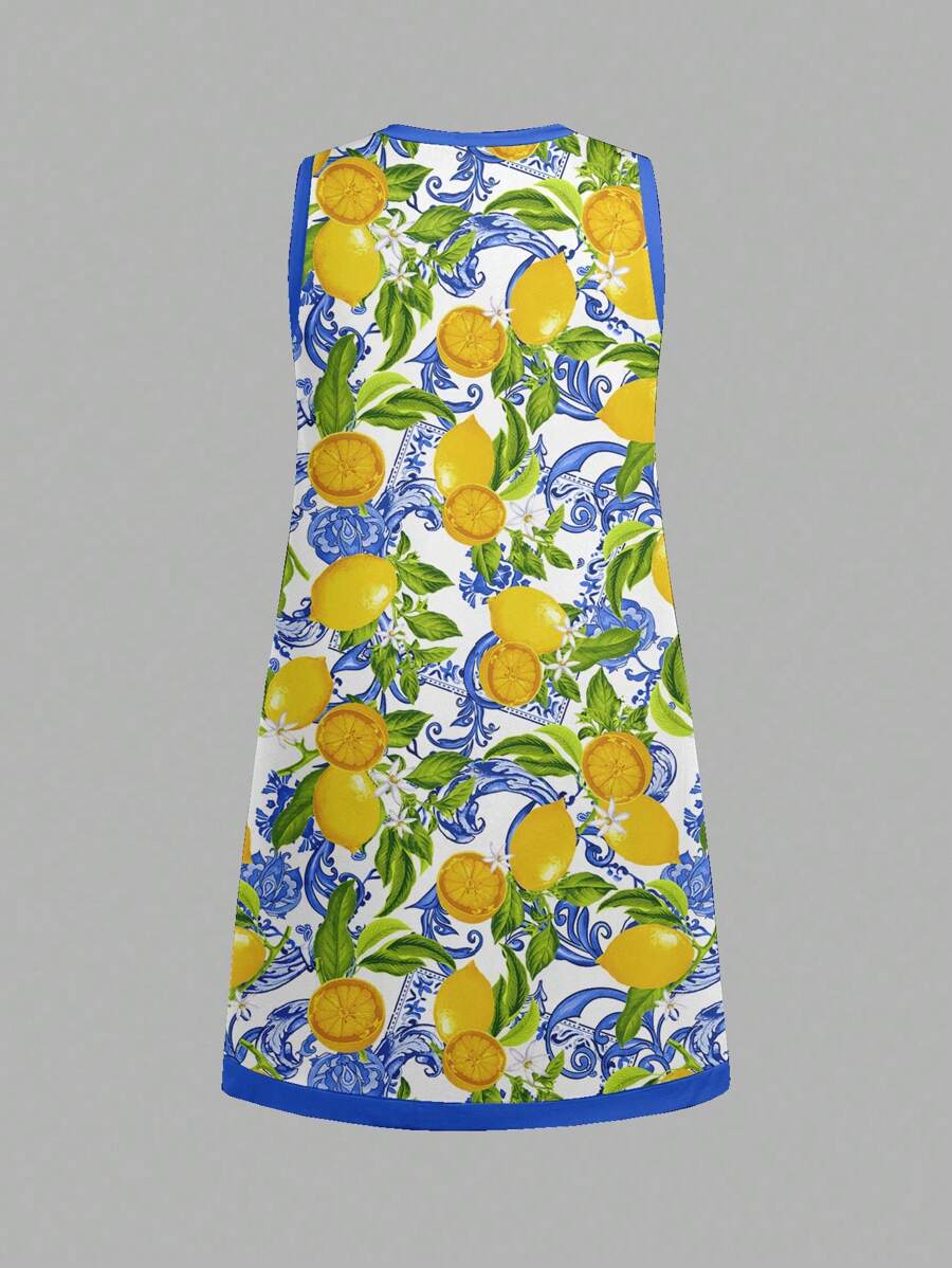 MIU Women's Casual Sleeveless Mini Dress, Italian Lemon Prints, Romantic, Miami Girl, Island Girl, Beach, Music Festivals, Countryside Seaside Resort Style, Suitable For Summer Vacation
