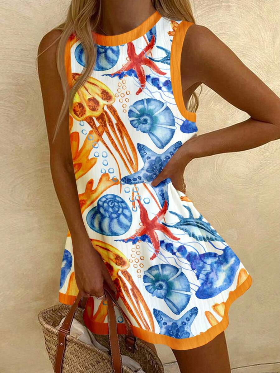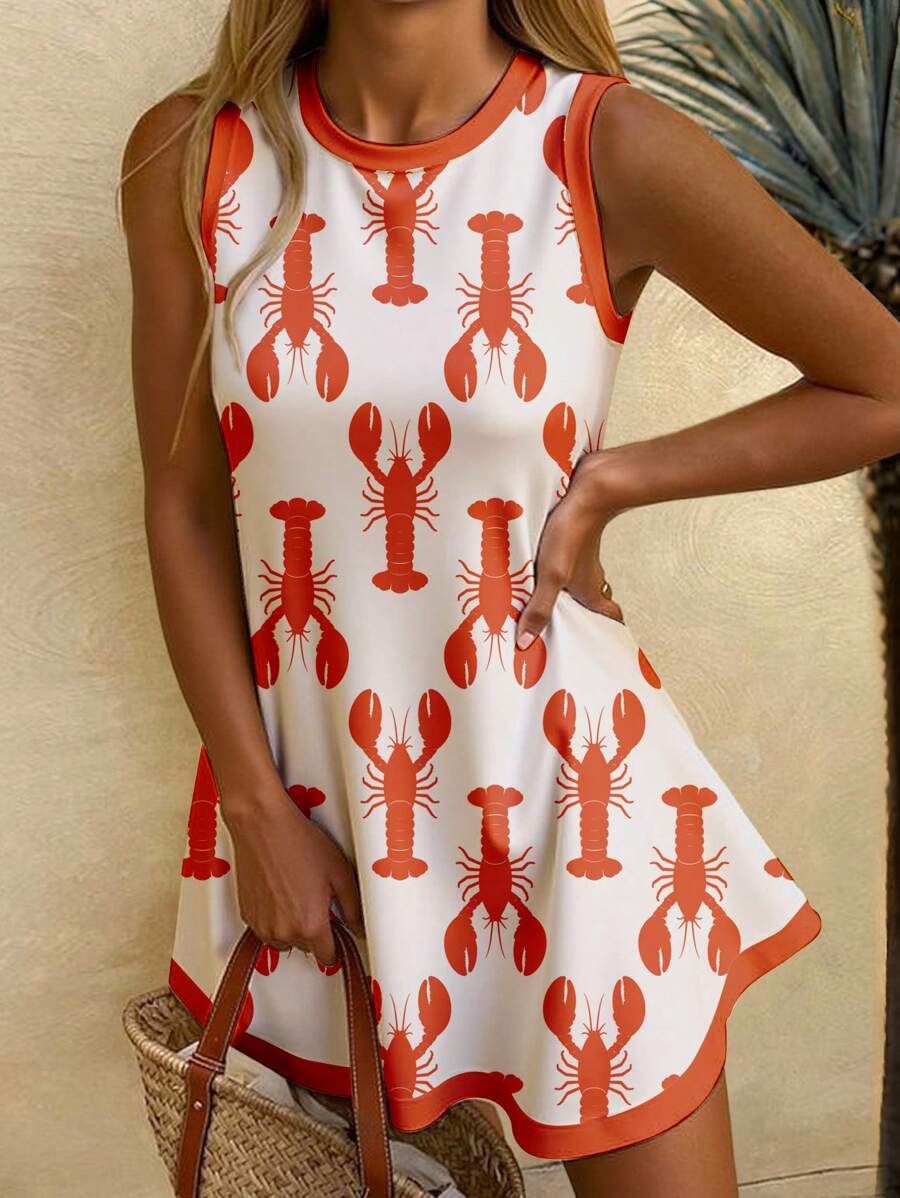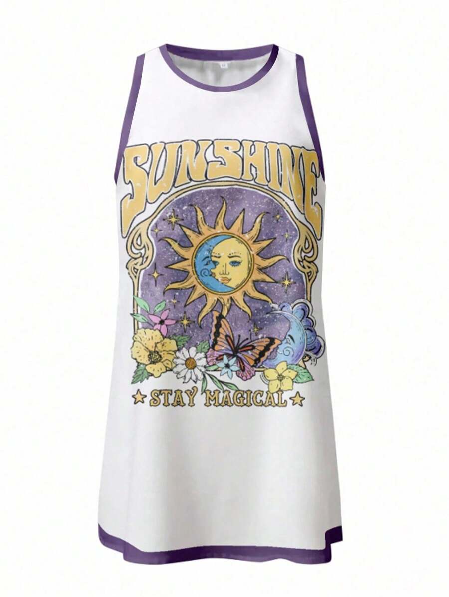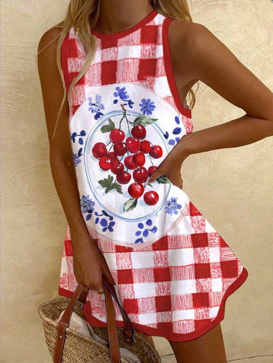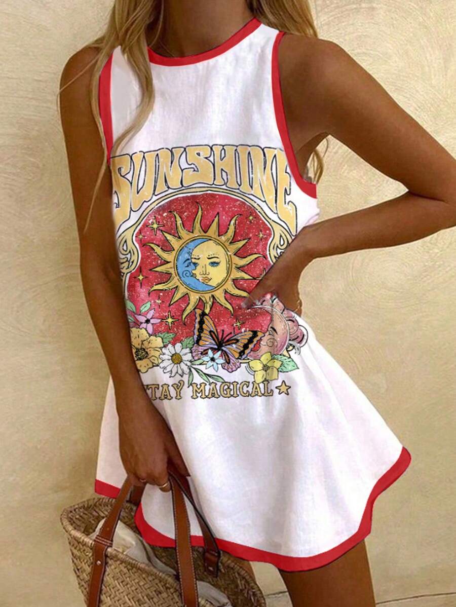 MIU Women's Casual Sleeveless Mini Dress, Italian Lemon Prints, Romantic, Miami Girl, Island Girl, Beach, Music Festivals, Countryside Seaside Resort Style, Suitable For Summer Vacation