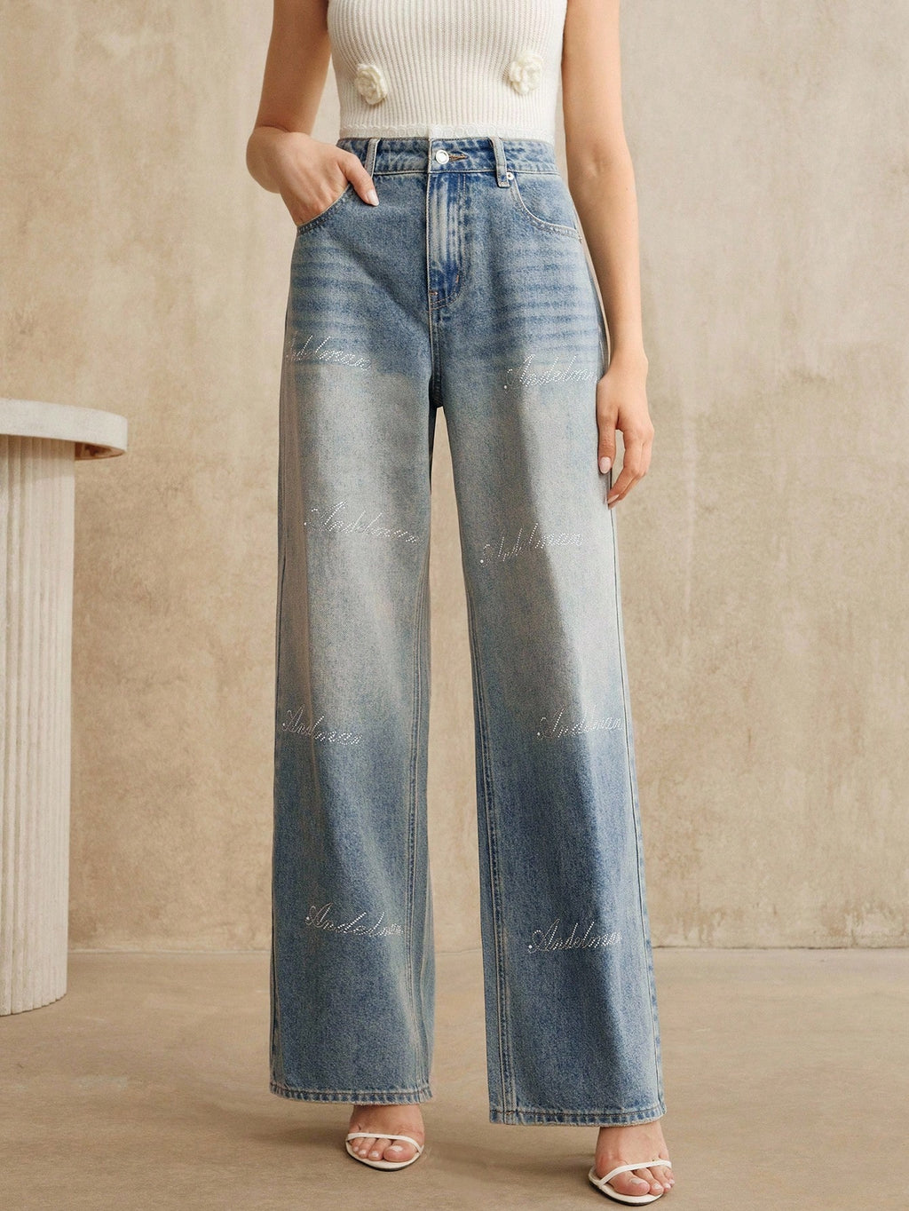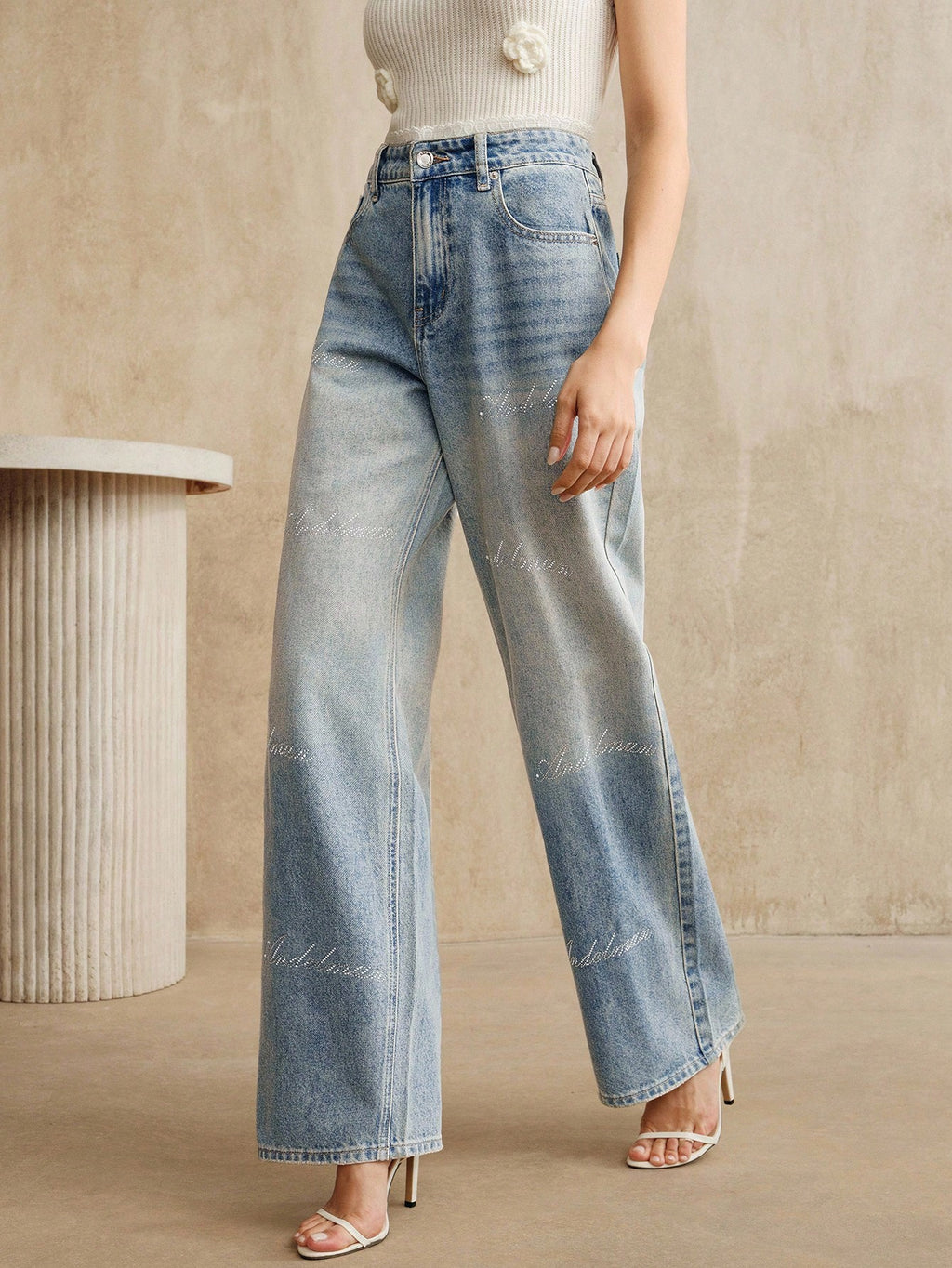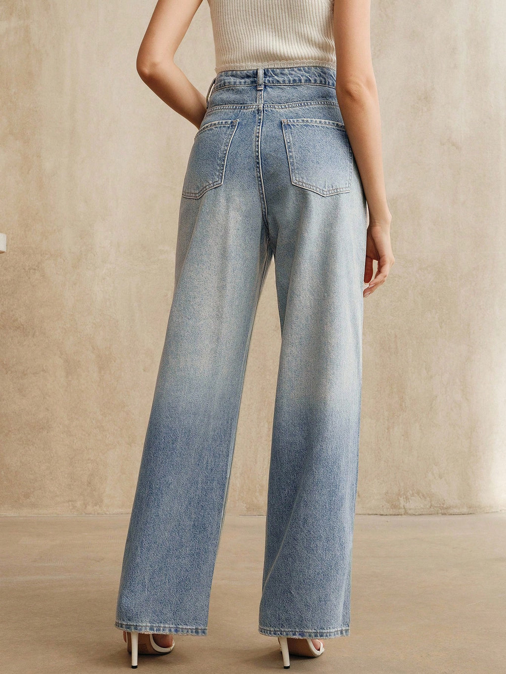 MIU Women's Casual Washed Blue Straight Leg Jeans