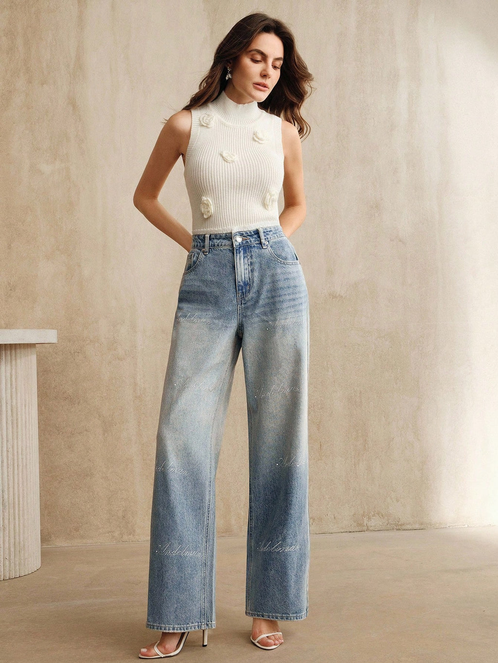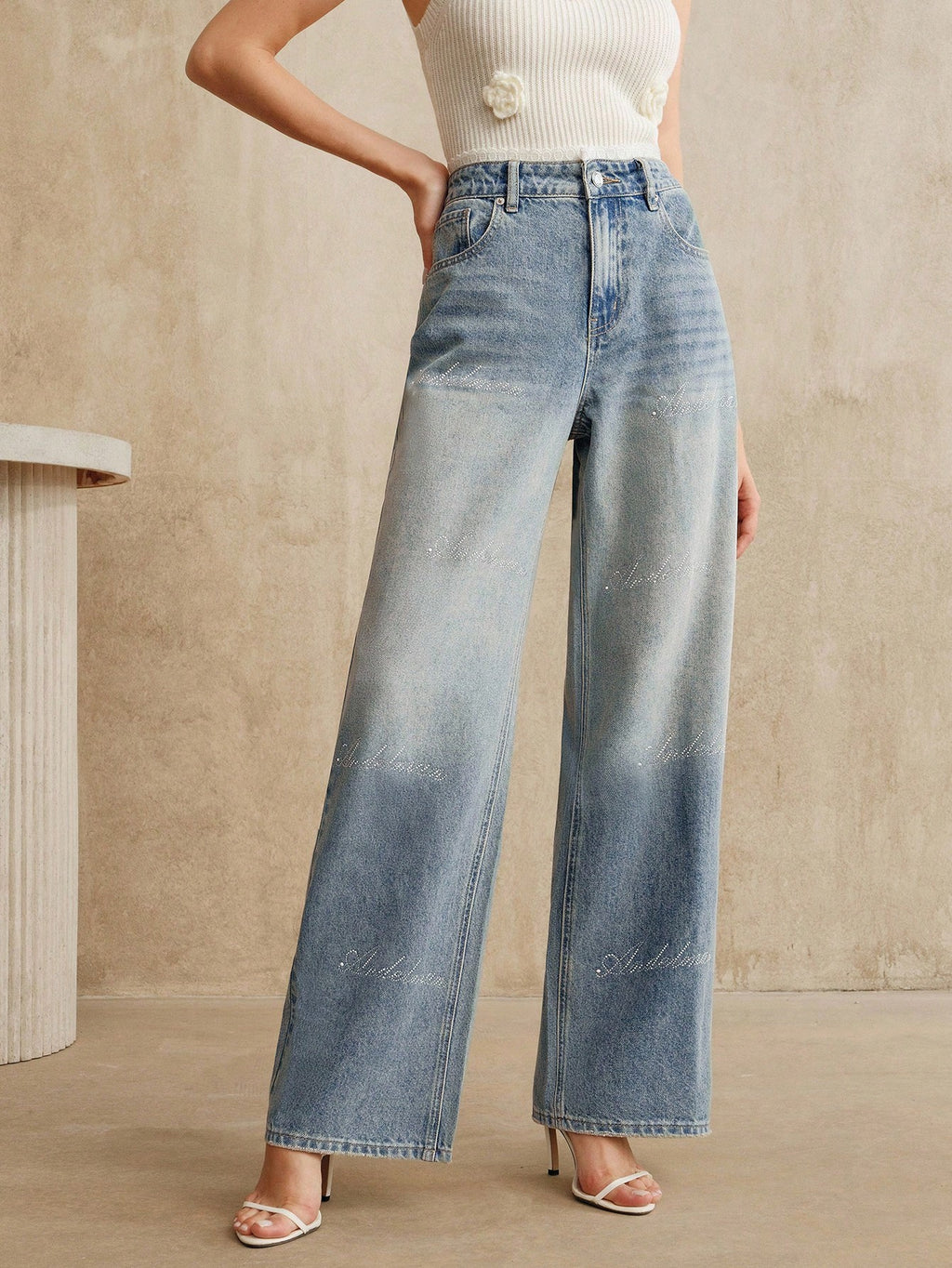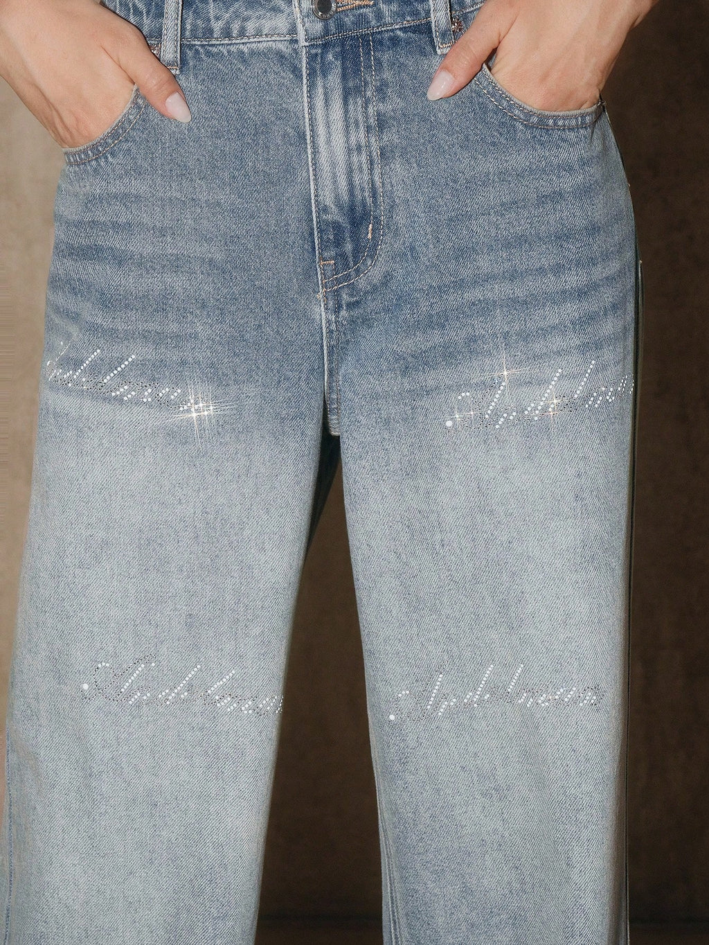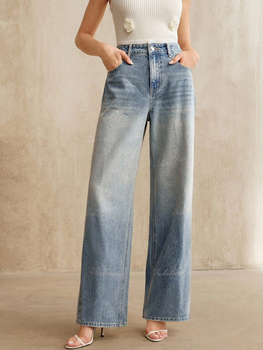 MIU Women's Casual Washed Blue Straight Leg Jeans
