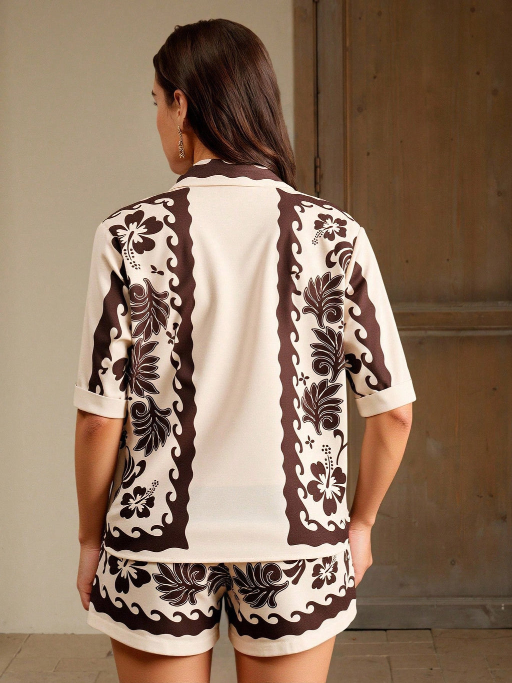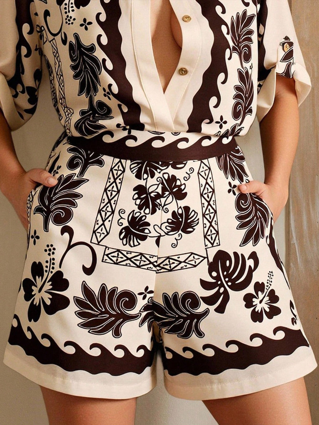 MIU Women's Contrast Color Beach Boho Solid Print Shorts
