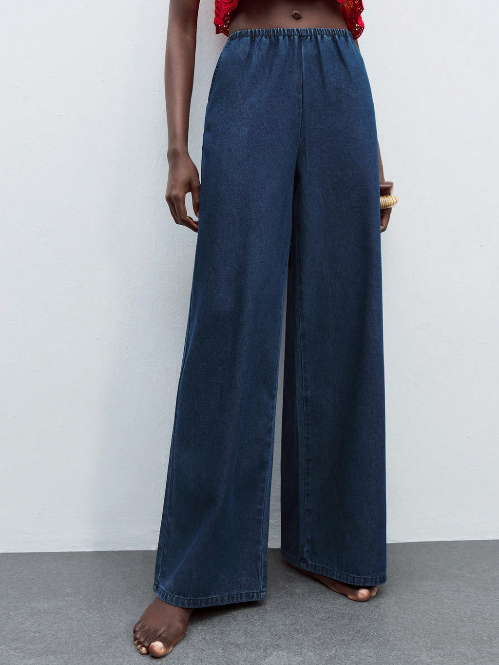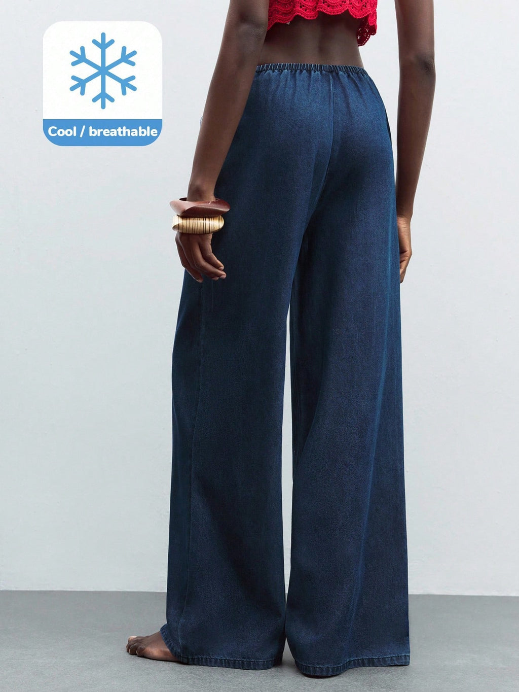 MIU Women's Dark Blue Jeans Summer Low Rise Wide Leg Pants Comfortable Lightweight Denim Elastic Waistband With Pockets, Going Out