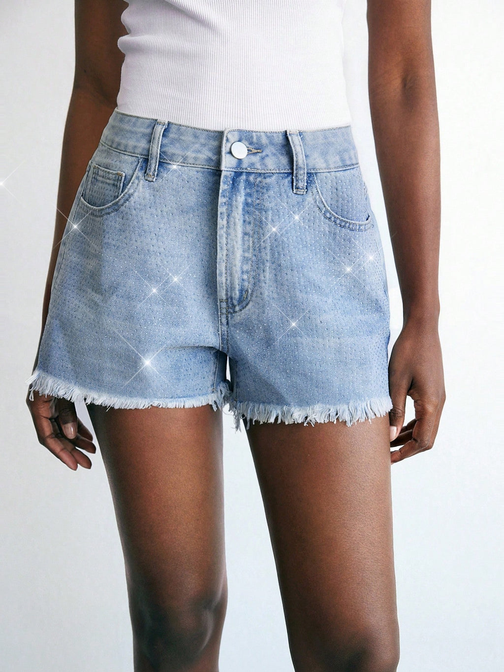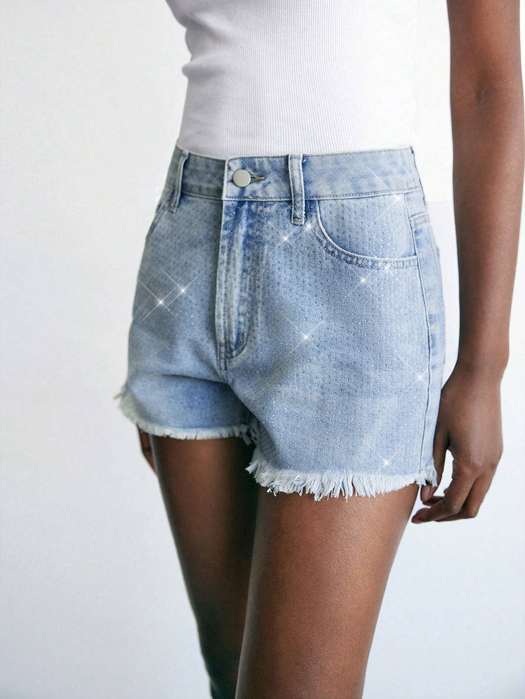MIU Women's Diamond Denim Shorts BlingBling Diamond Jewelry Low-Rise Casual Shorts Music Festival Outfits Summer Shorts, Going Out