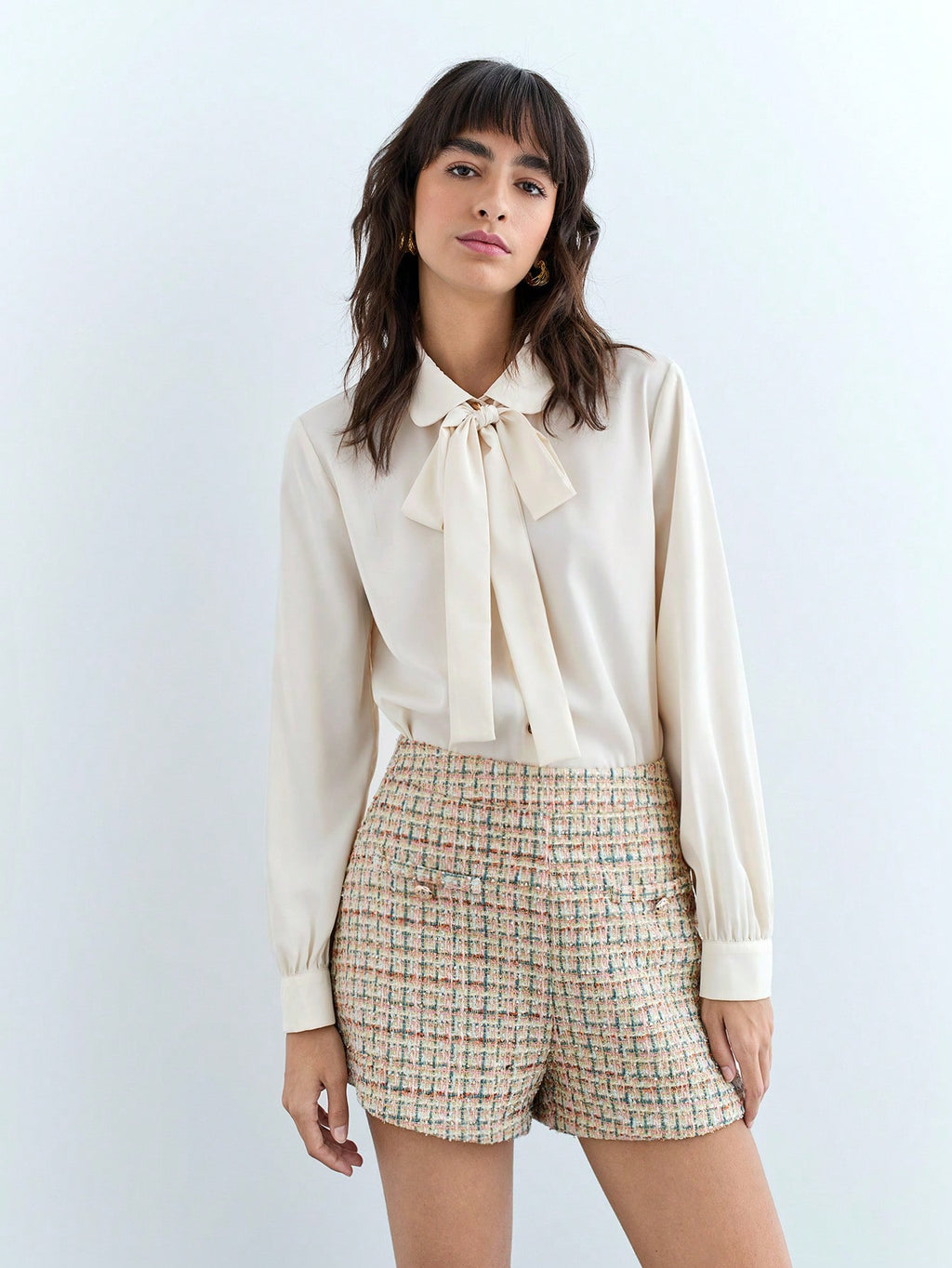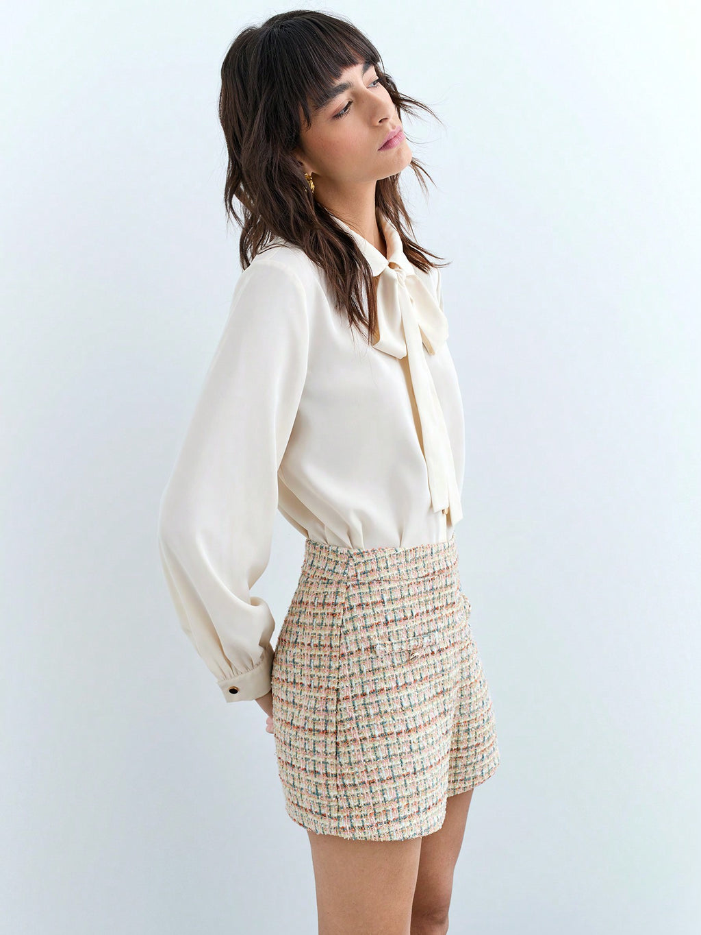 MIU Women's Elegant Colorful Plaid Tweed Shorts For Christmas Party, Autumn/Winter