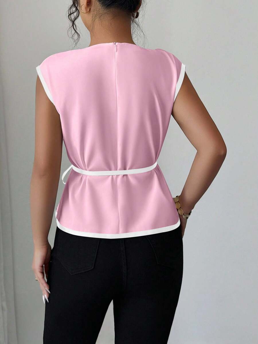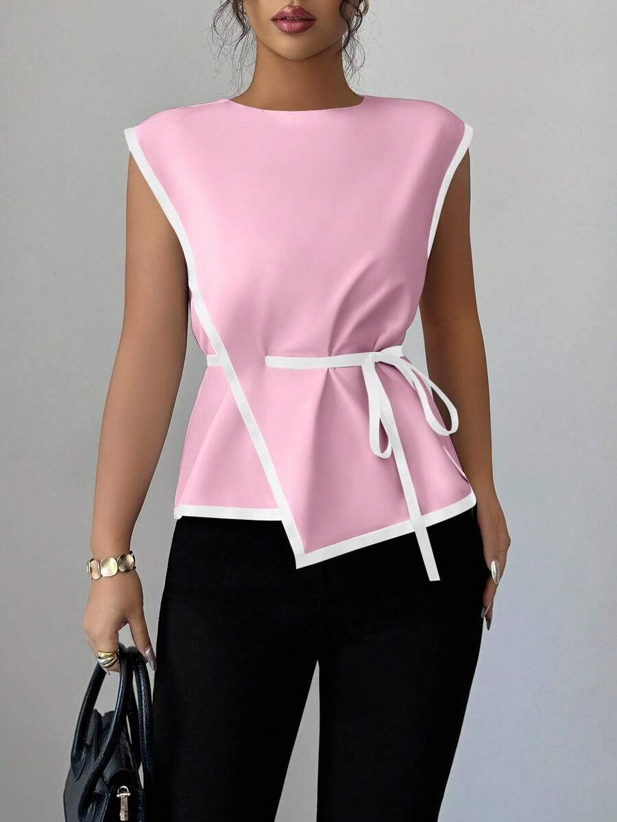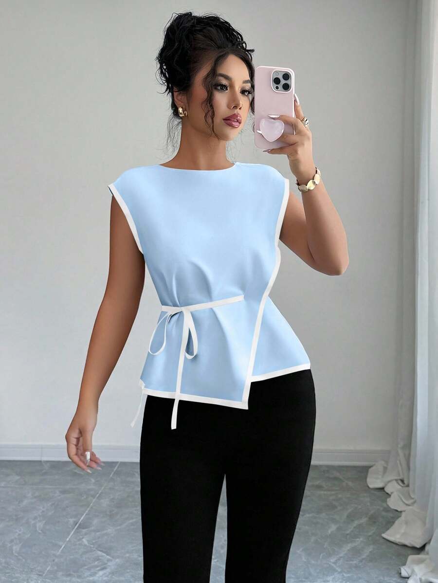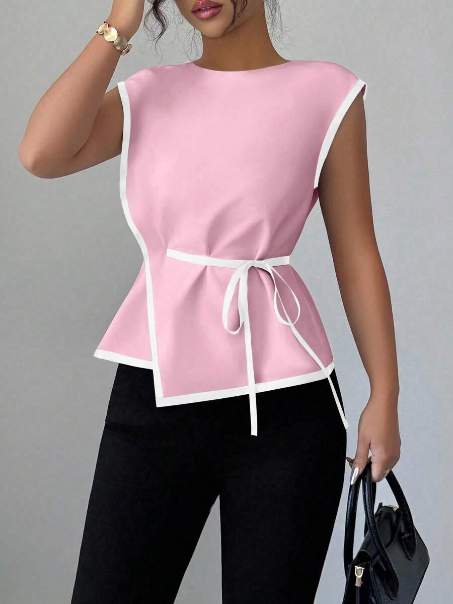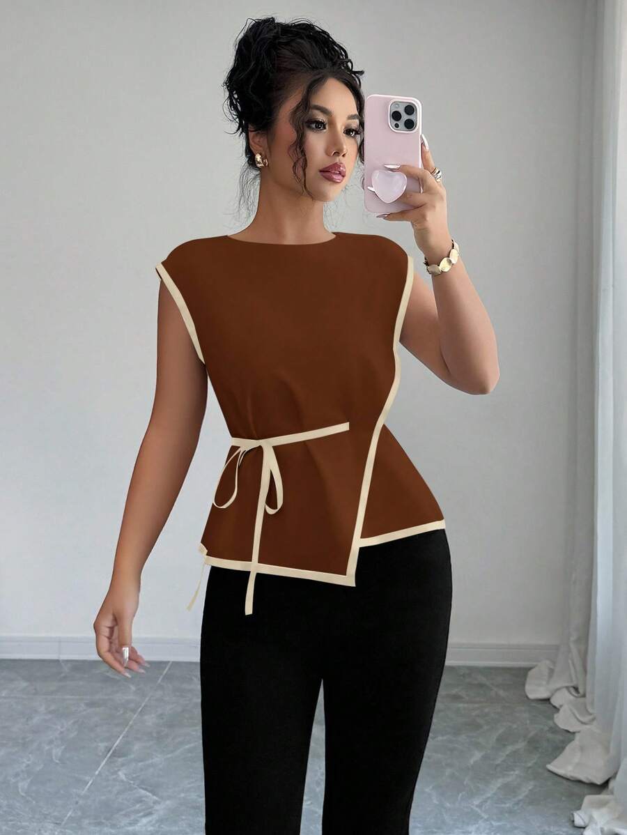 MIU Women's Elegant Fitted Two-Tone Blouse, Suitable For Commuting