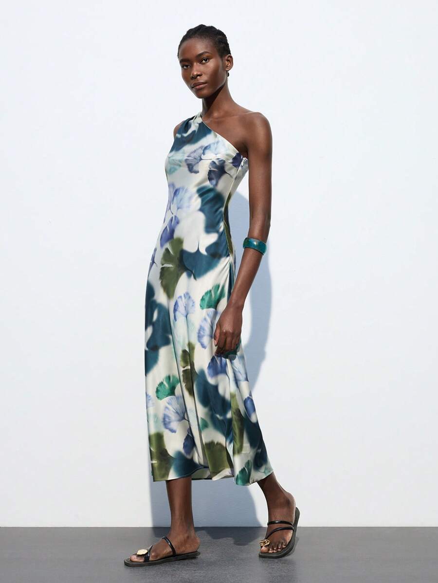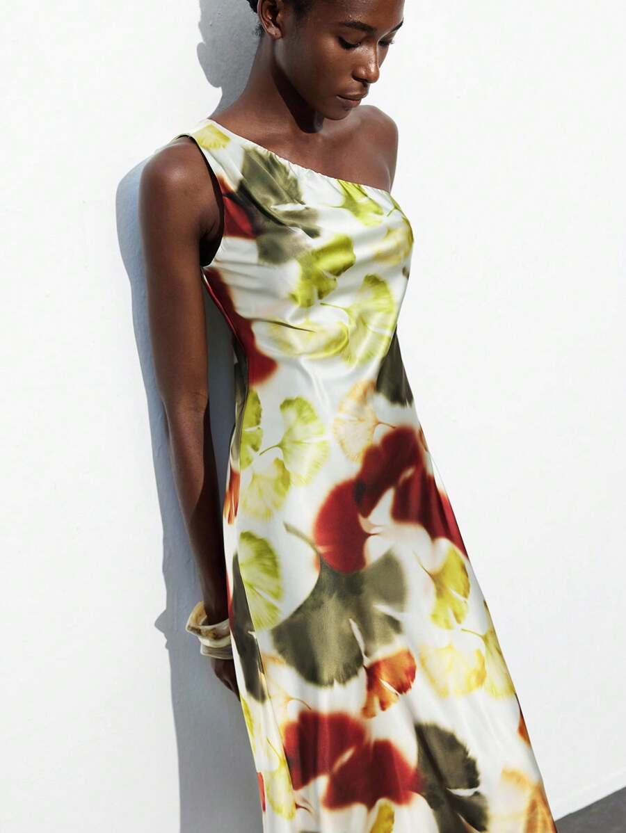MIU Women's Elegant Ginkgo Leaf Printed Sleeveless Dress Summer Dresses For Women,Vacation Outfits