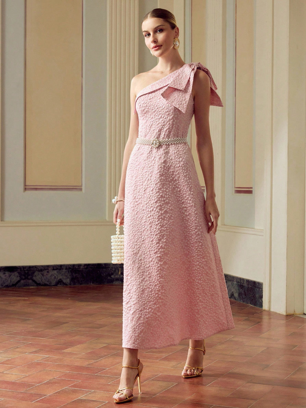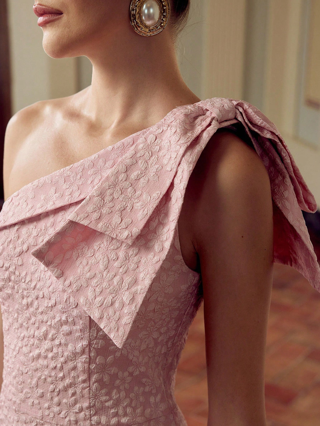 MIU Women's Elegant Jacquard Weave One Shoulder Dress