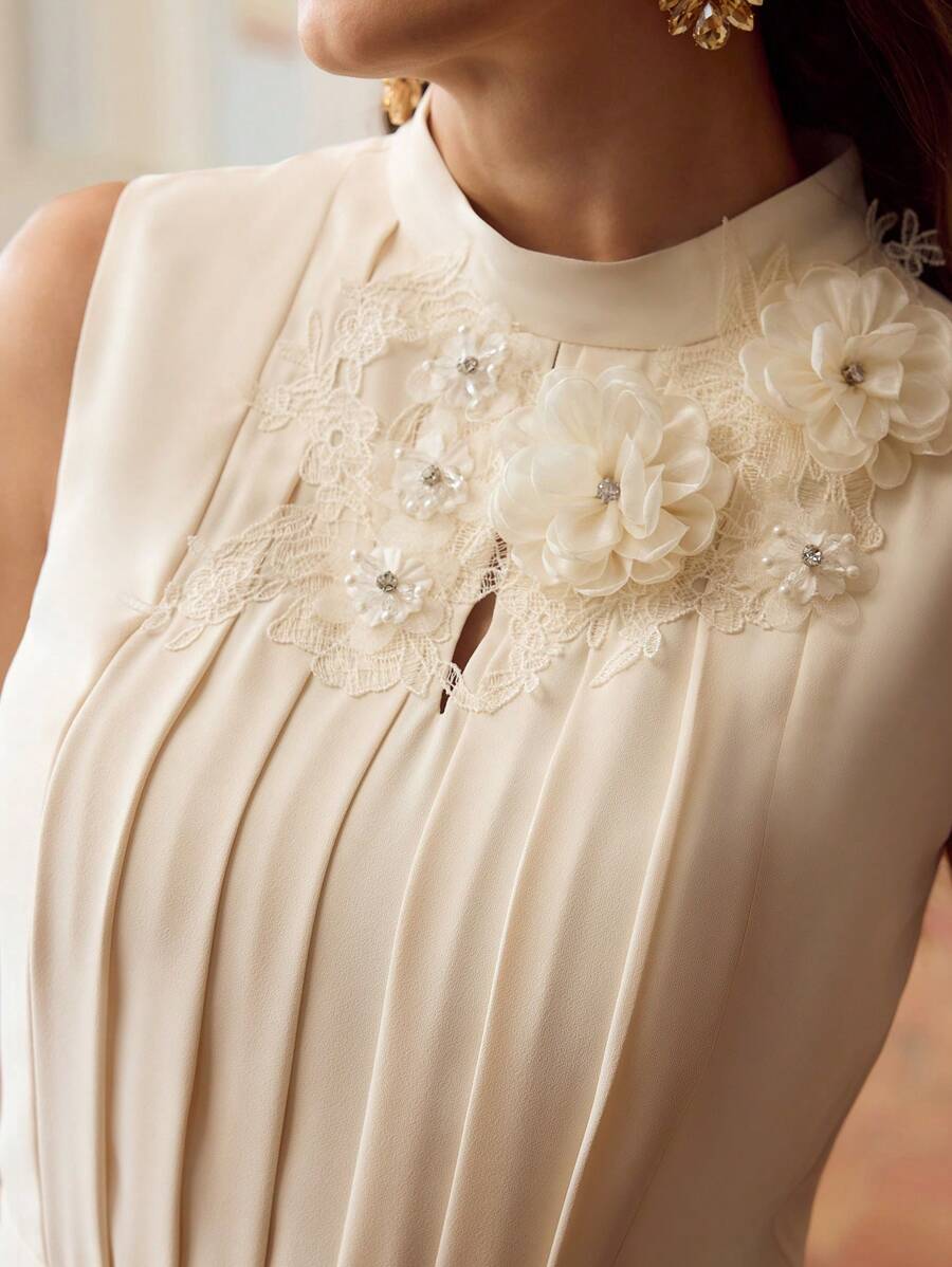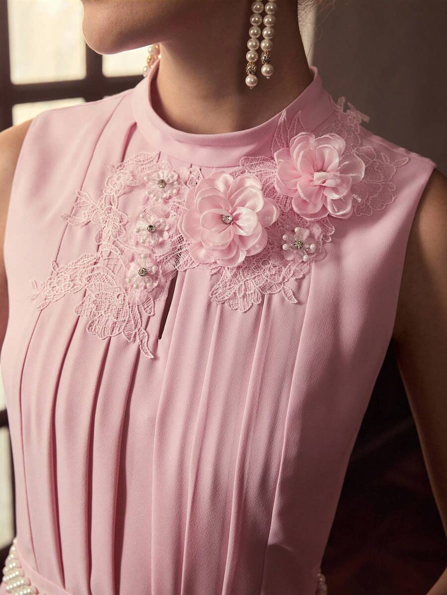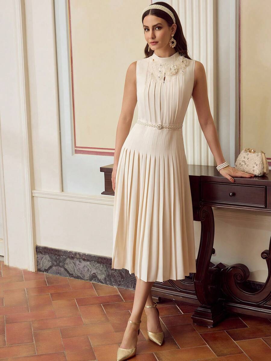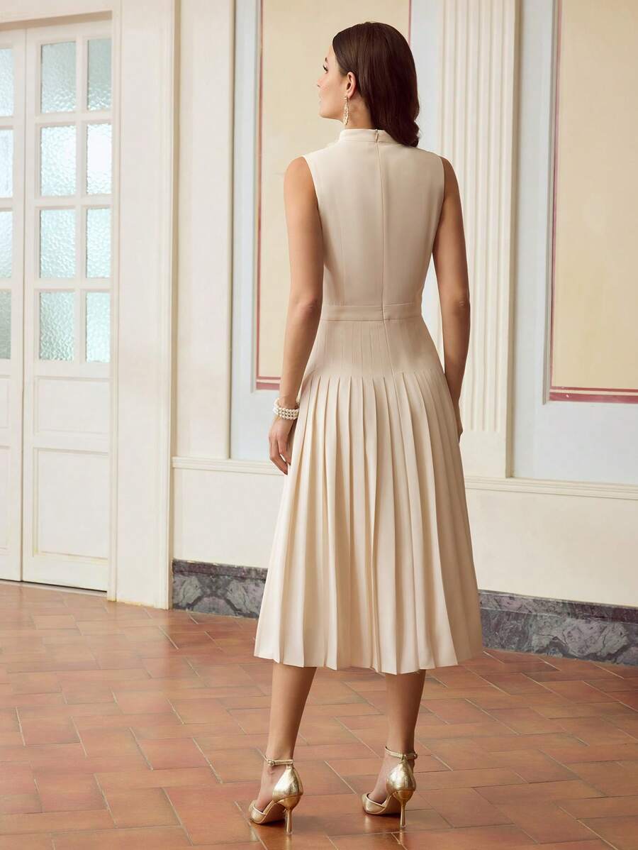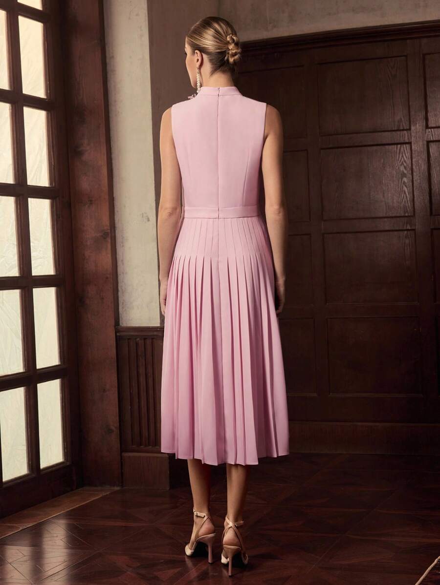 MIU Women's Elegant Pleated Floral Midi Dress,Graduation Dresses