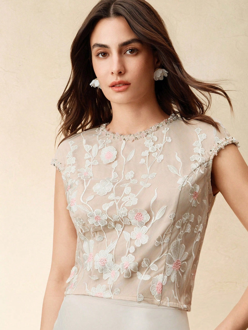 MIU Women's Elegant Romantic Embroidered Floral Beaded Spring/Summer Tops, T-Shirts, Blouses For Women, Festival, Vacation, Holiday
