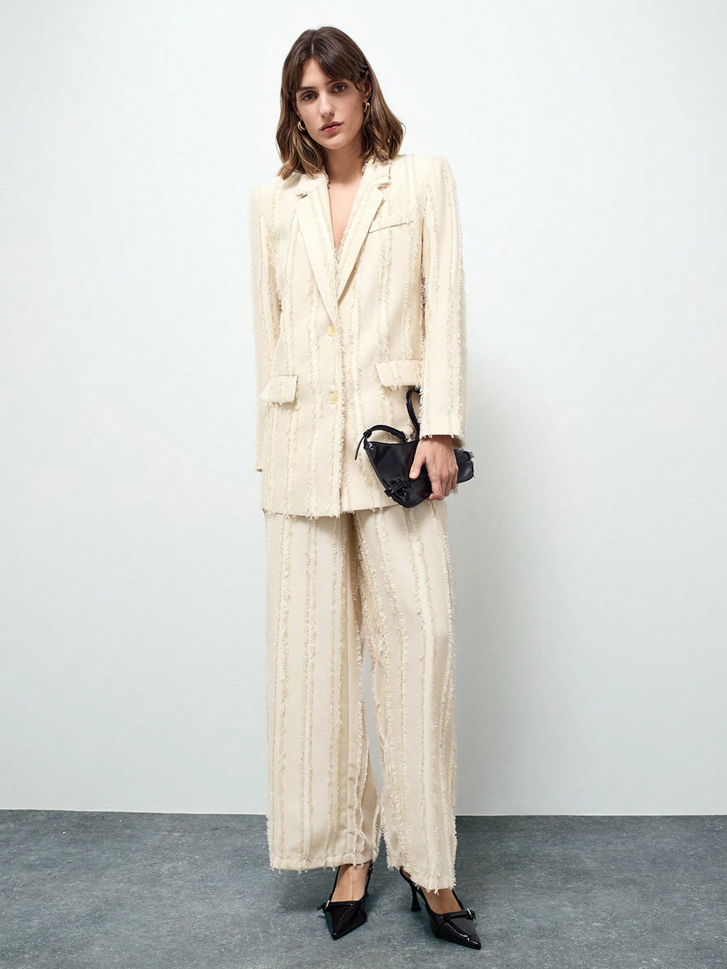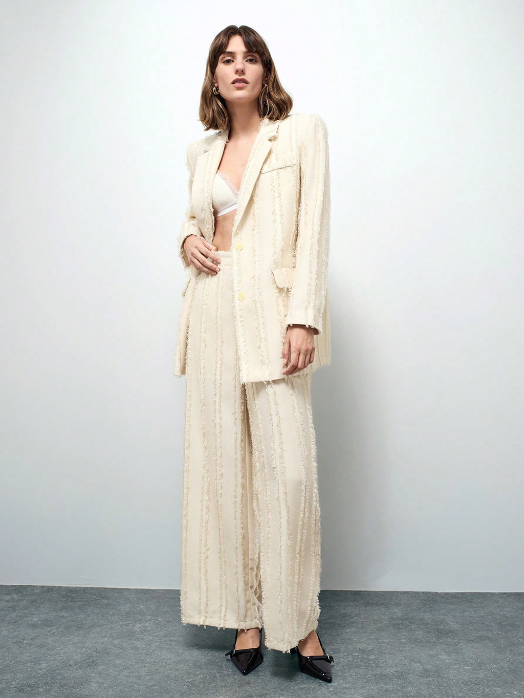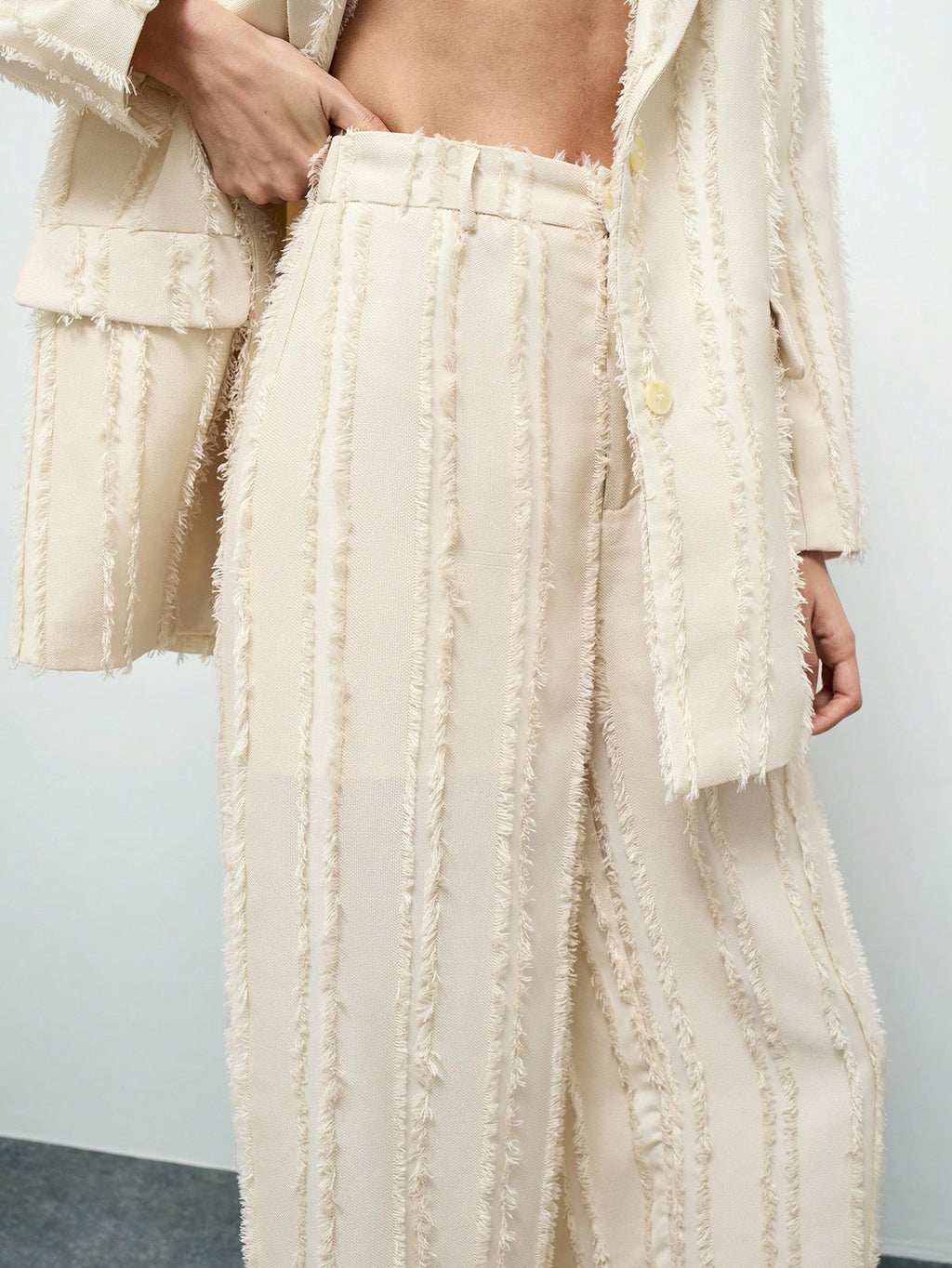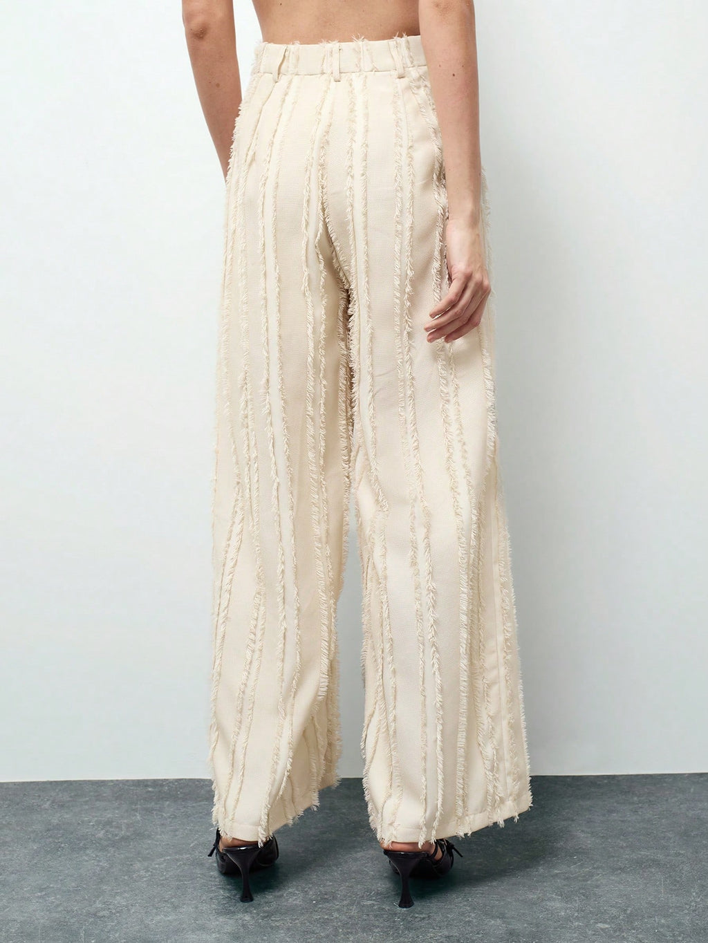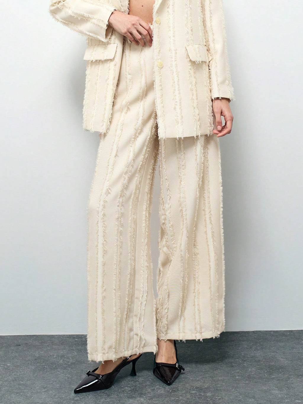 MIU Women's Elegant Solid Color Fringe Hem Minimalist Design Casual Long Pants, Suitable For Autumn/Winter