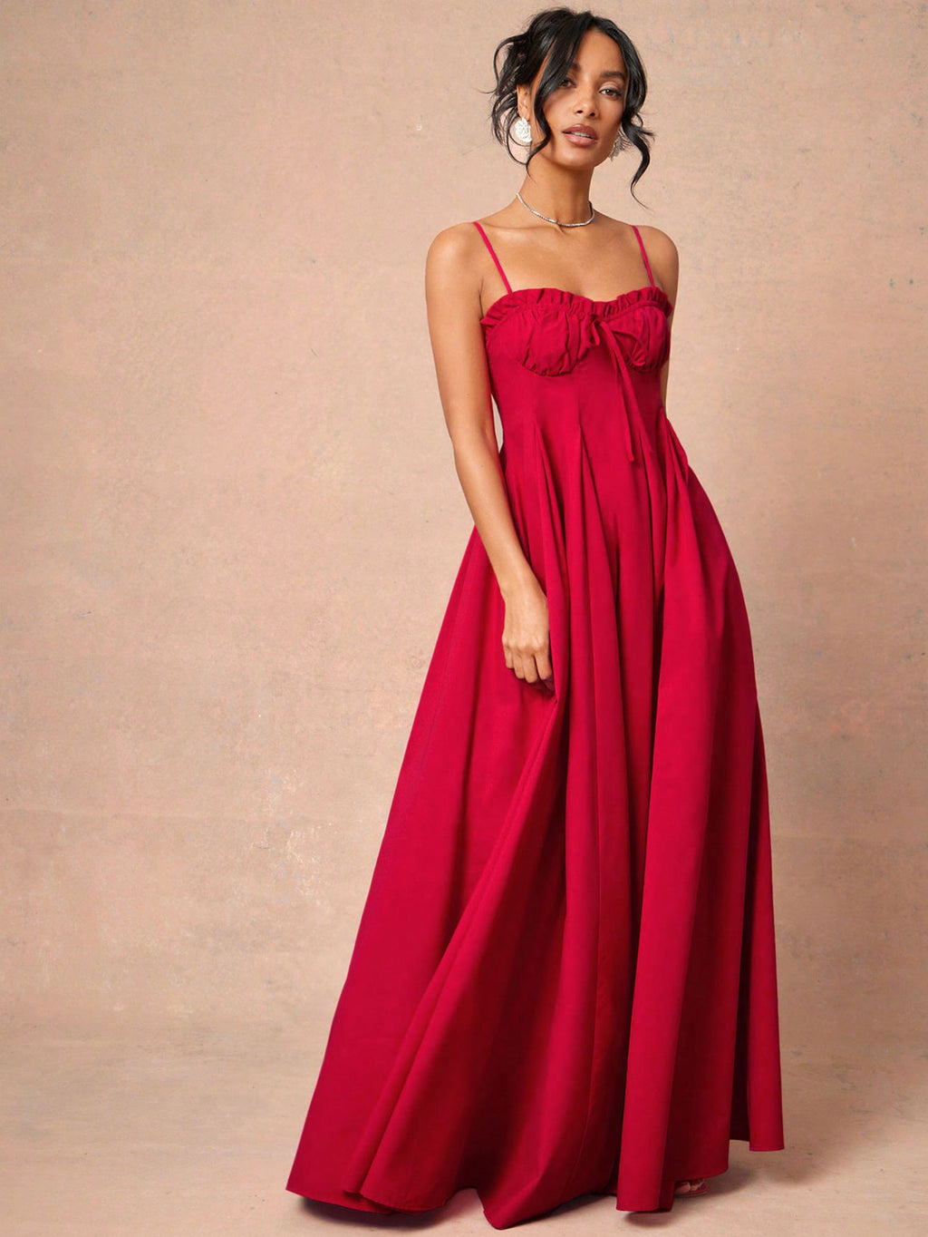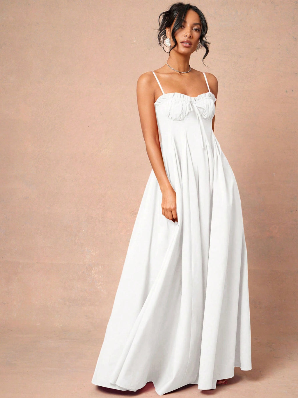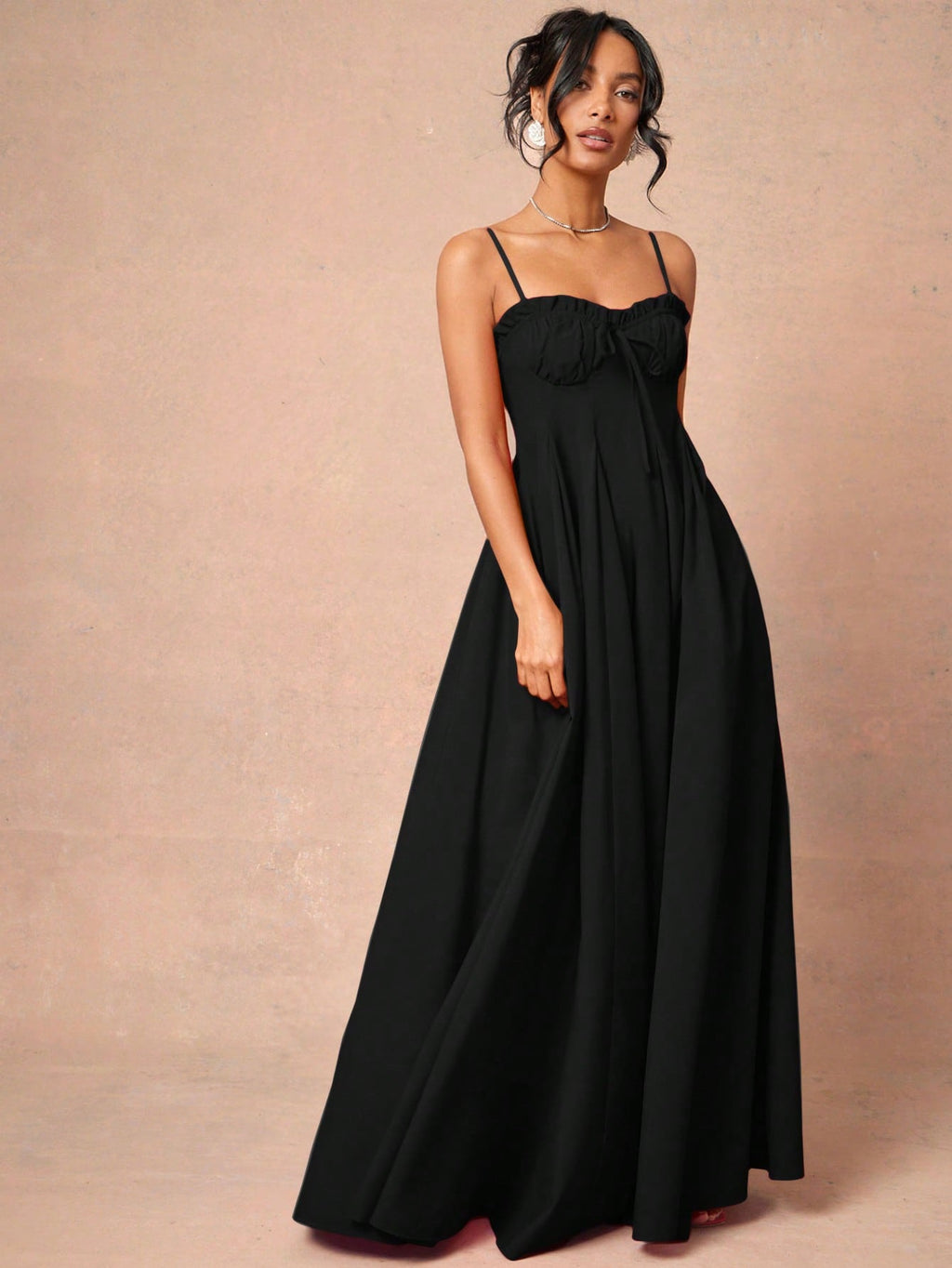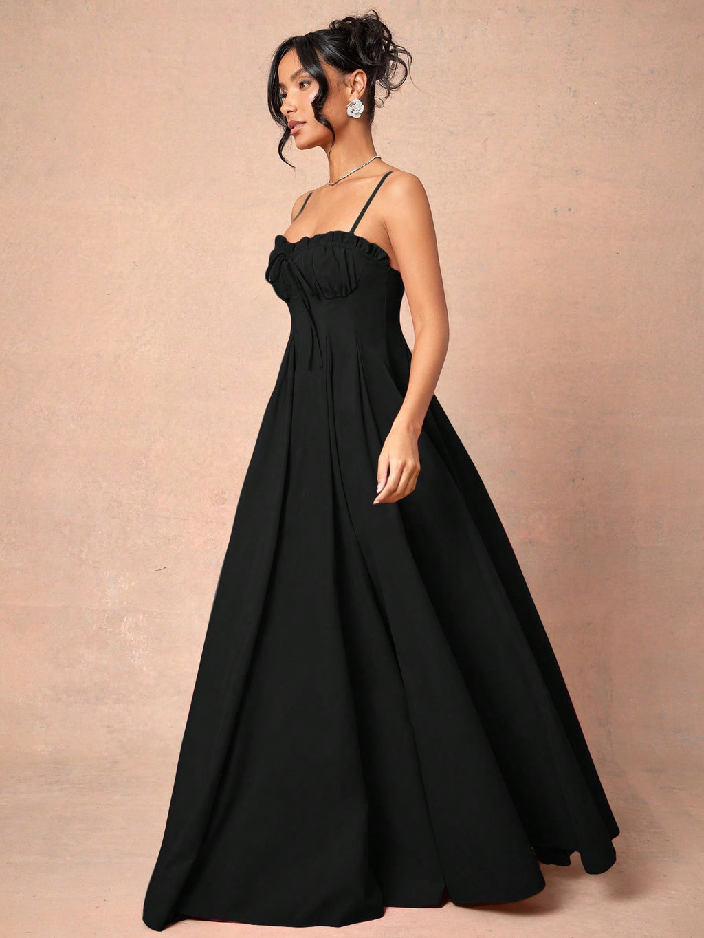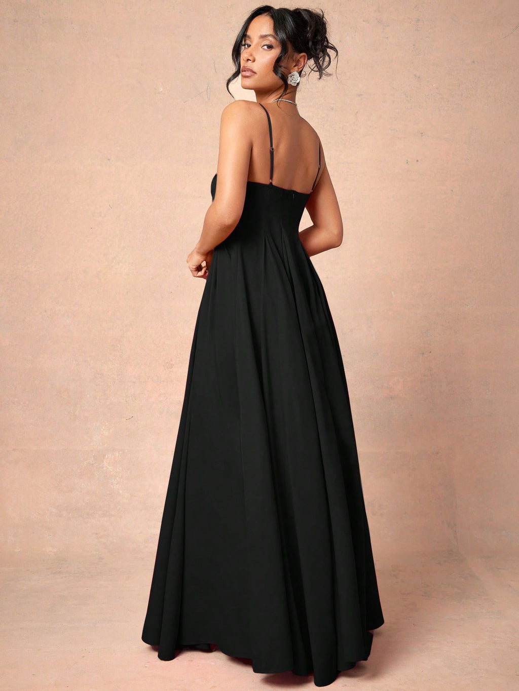 MIU Women's Elegant Solid Color Long Dress, Simple And Fashionable, Suitable For Summer