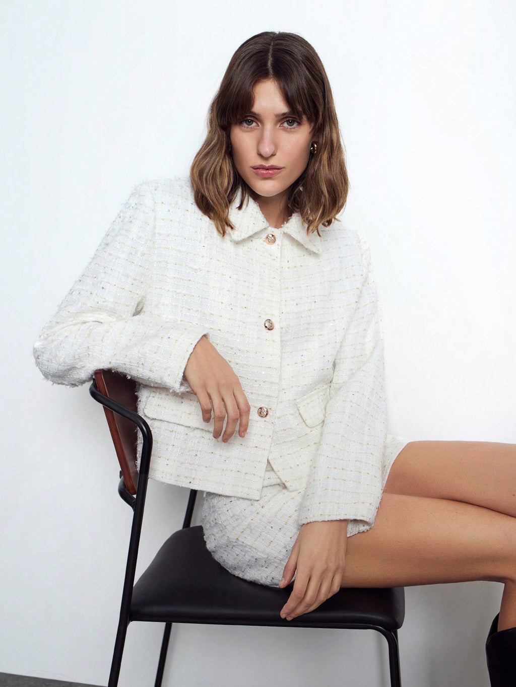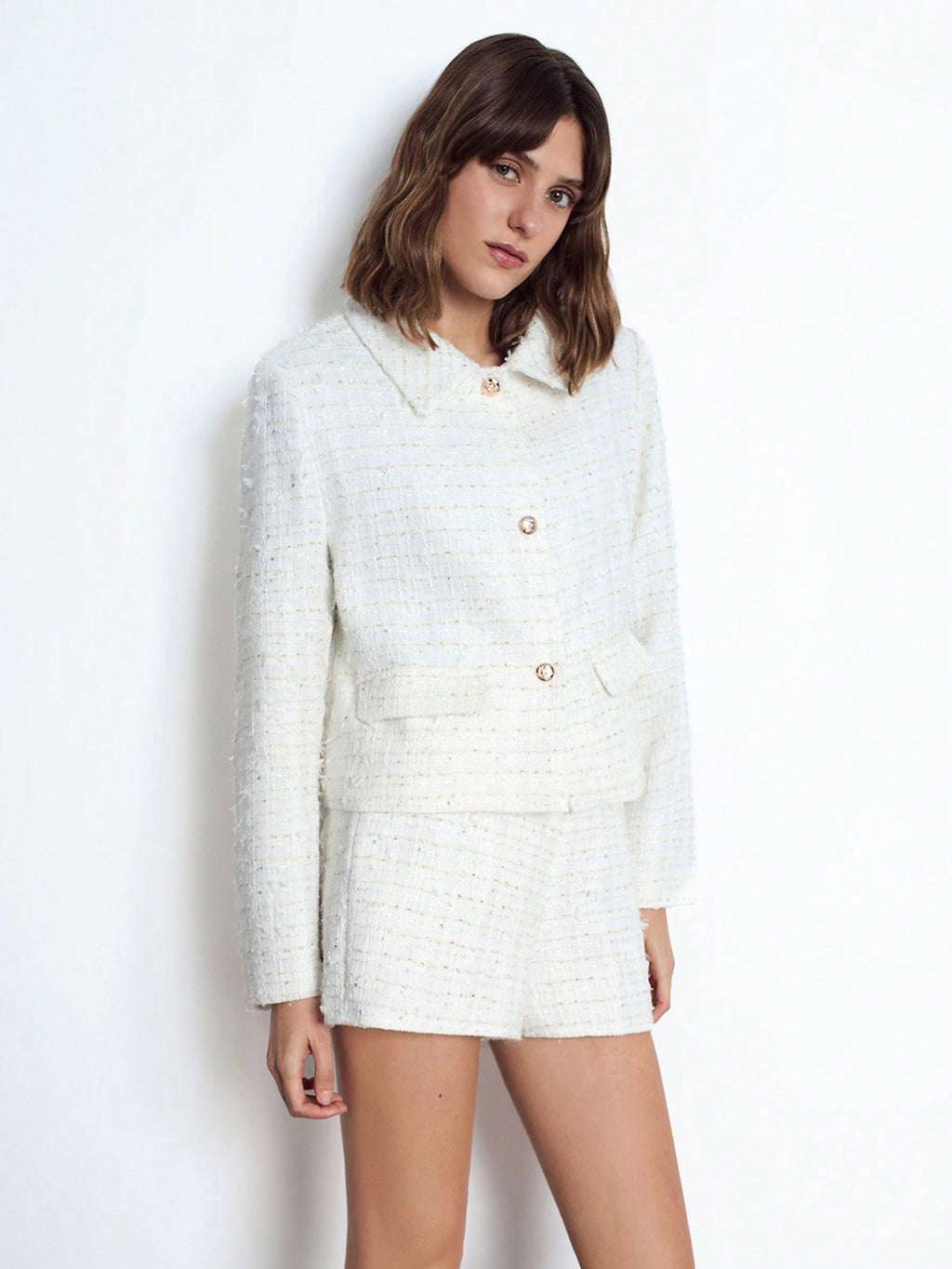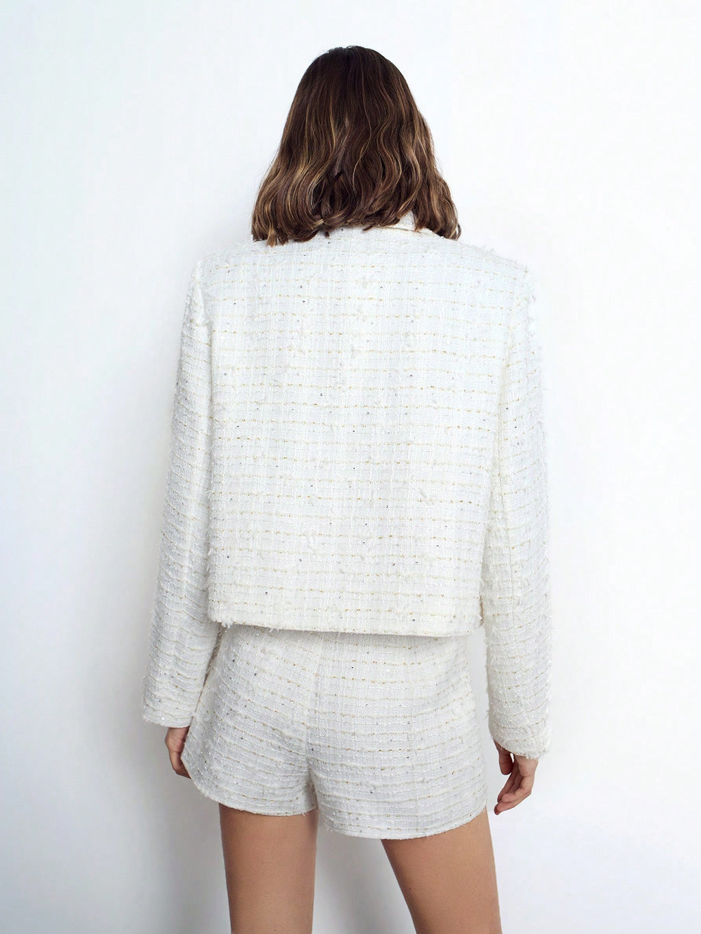MIU Women's Elegant Spring White Thick Felt-Like Fabric Elastic Waist Commuter Stylish Versatile Shorts Set