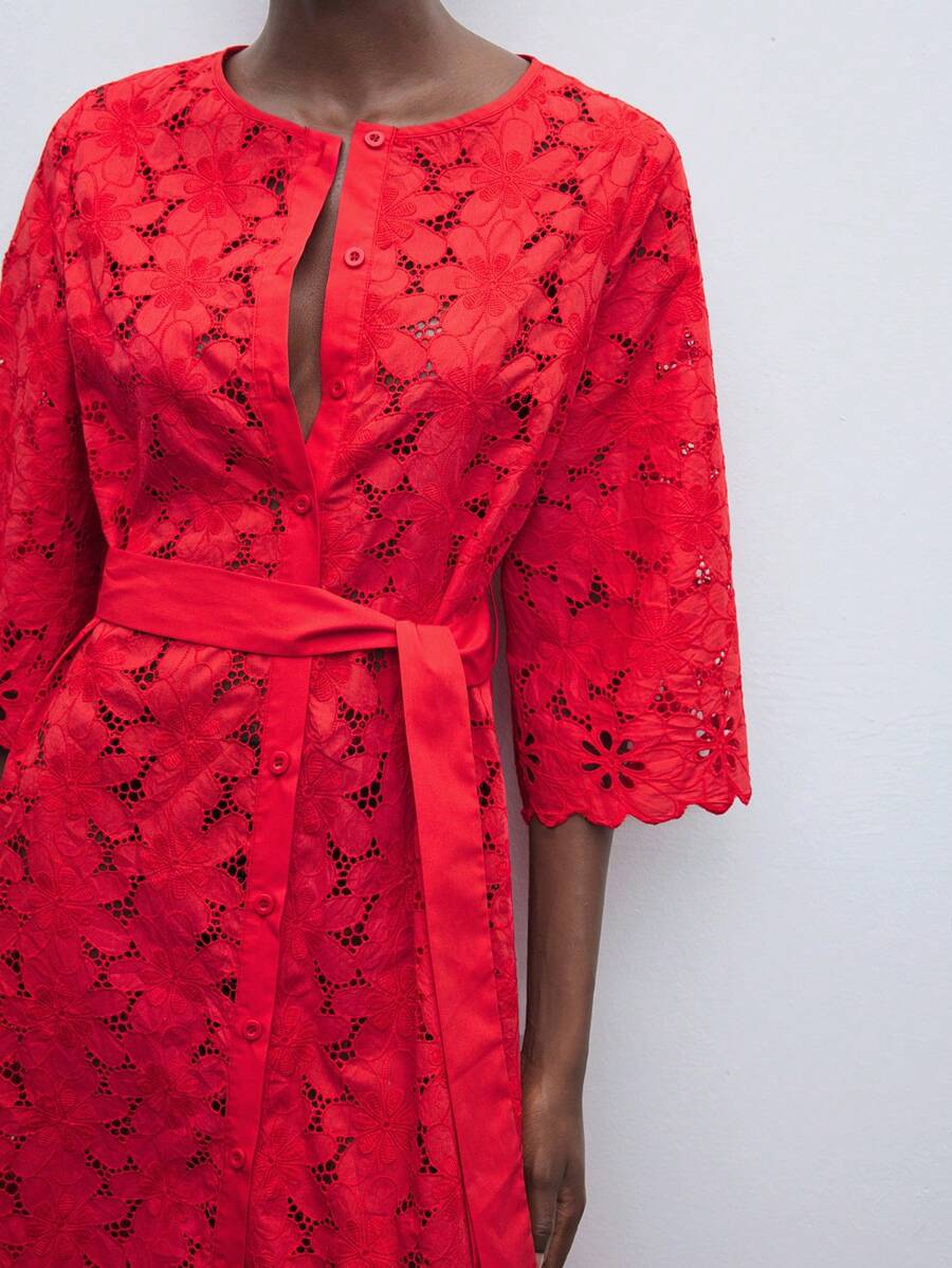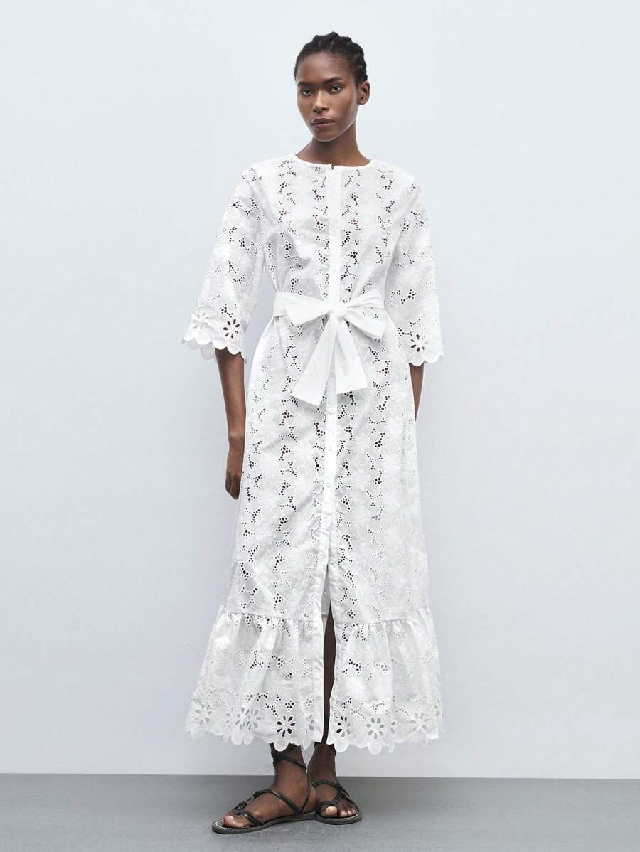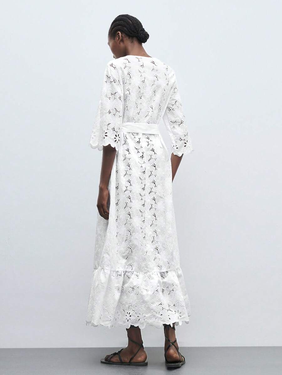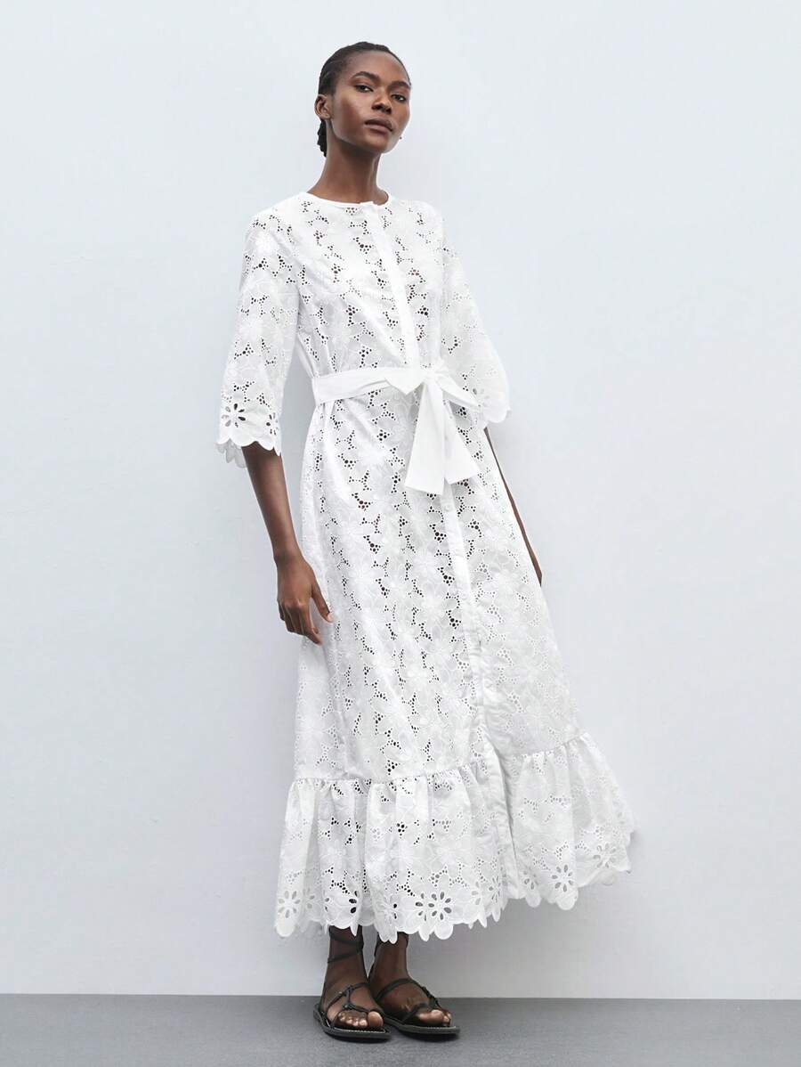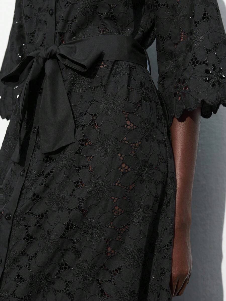 MIU Women's Embroidery Hollow Out Waist Tie Long Sleeve Dress, Loose Summer Vacation Dress, Casual Style