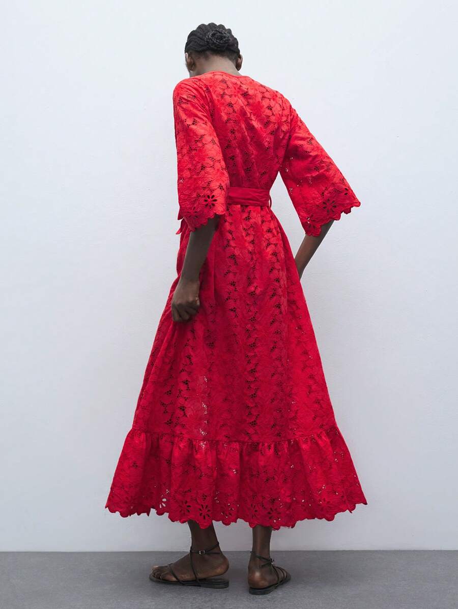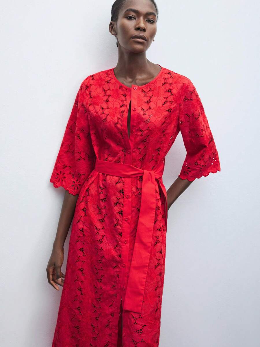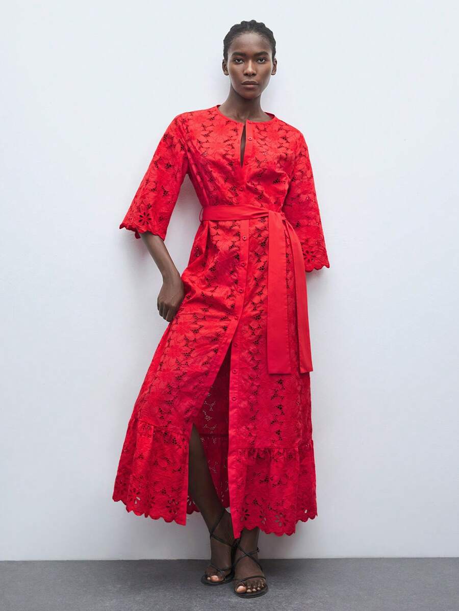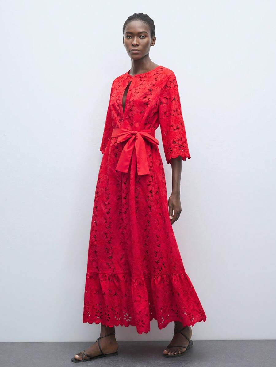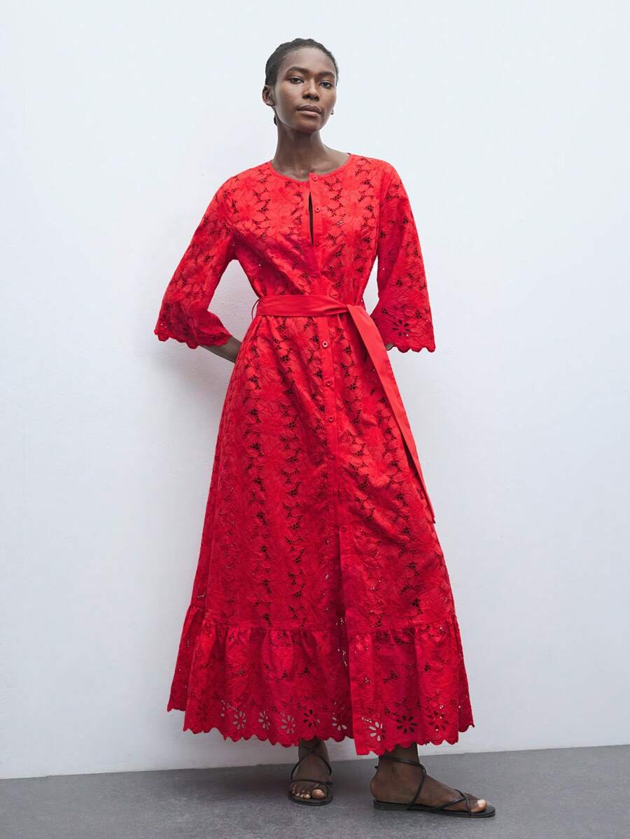 MIU Women's Embroidery Hollow Out Waist Tie Long Sleeve Dress, Loose Summer Vacation Dress, Casual Style