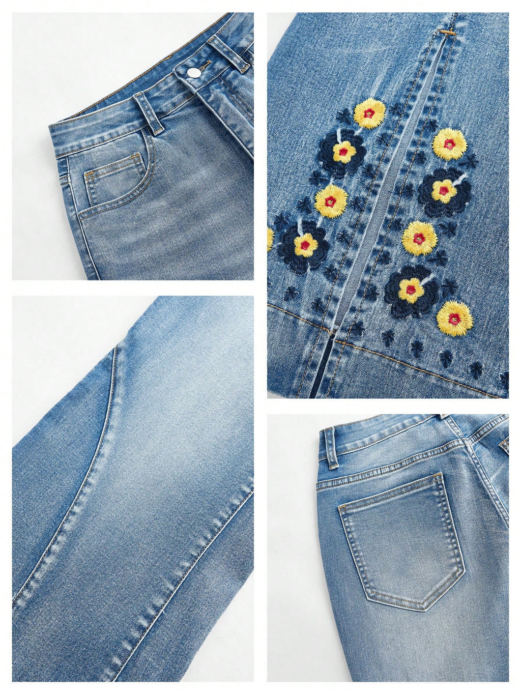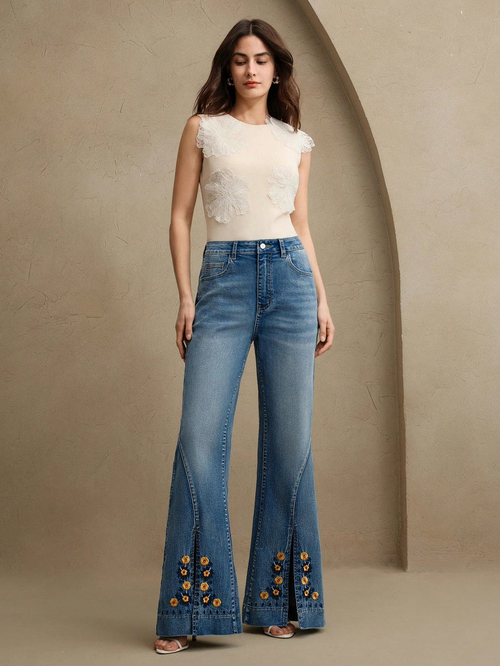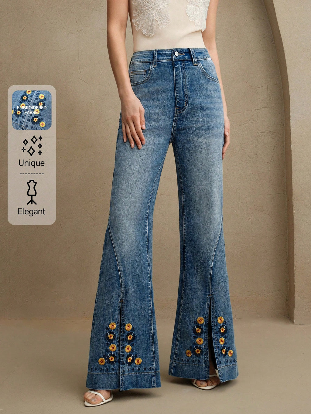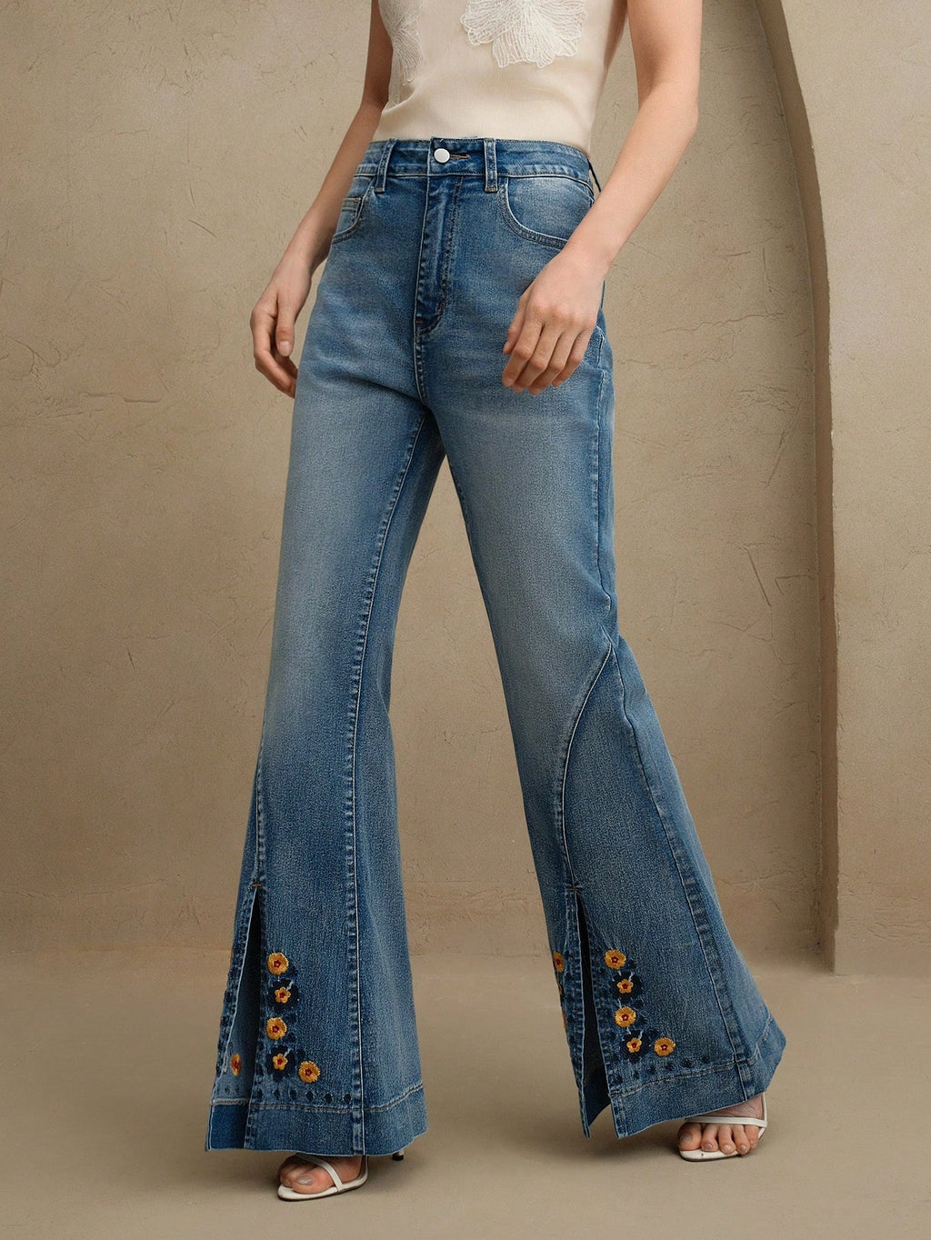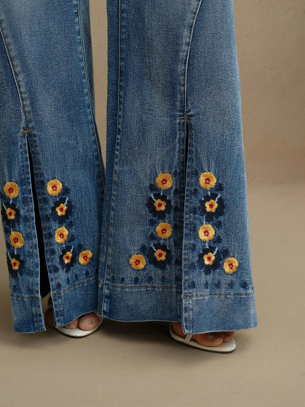 MIU Women's Fashion Embroidered Floral Flared Jeans