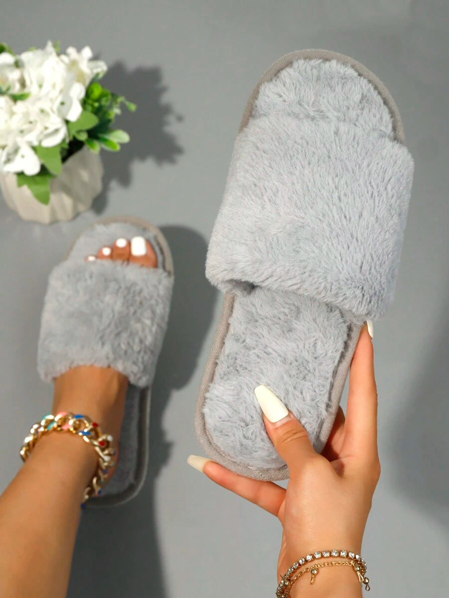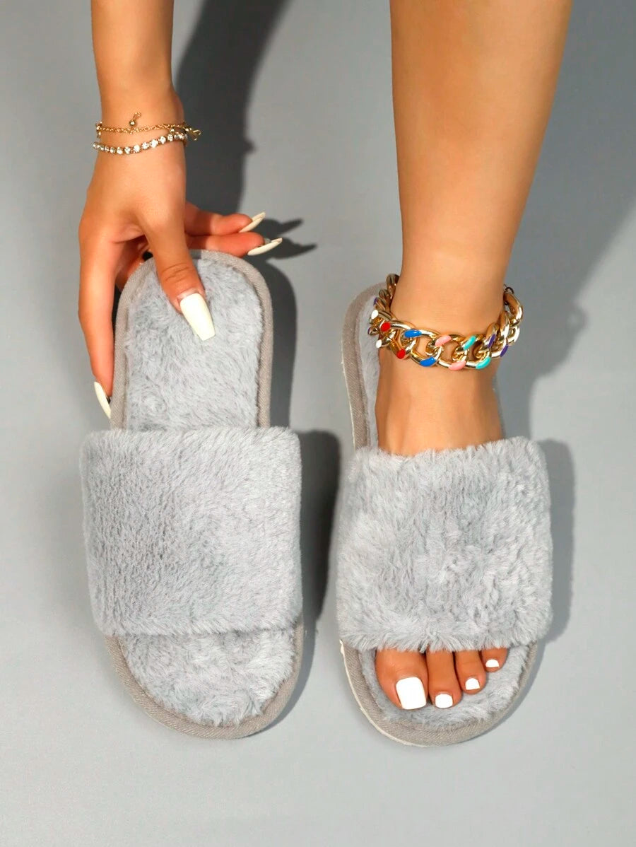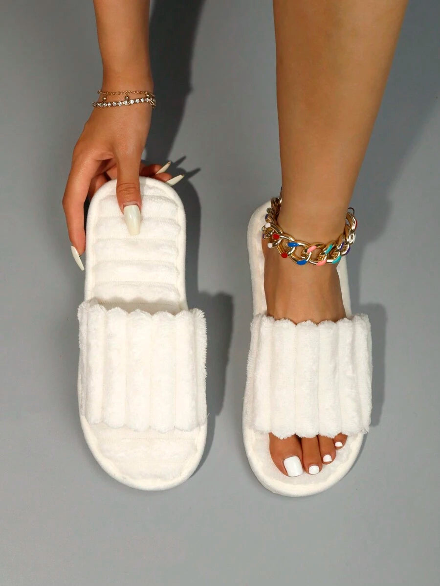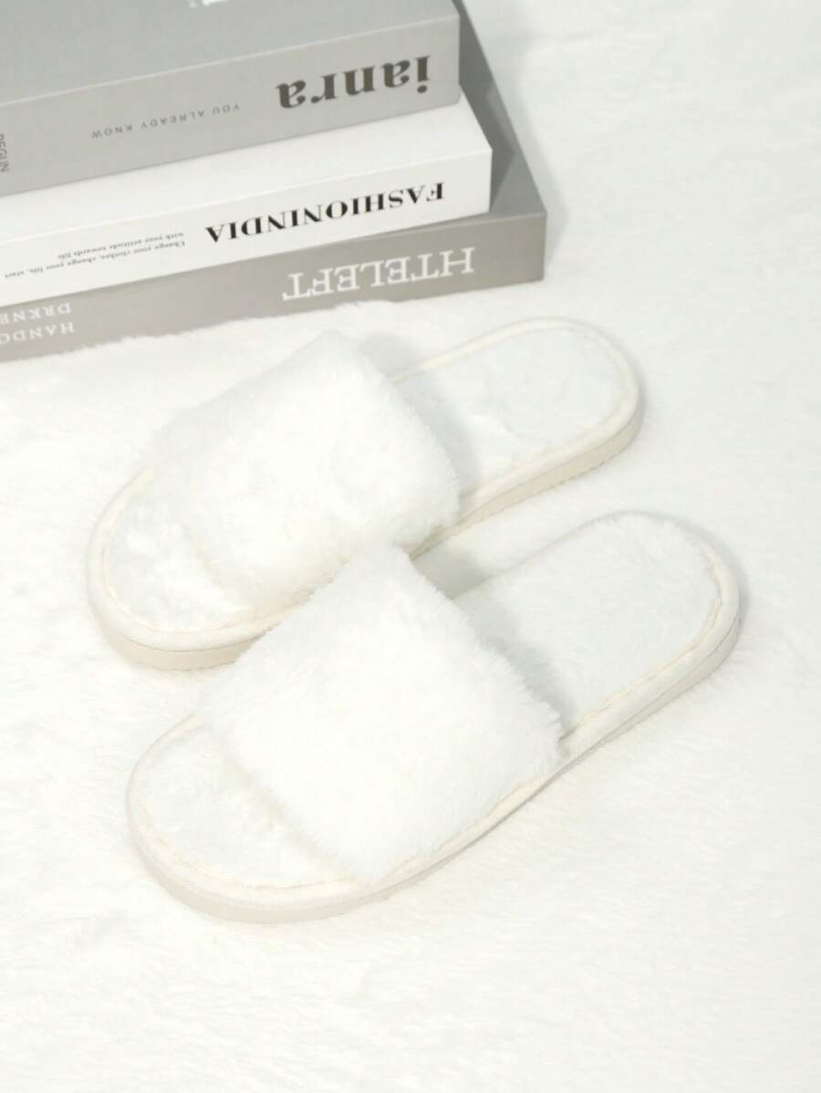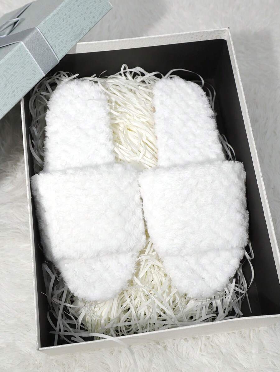 MIU Women's Fashion White Plush Fluffy Slippers, Bridesmaid Slippers, Winter Indoor Floor Lightweight Home Slippers