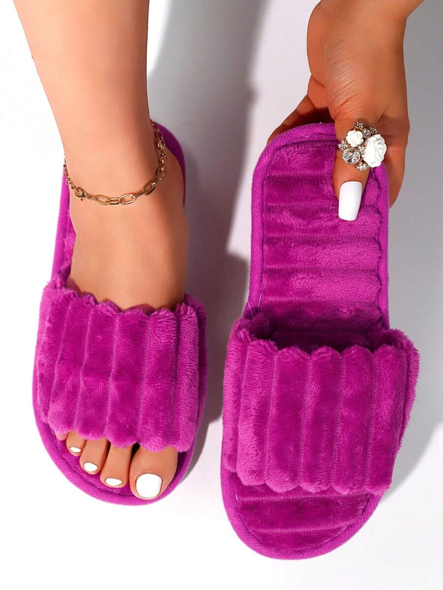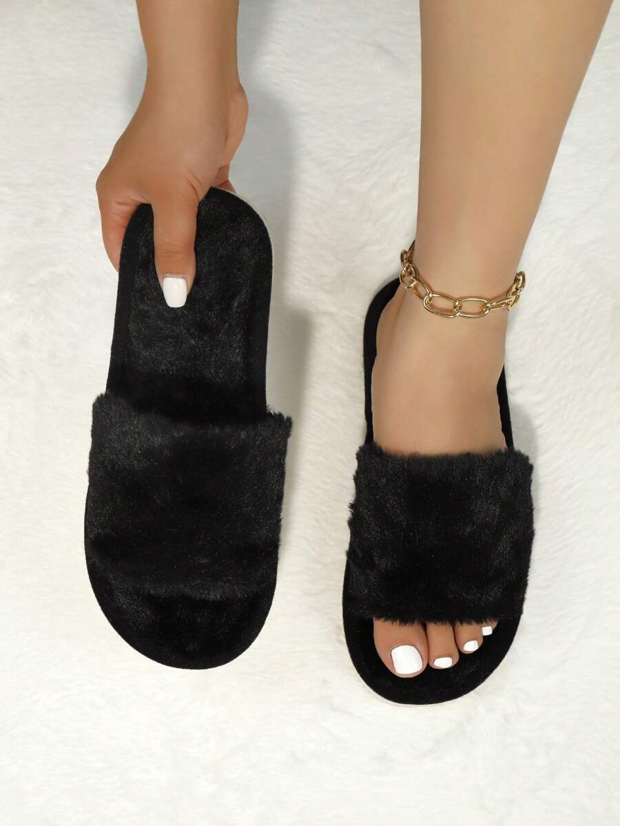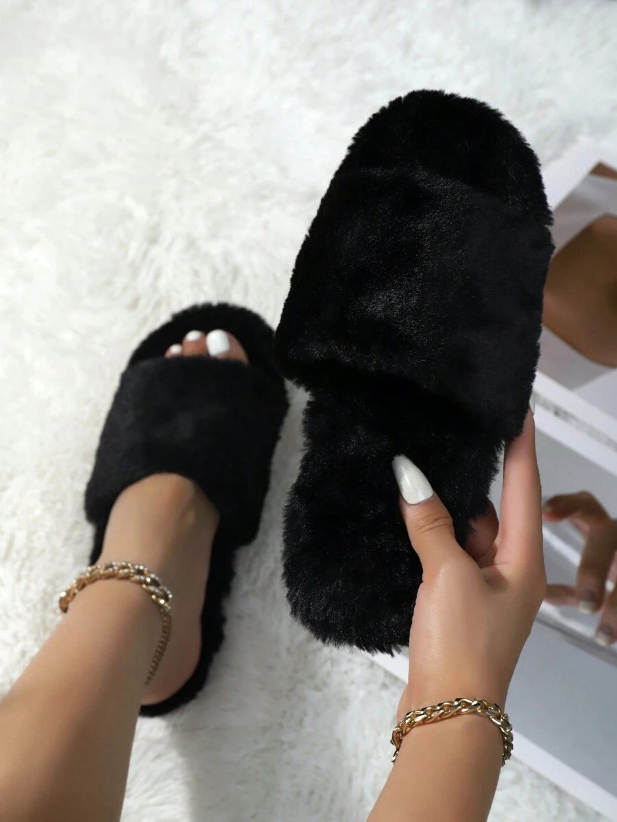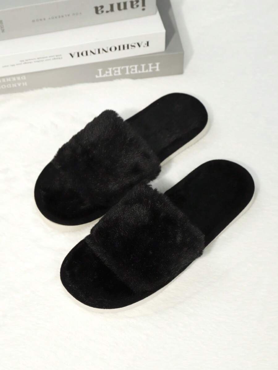 MIU Women's Fashion White Plush Fluffy Slippers, Bridesmaid Slippers, Winter Indoor Floor Lightweight Home Slippers