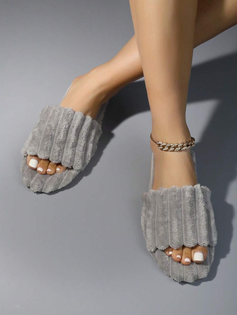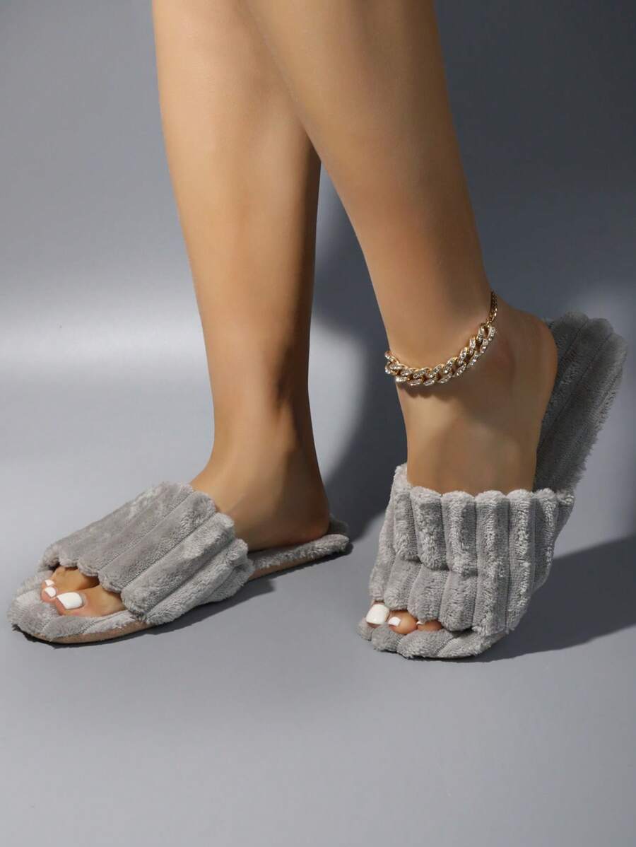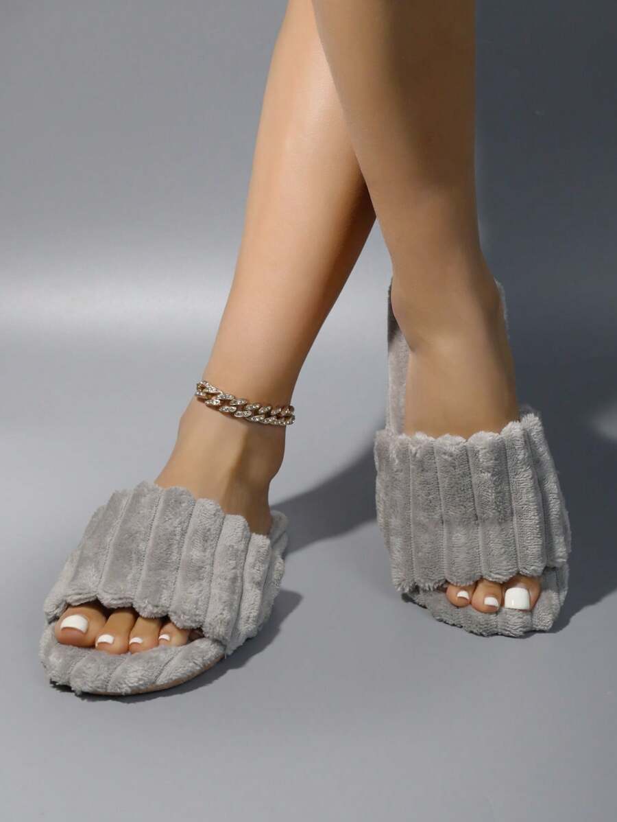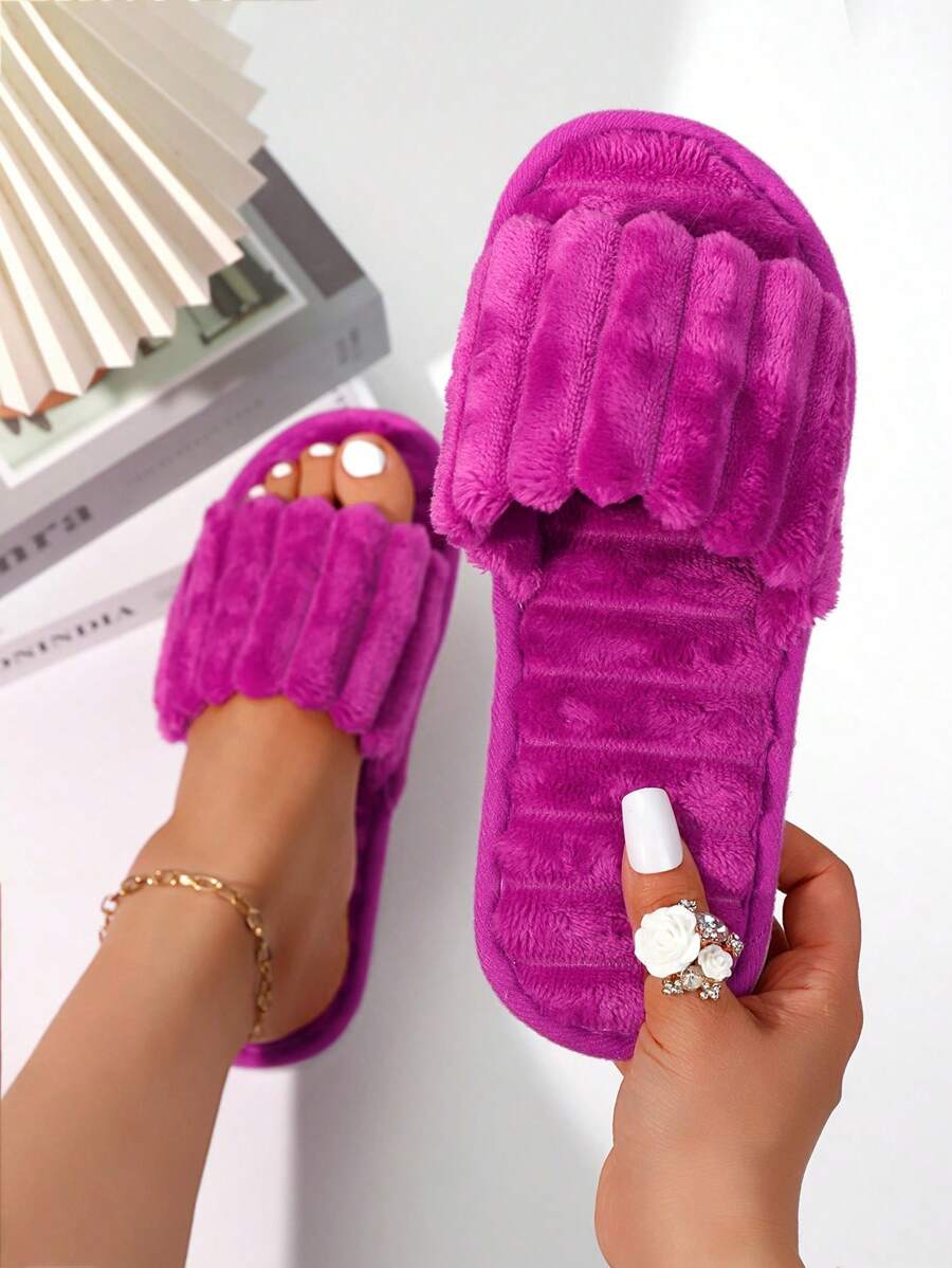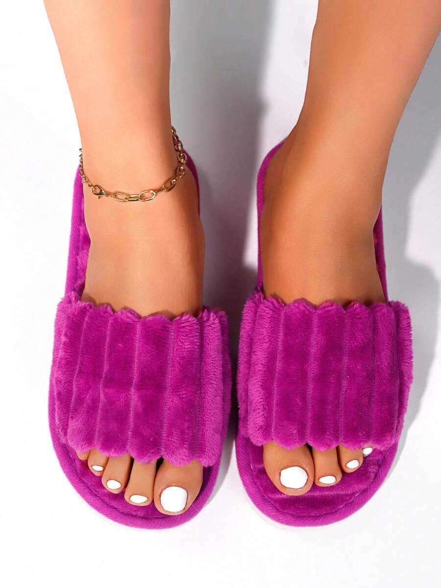 MIU Women's Fashion White Plush Fluffy Slippers, Bridesmaid Slippers, Winter Indoor Floor Lightweight Home Slippers