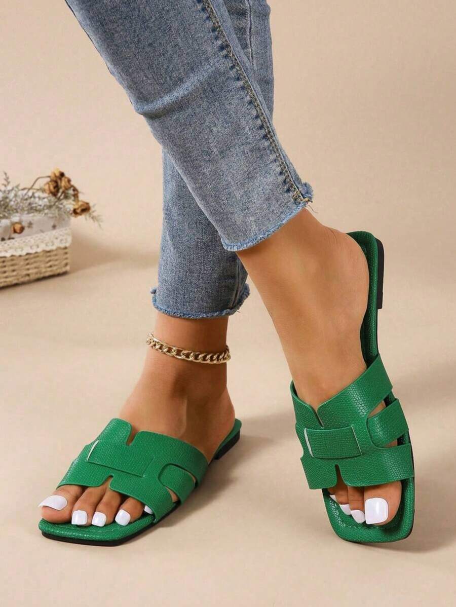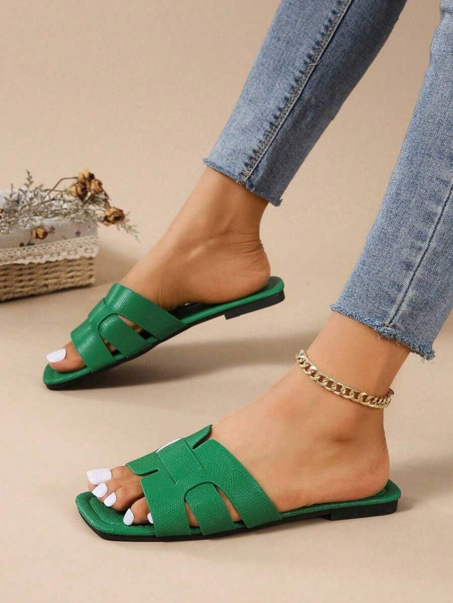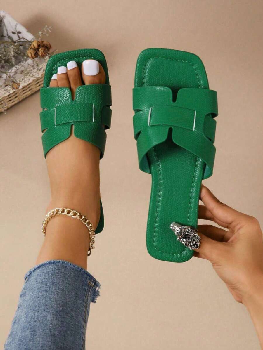 MIU Women's Flat Open Toe Slip On Slippers, Fashion Square Toe Casual Sandals, Solid Color, Spring And Summer New Style Versatile