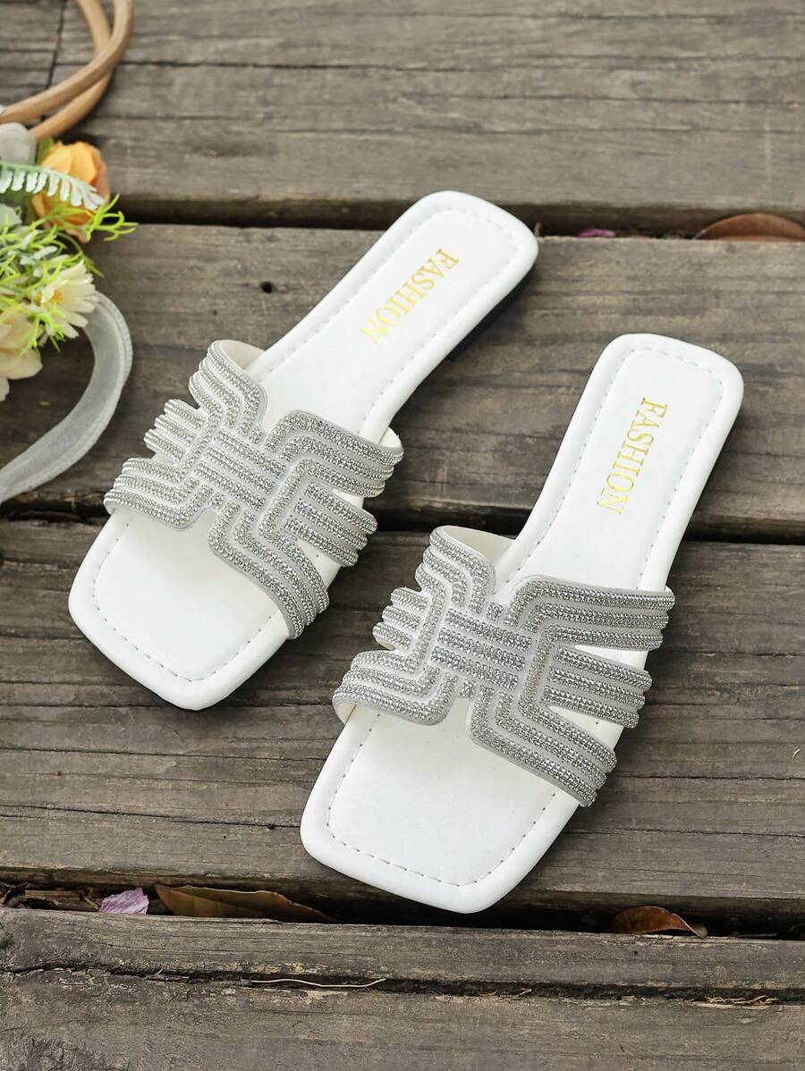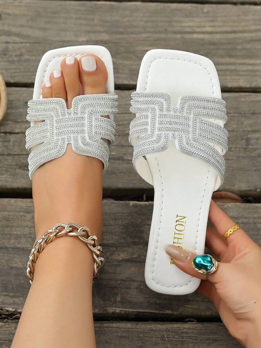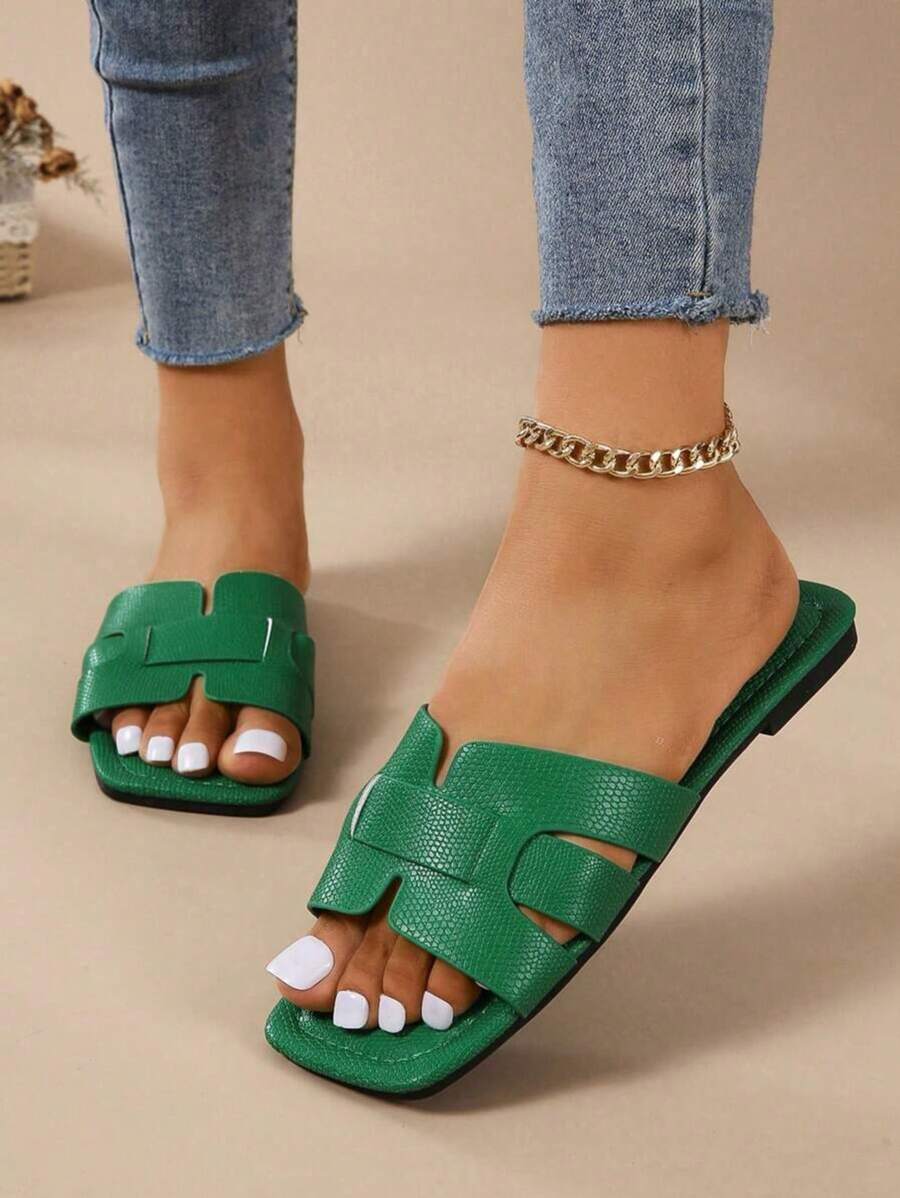 MIU Women's Flat Open Toe Slip On Slippers, Fashion Square Toe Casual Sandals, Solid Color, Spring And Summer New Style Versatile