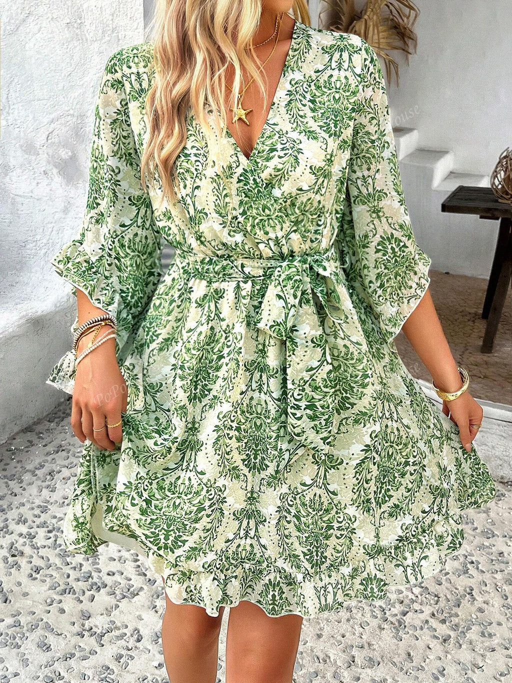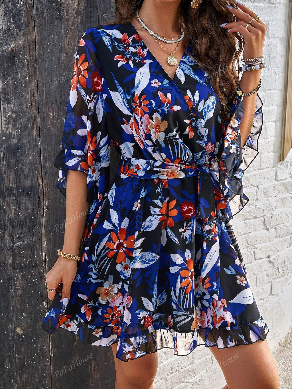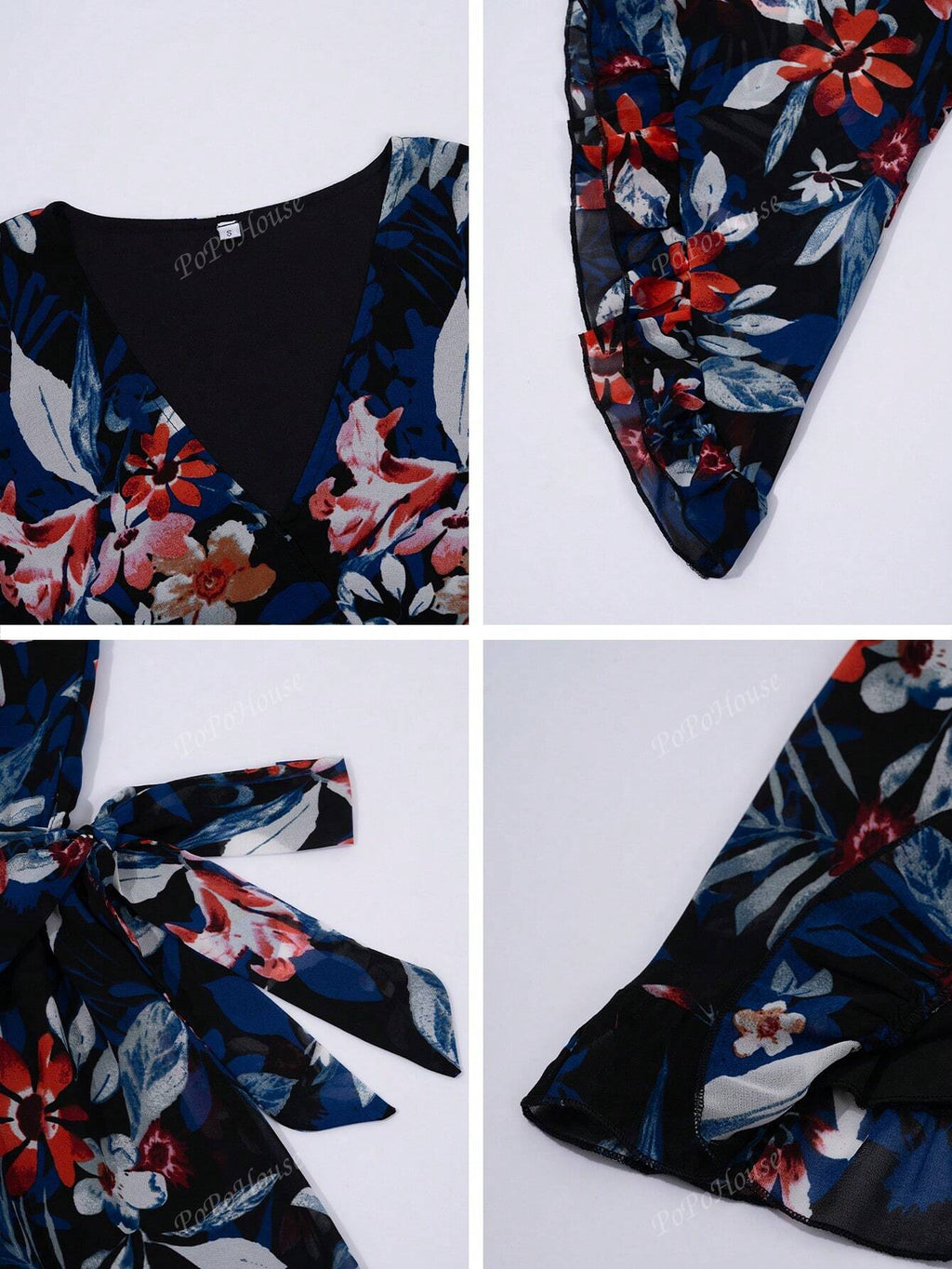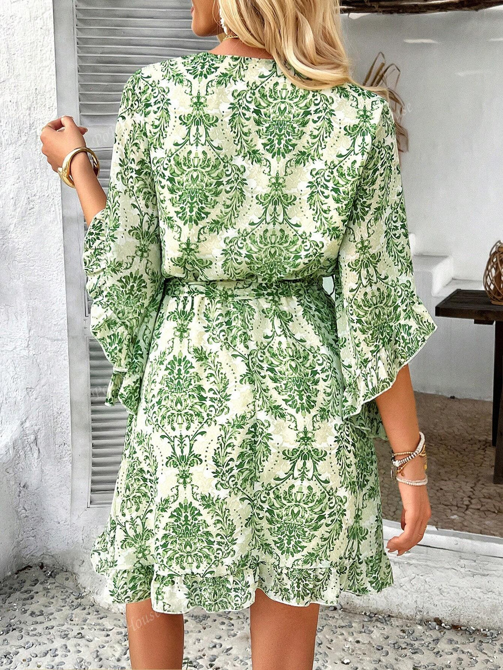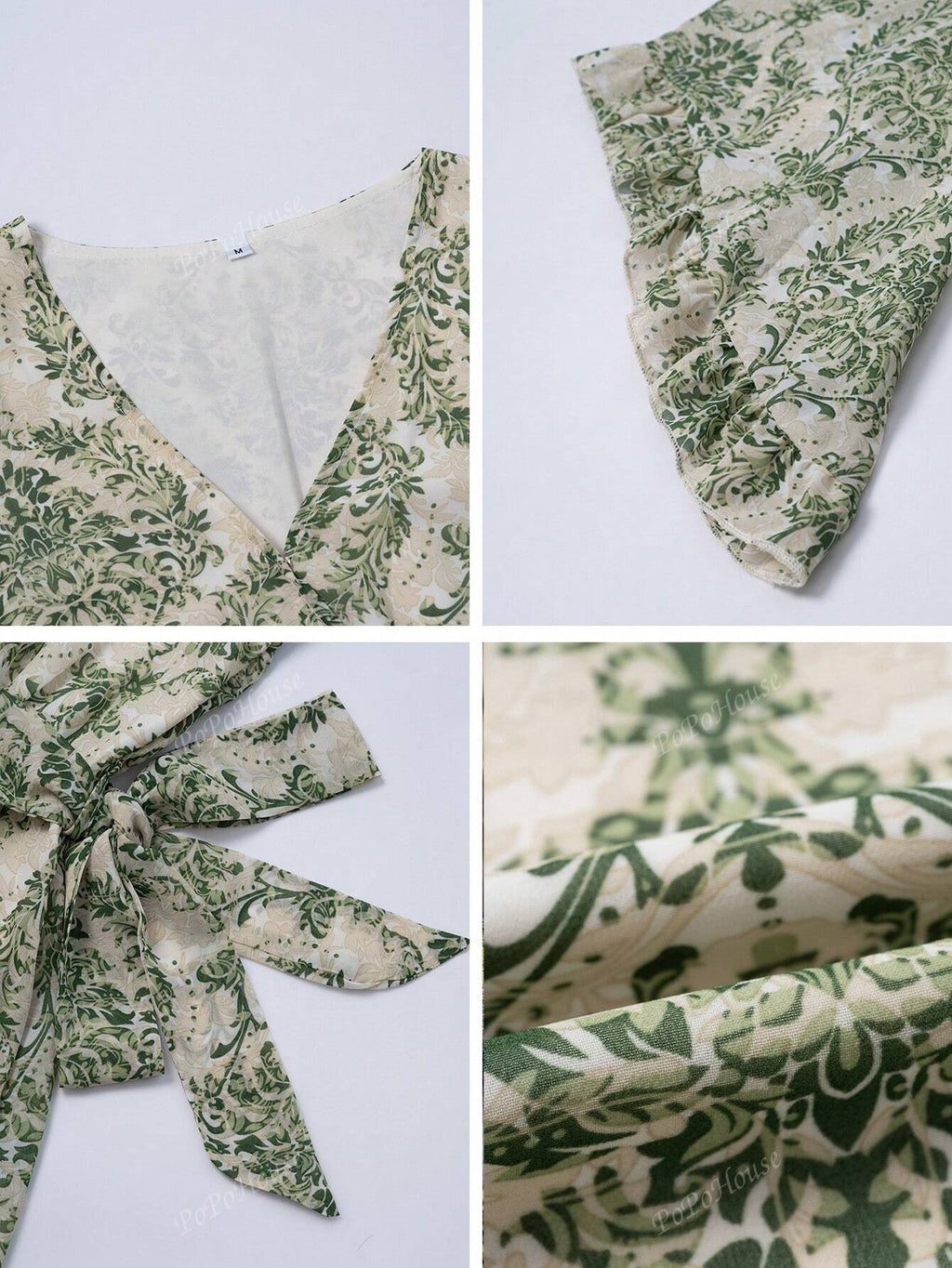 MIU Women's Floral Print Ruffled Flared Sleeve Tie-Waist Dress.