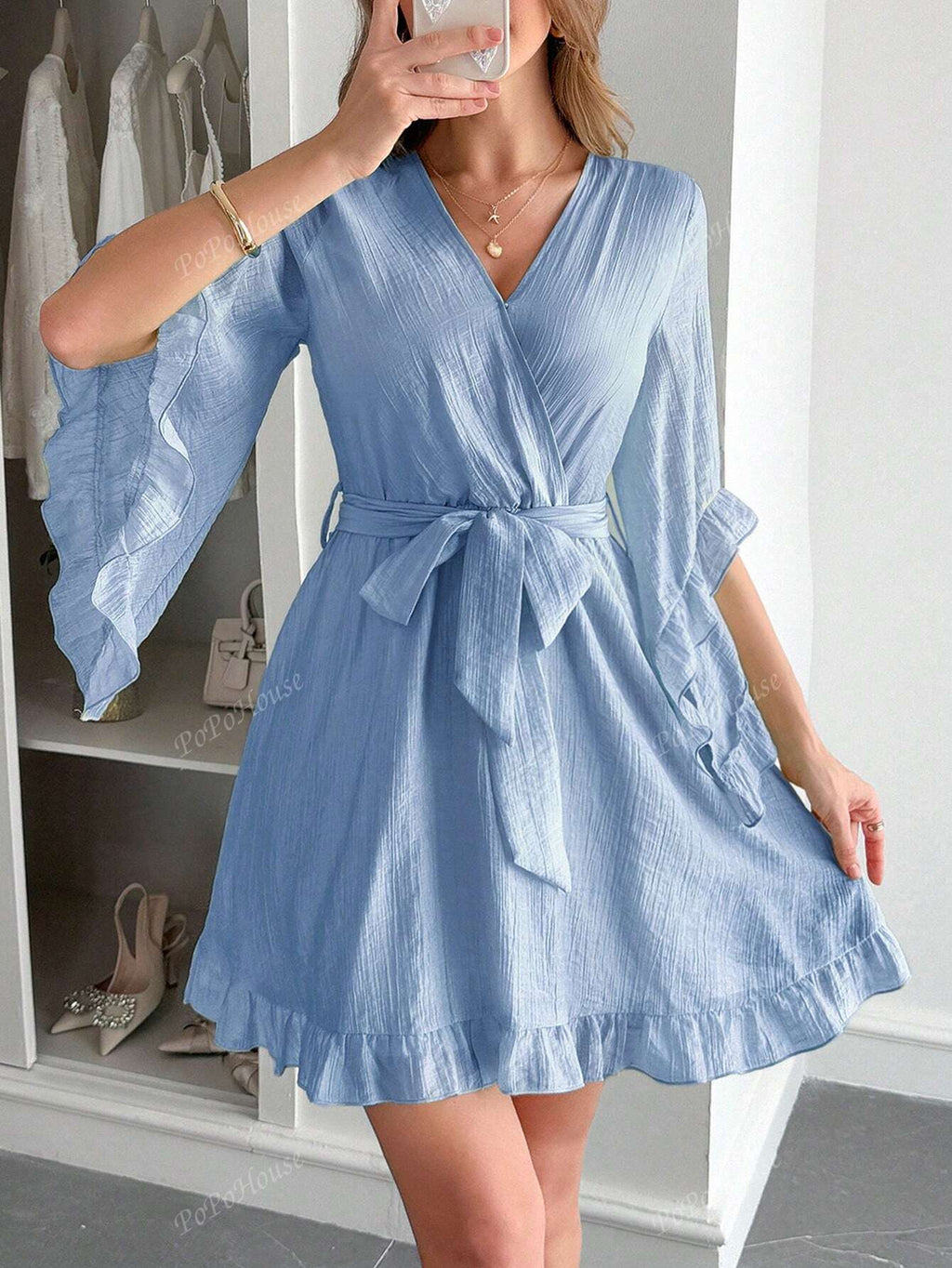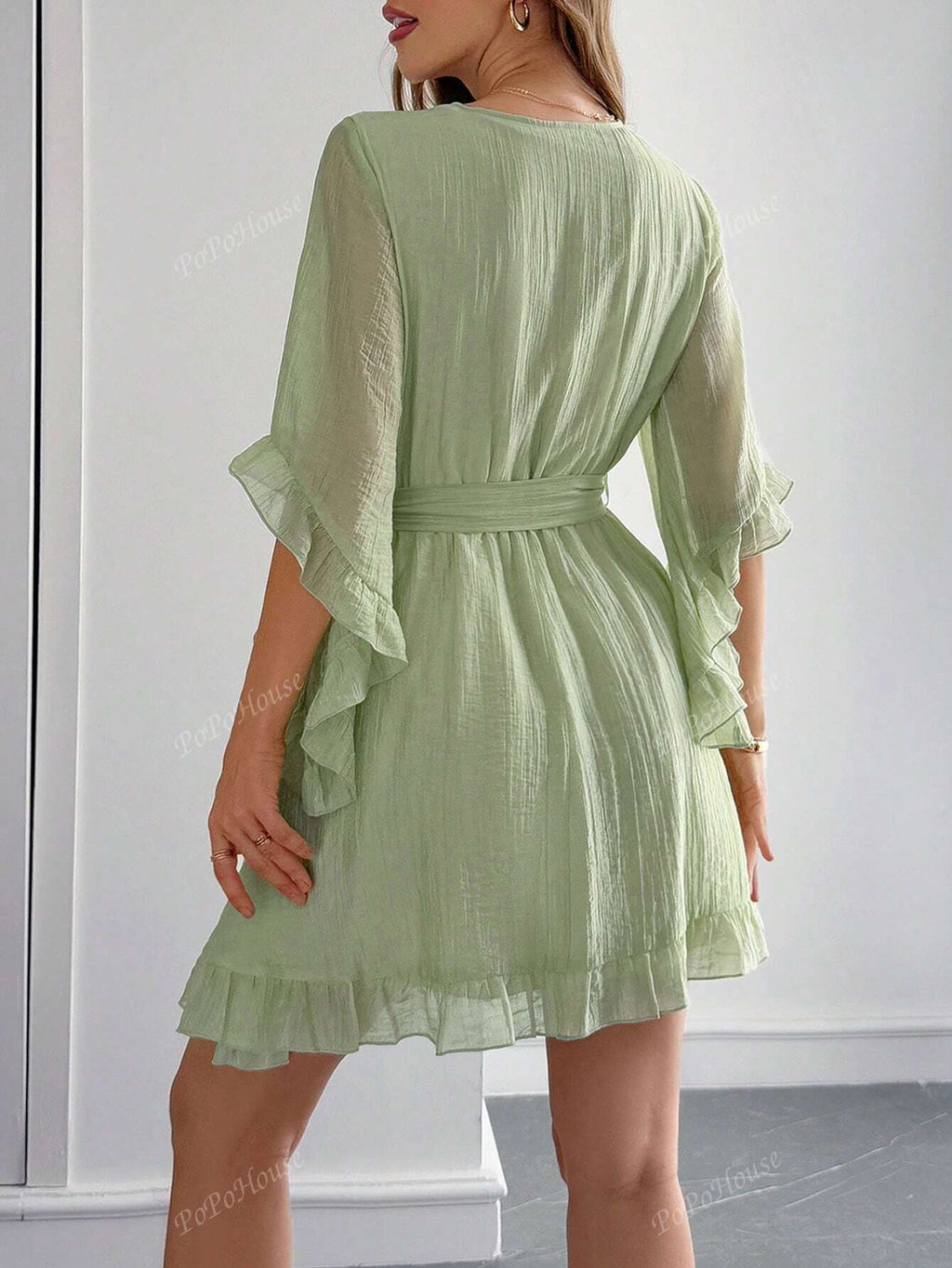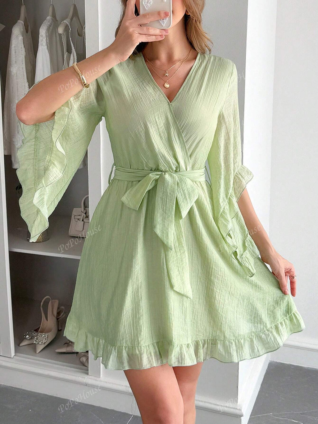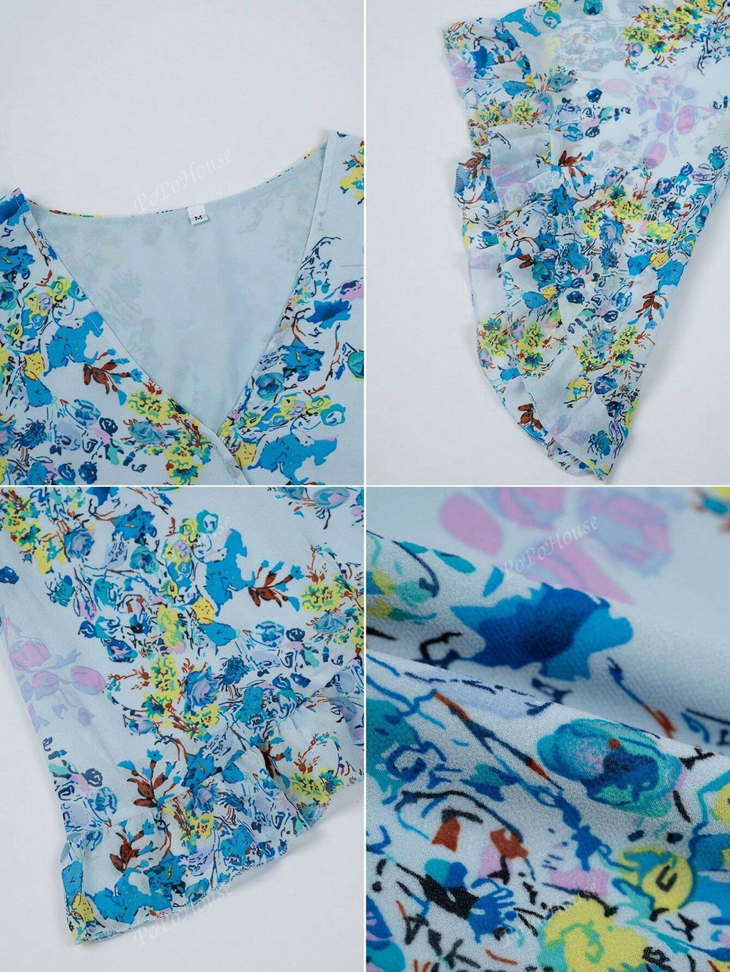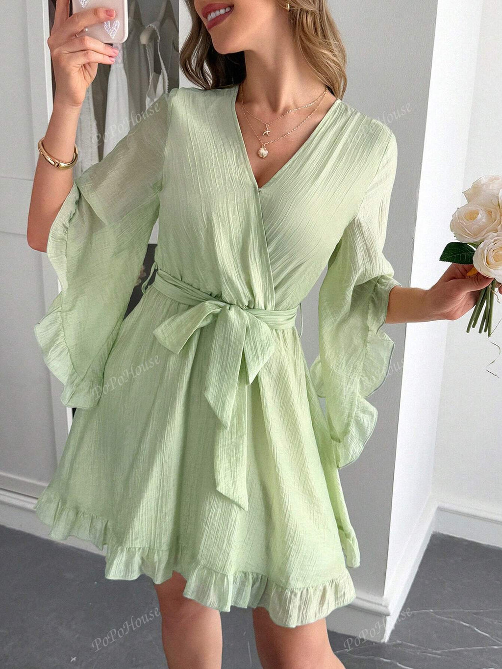 MIU Women's Floral Print Ruffled Flared Sleeve Tie-Waist Dress.