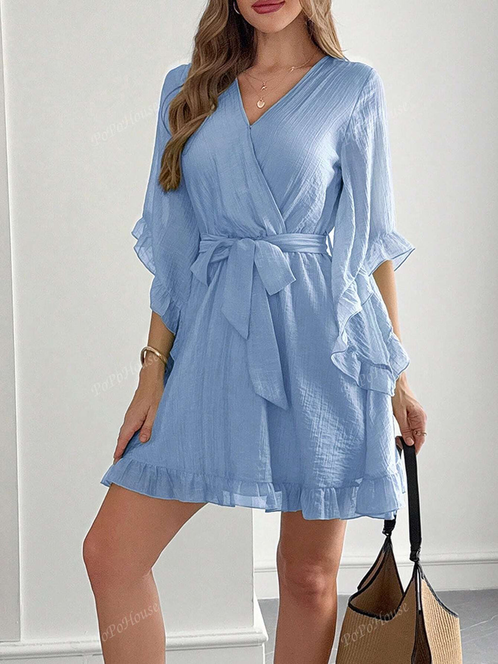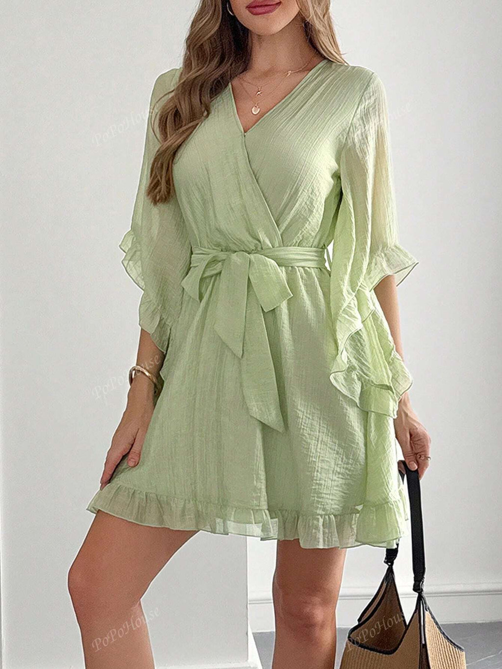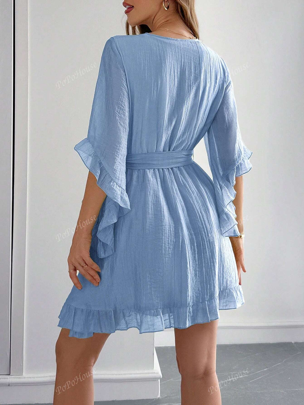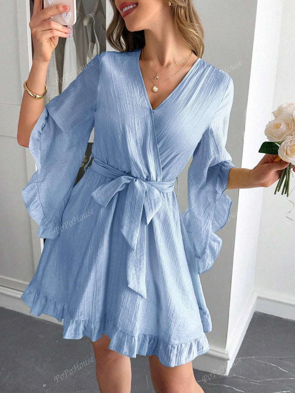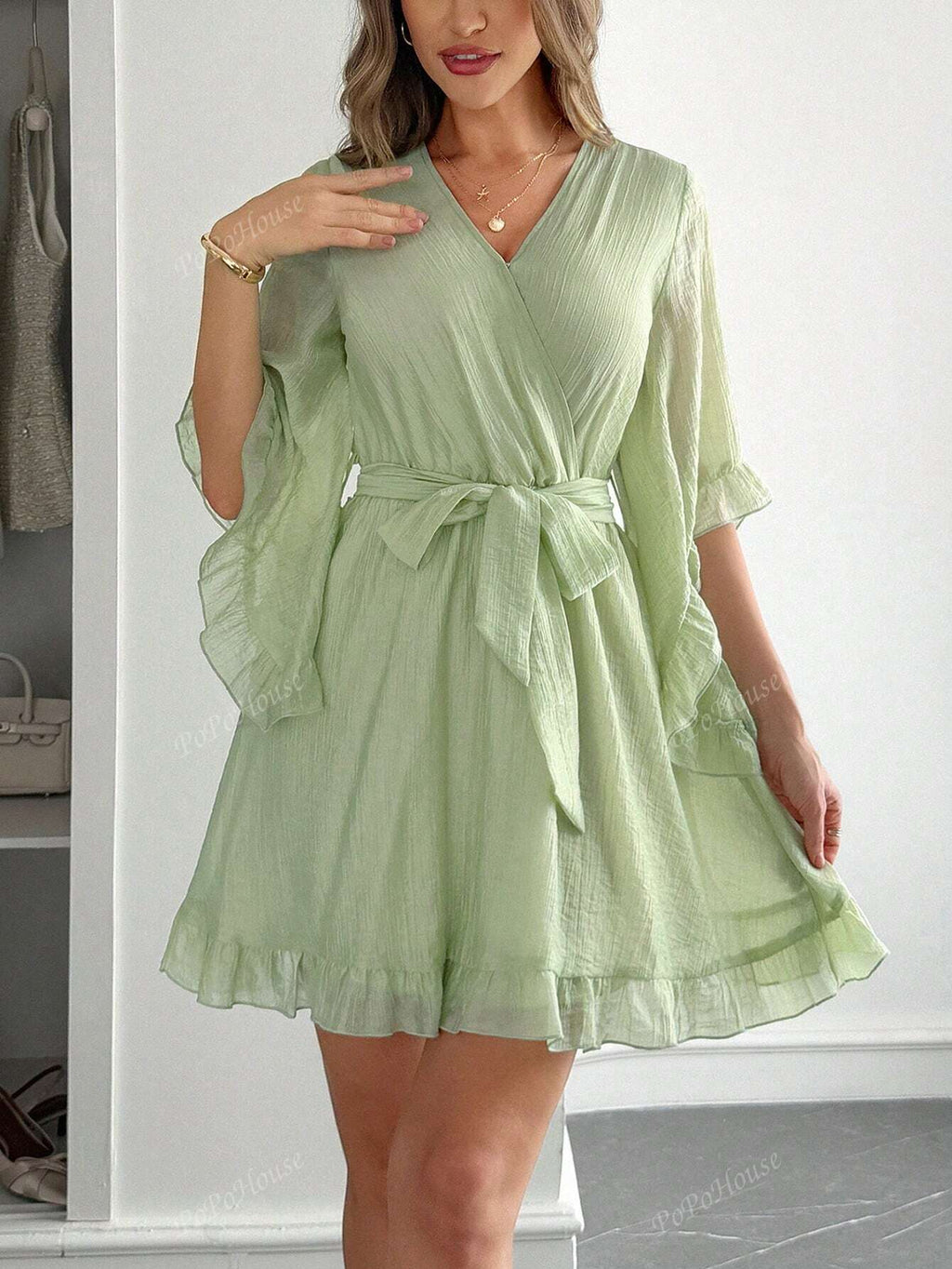 MIU Women's Floral Print Ruffled Flared Sleeve Tie-Waist Dress.