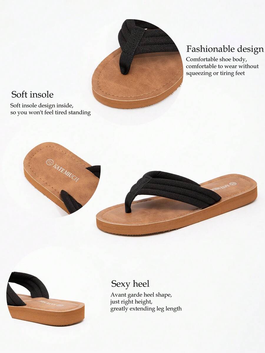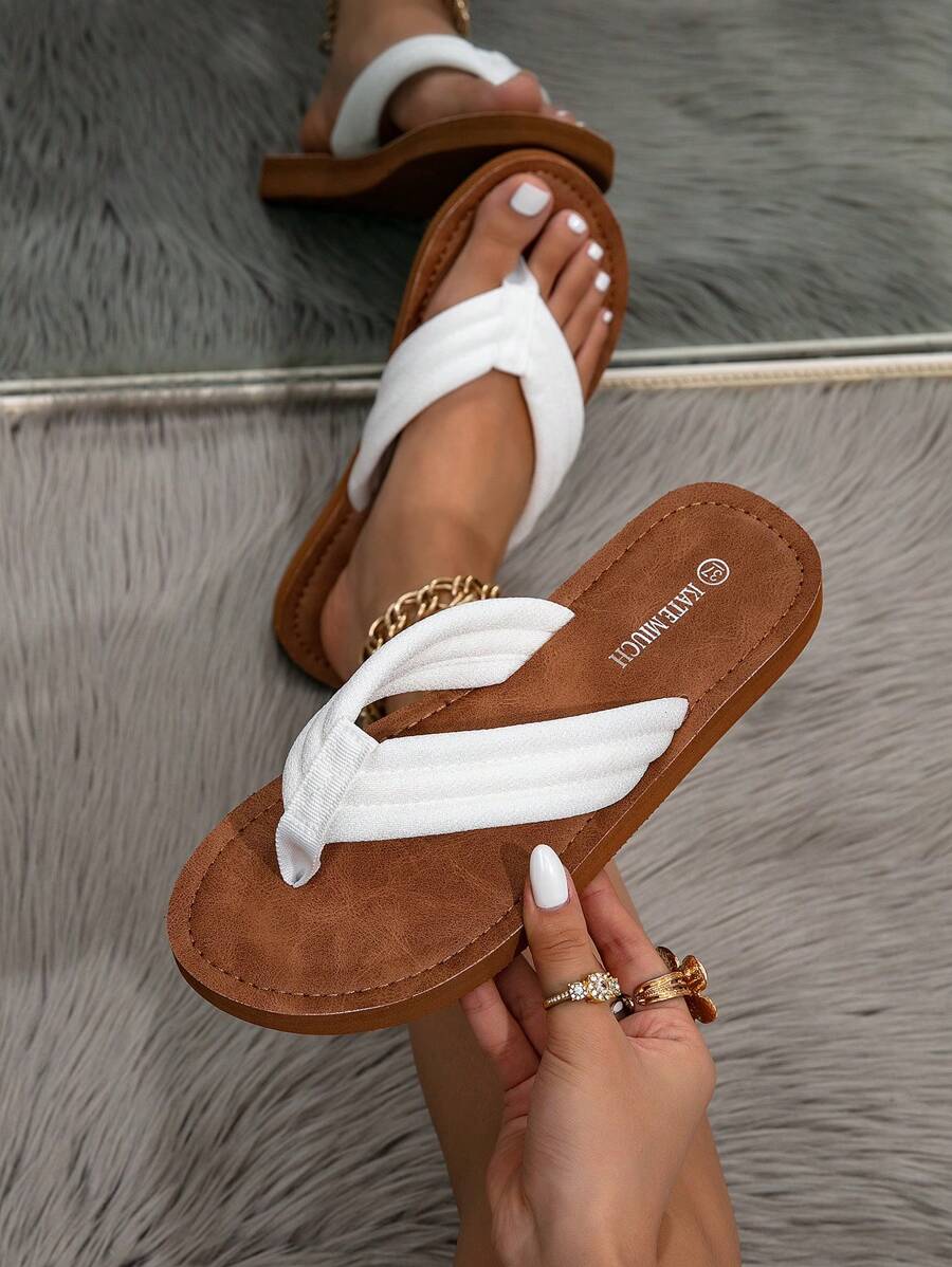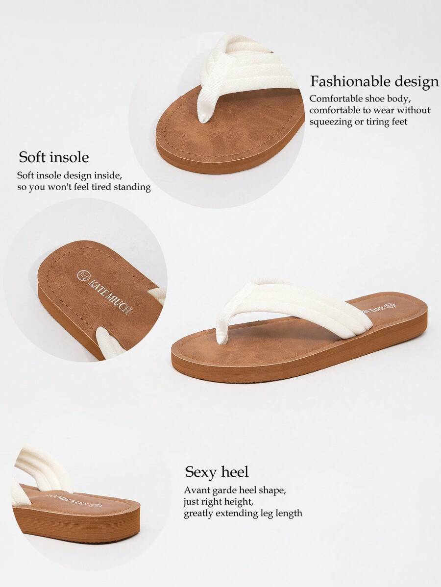 MIU Women's Four Seasons In Europe And The United States Simple Leisure Fashion Summer Outside Wear Open-Toe Sandals White Brown Ladies Flat Bottom Clip Toes Flip-Flops, Student Indoor Slippers,