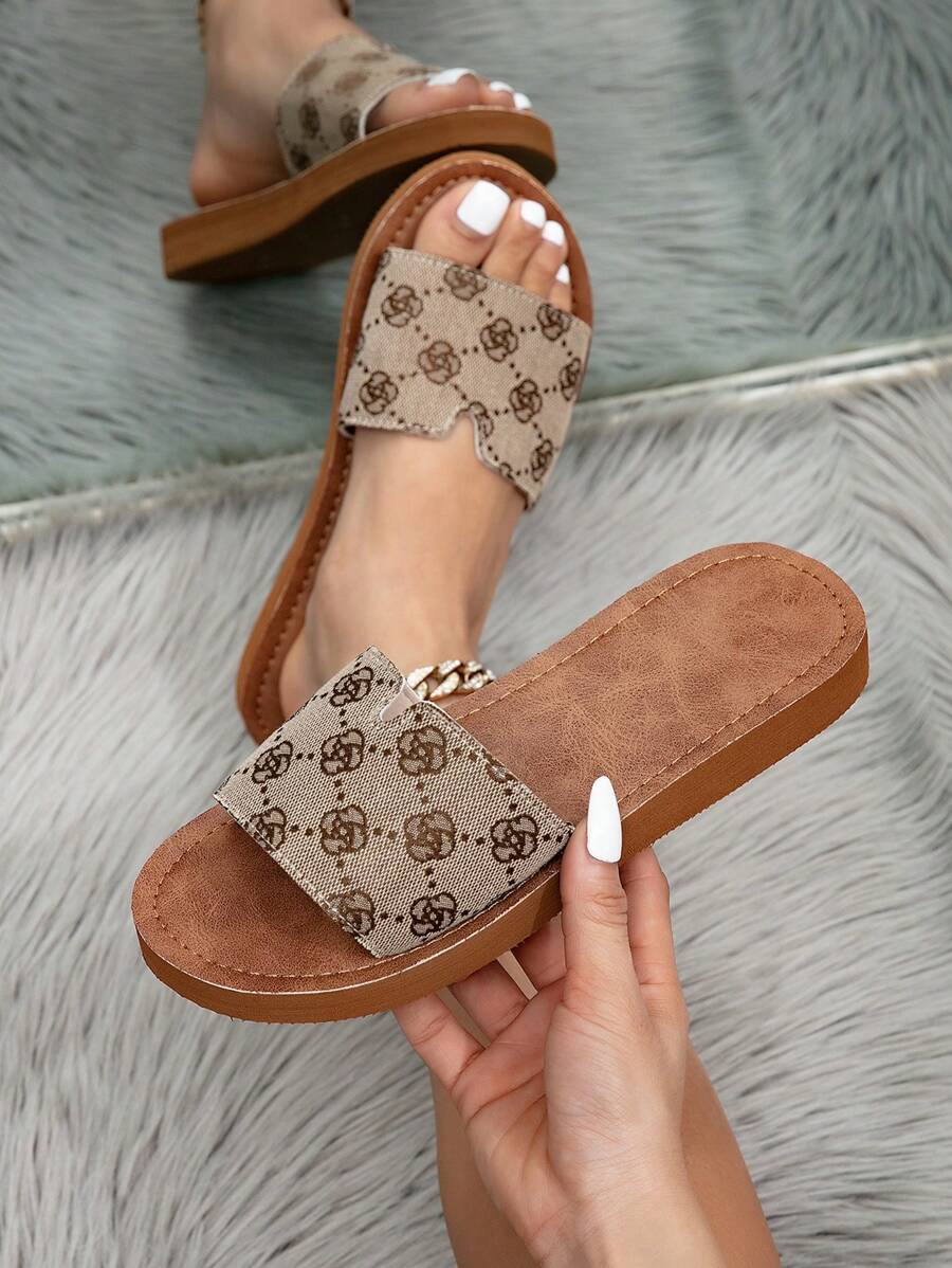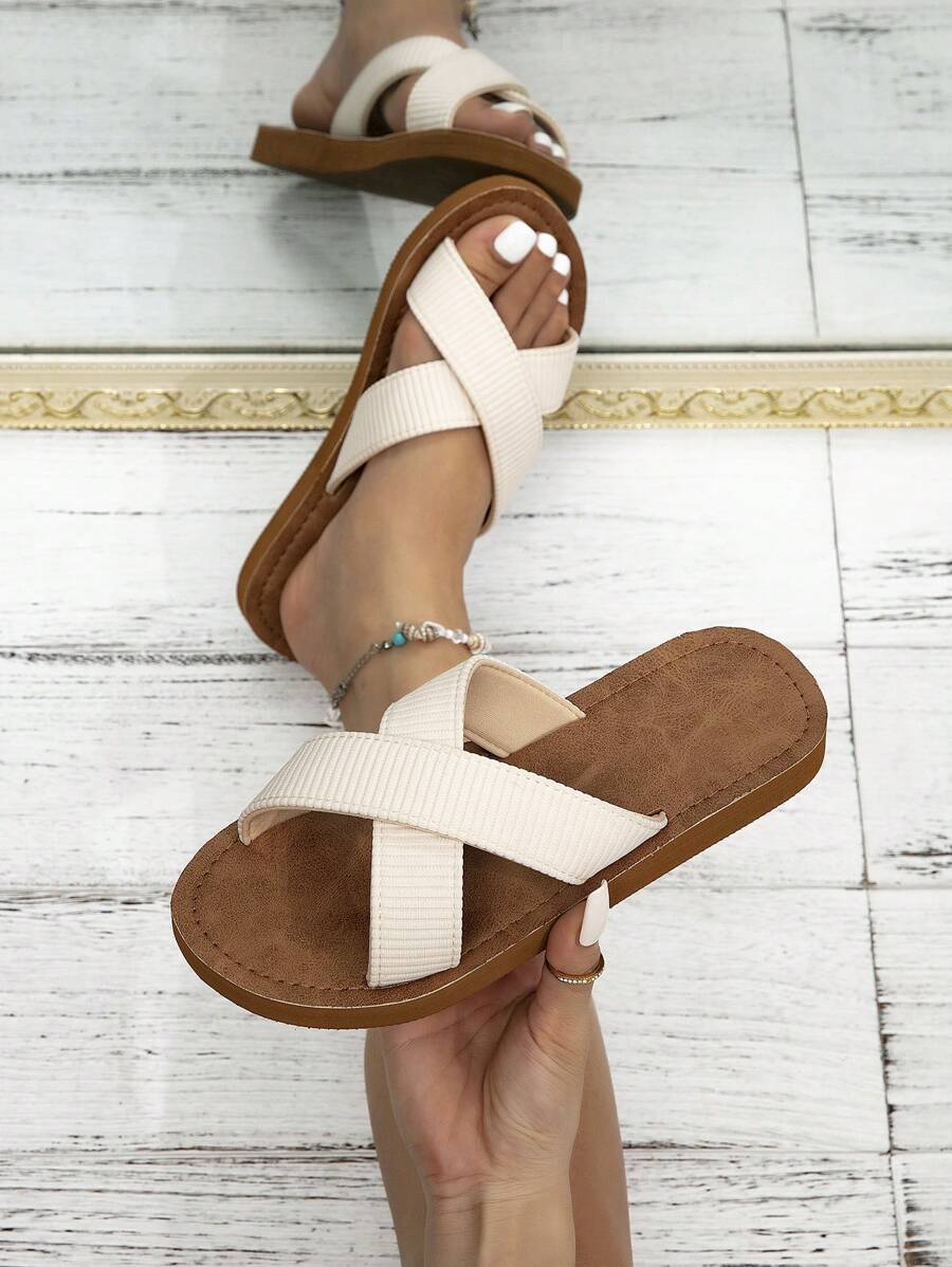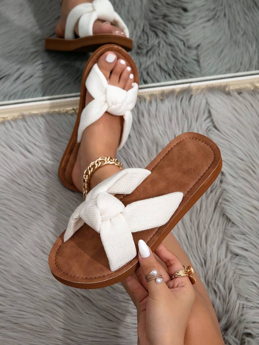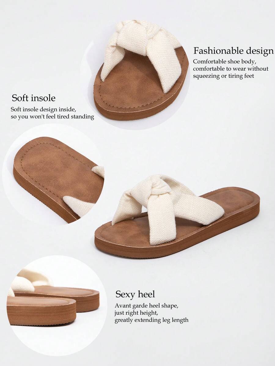 MIU Women's Four Seasons In Europe And The United States Simple Leisure Fashion Summer Outside Wear Open-Toe Sandals White Brown Ladies Flat Bottom Clip Toes Flip-Flops, Student Indoor Slippers,