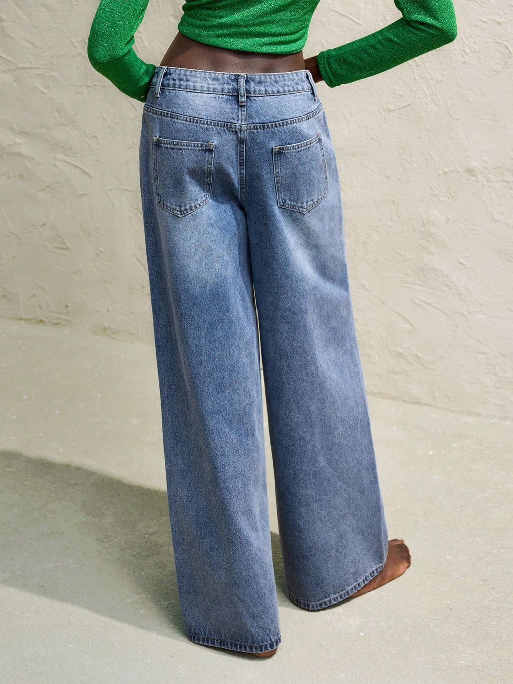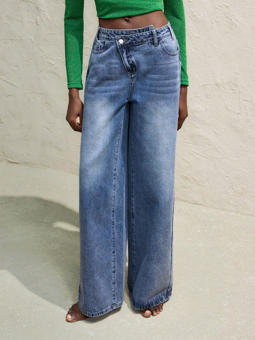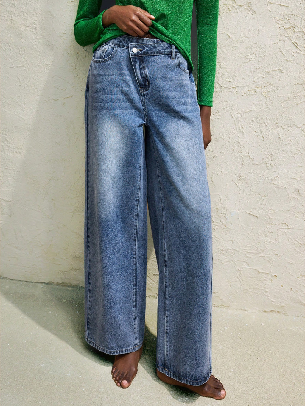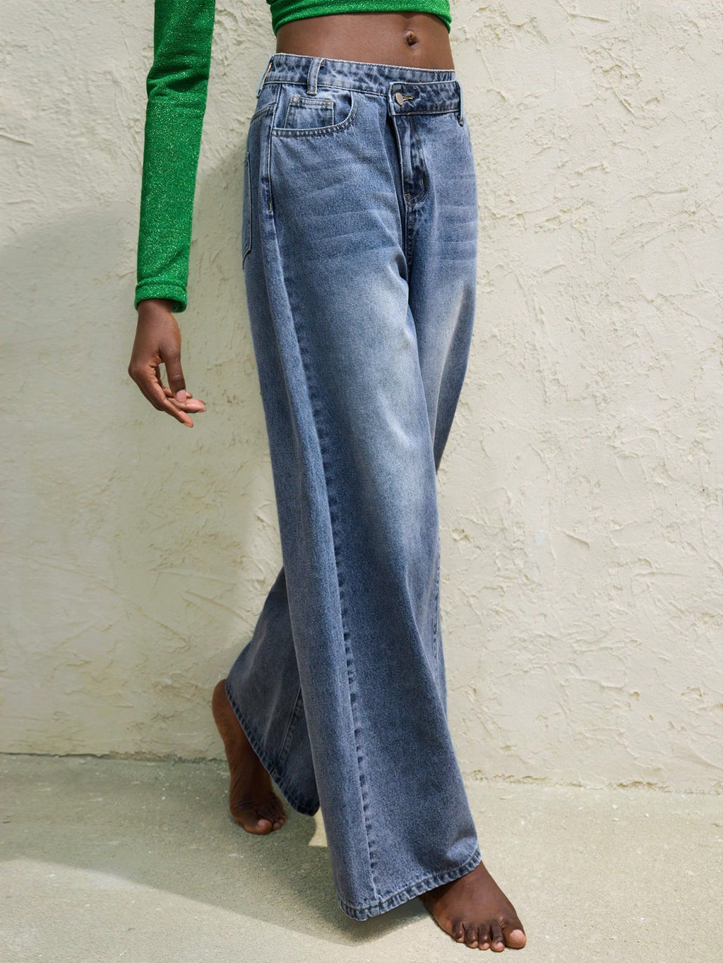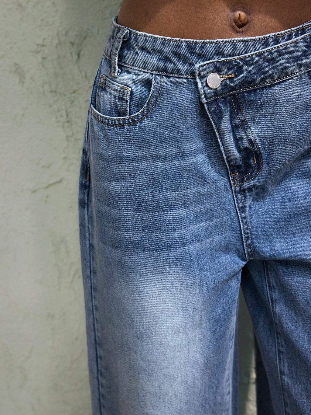 MIU Women's Front Button Pocket Simple Casual Denim Jeans, Daily Wear,Cowgirl Outfit