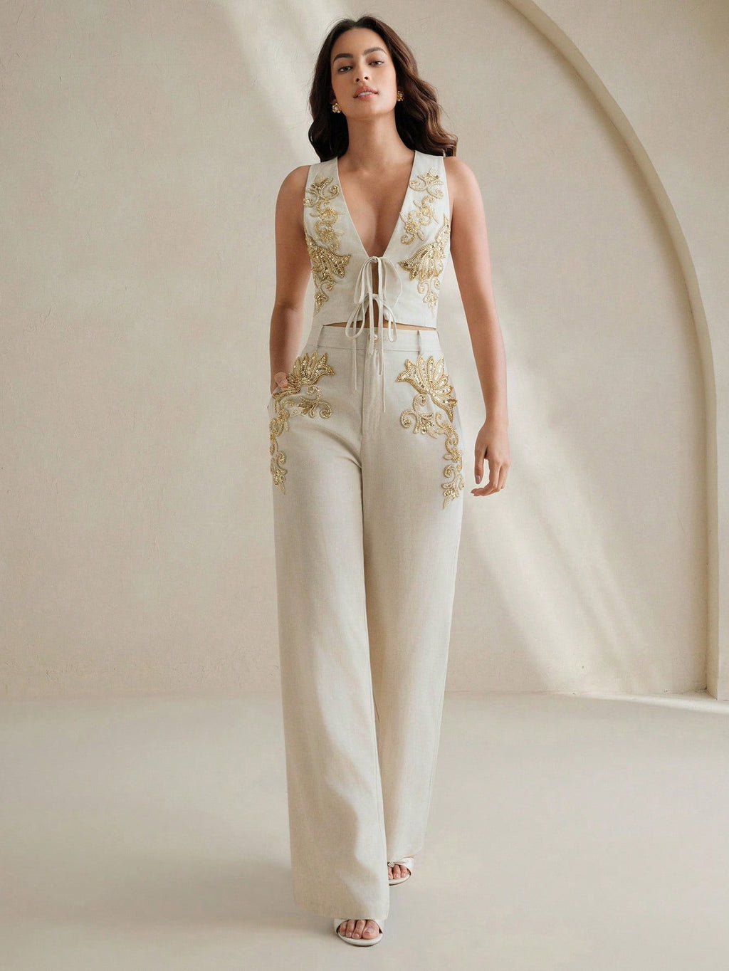 MIU Women's Handmade Beaded Tassel Linen Comfort Set