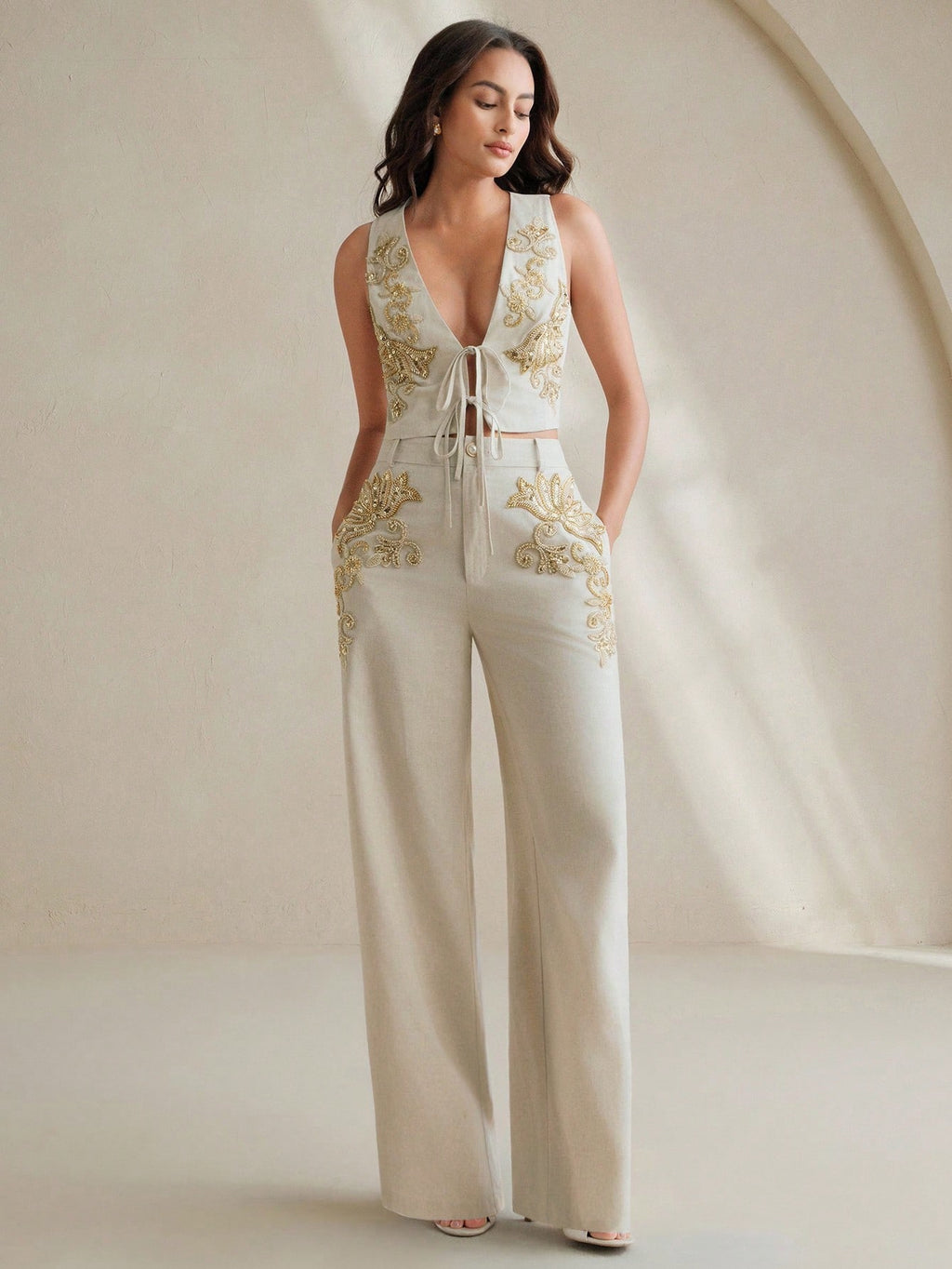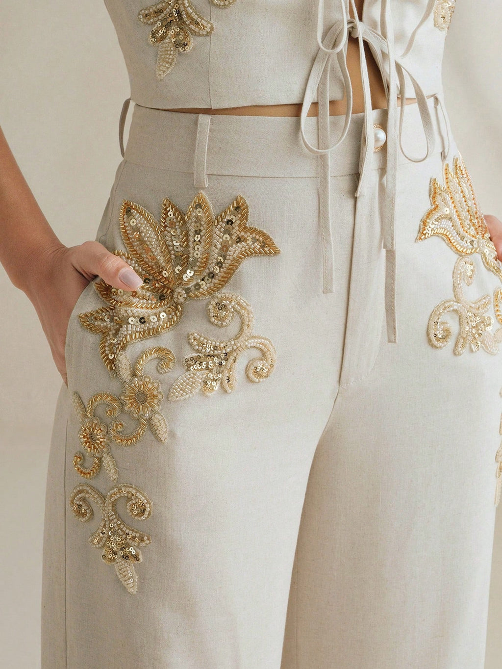 MIU Women's Handmade Beaded Tassel Linen Comfort Set