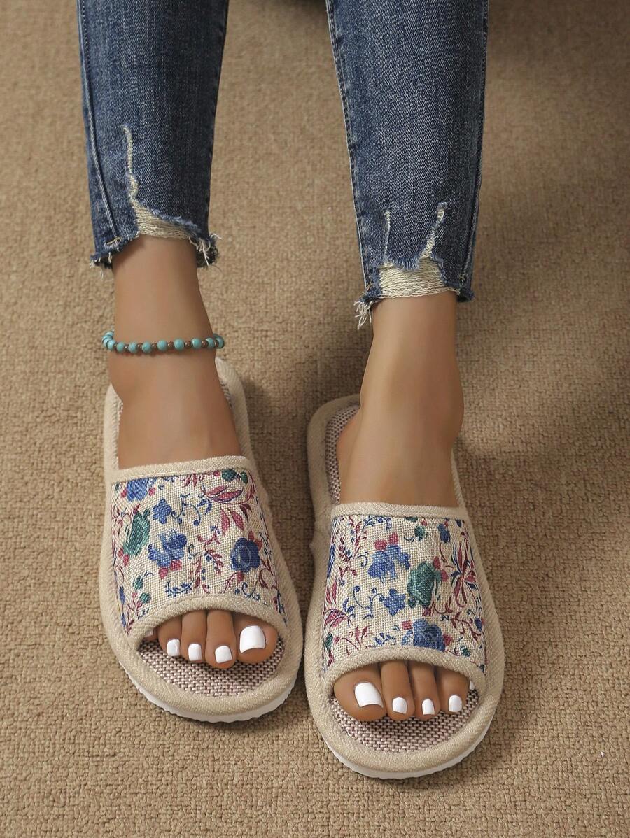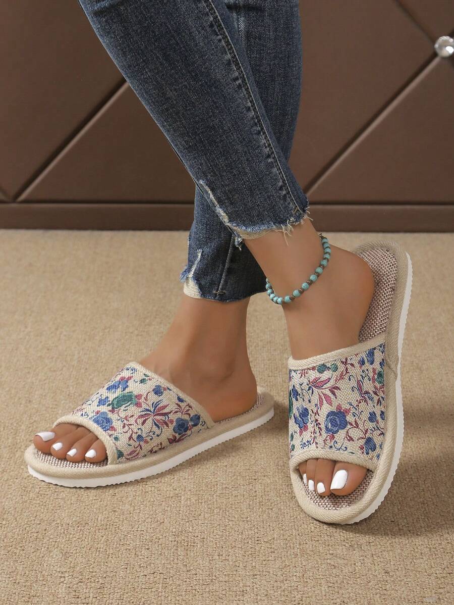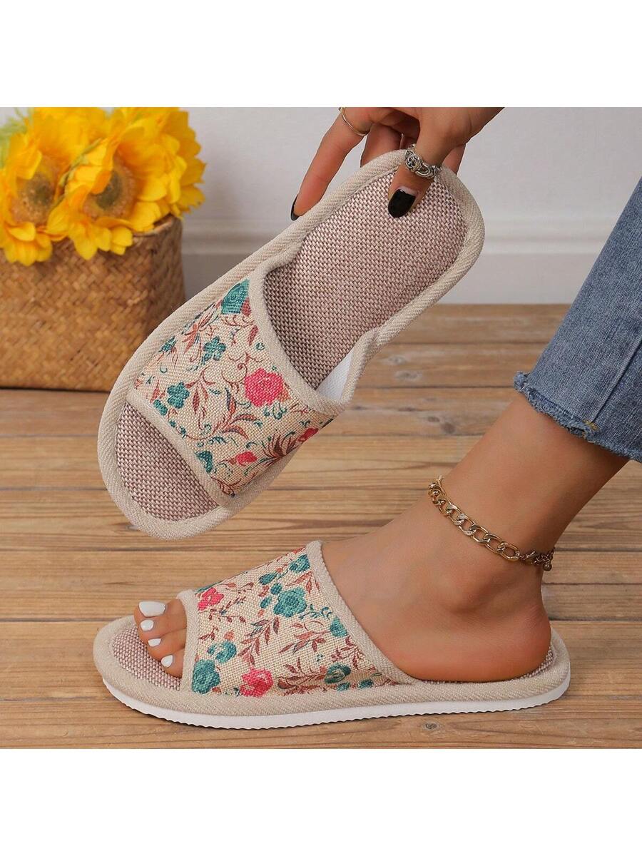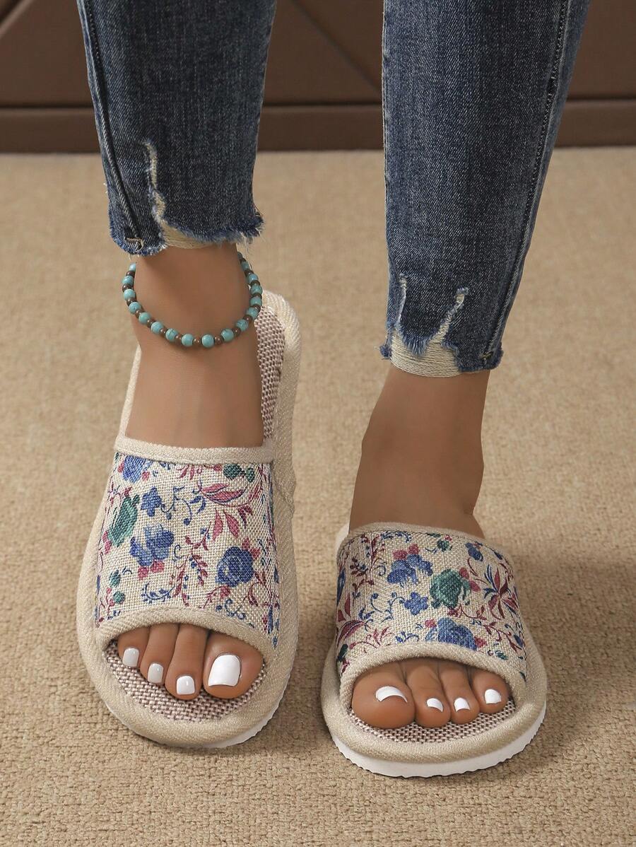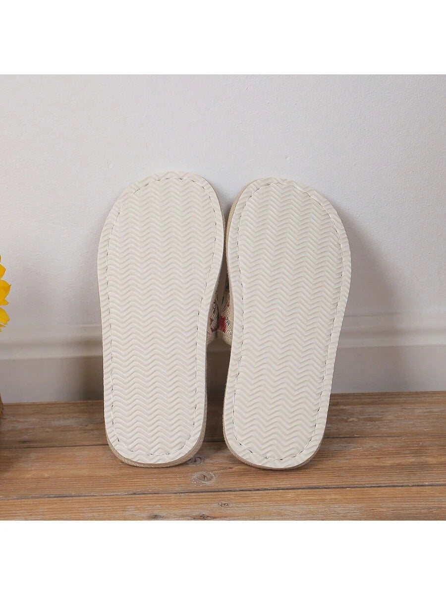 MIU Women's Indoor Slippers, Linen House Slippers With Non-Slip Thick Soles, Suitable For Summer Home Use