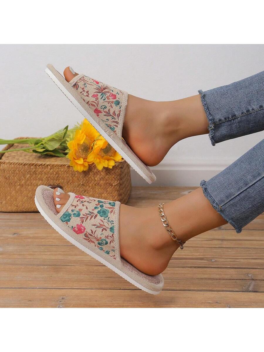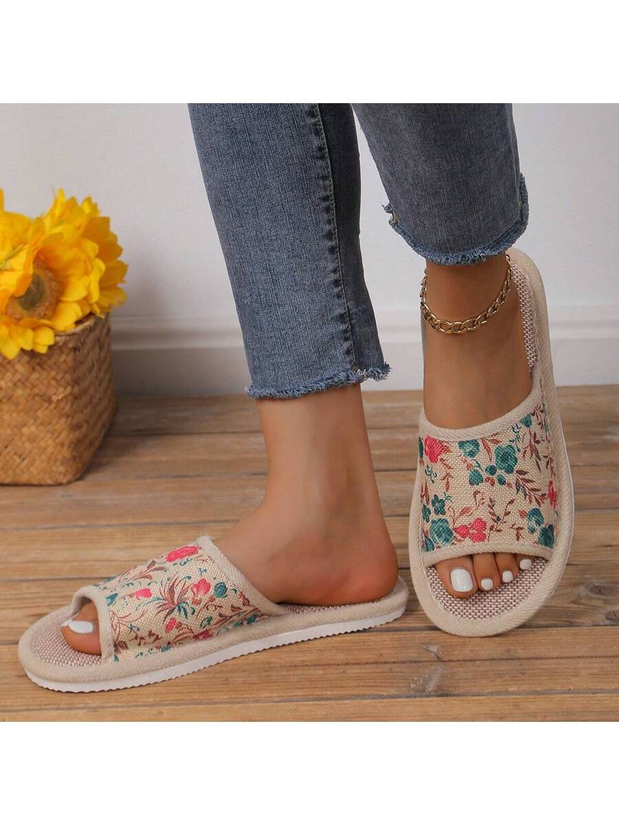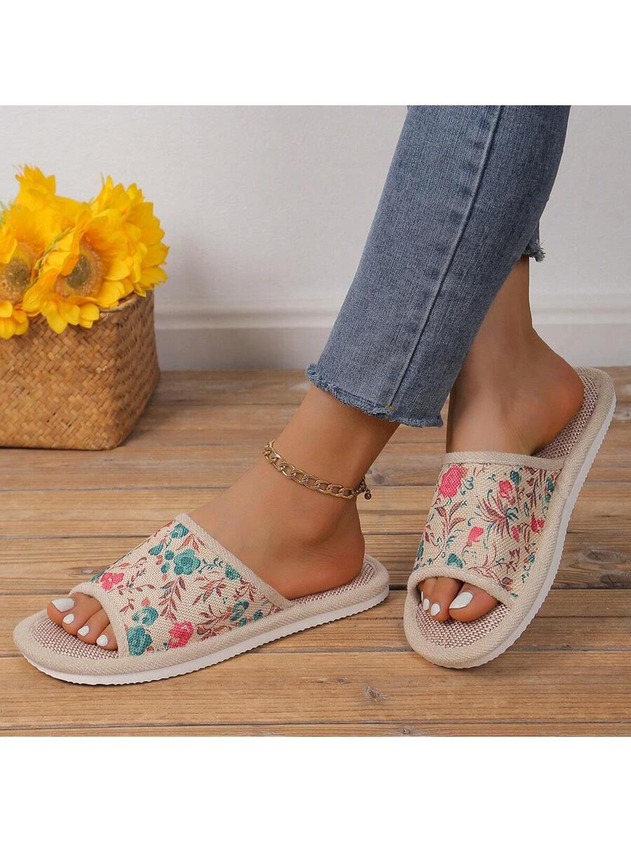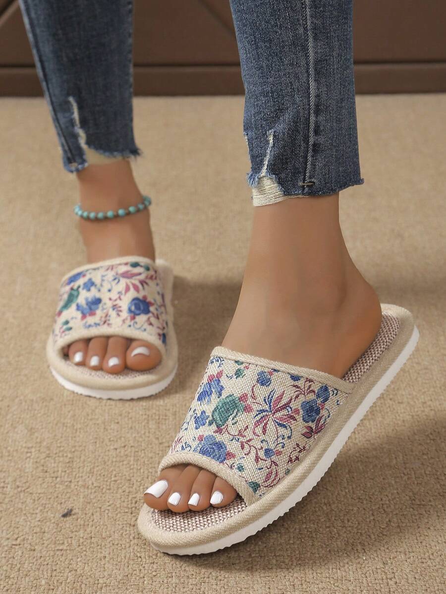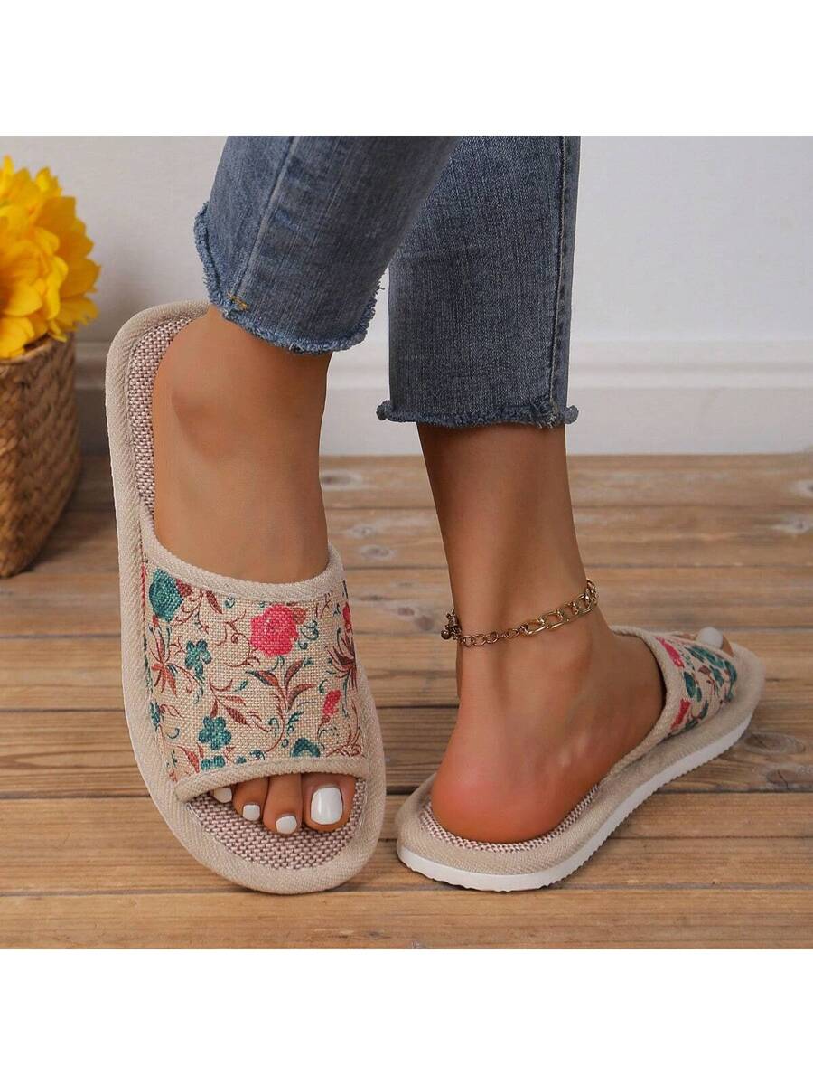 MIU Women's Indoor Slippers, Linen House Slippers With Non-Slip Thick Soles, Suitable For Summer Home Use